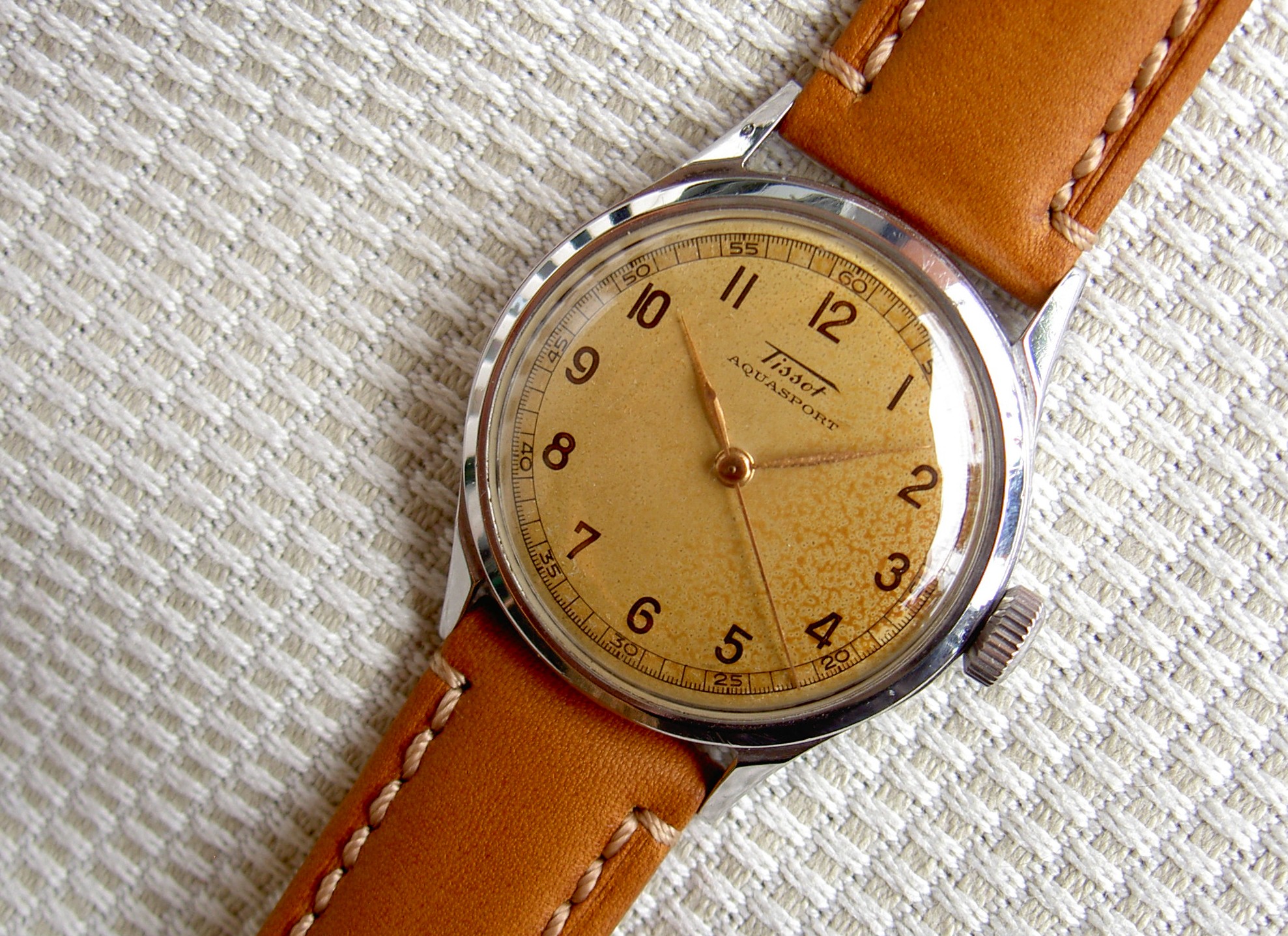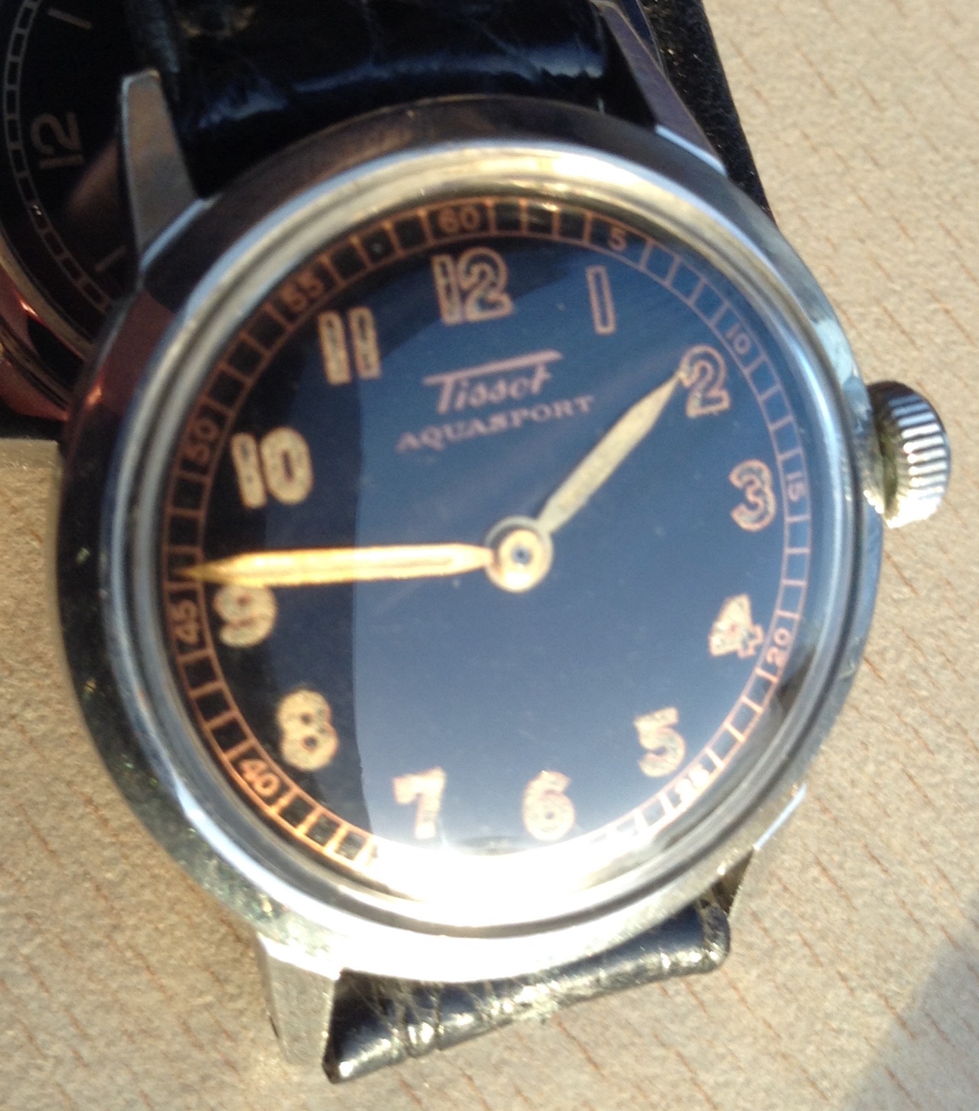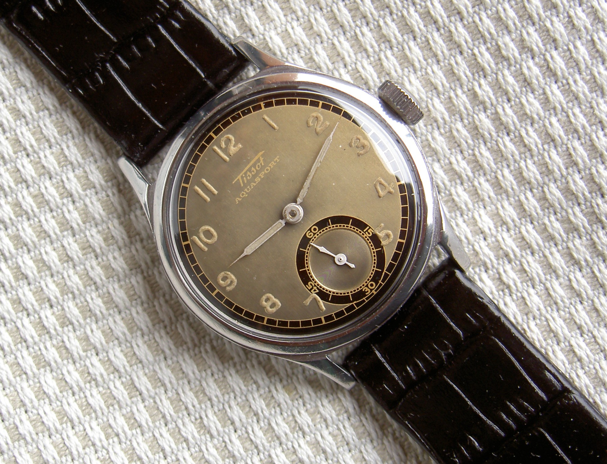 The Aquasport model was launched in the late 1930s and lasted until the mid-1940s. Early ones used the caliber 17.5 family; later ones were from the caliber 27 family. Most were manual-wind movements with stainless steel, screwback cases.