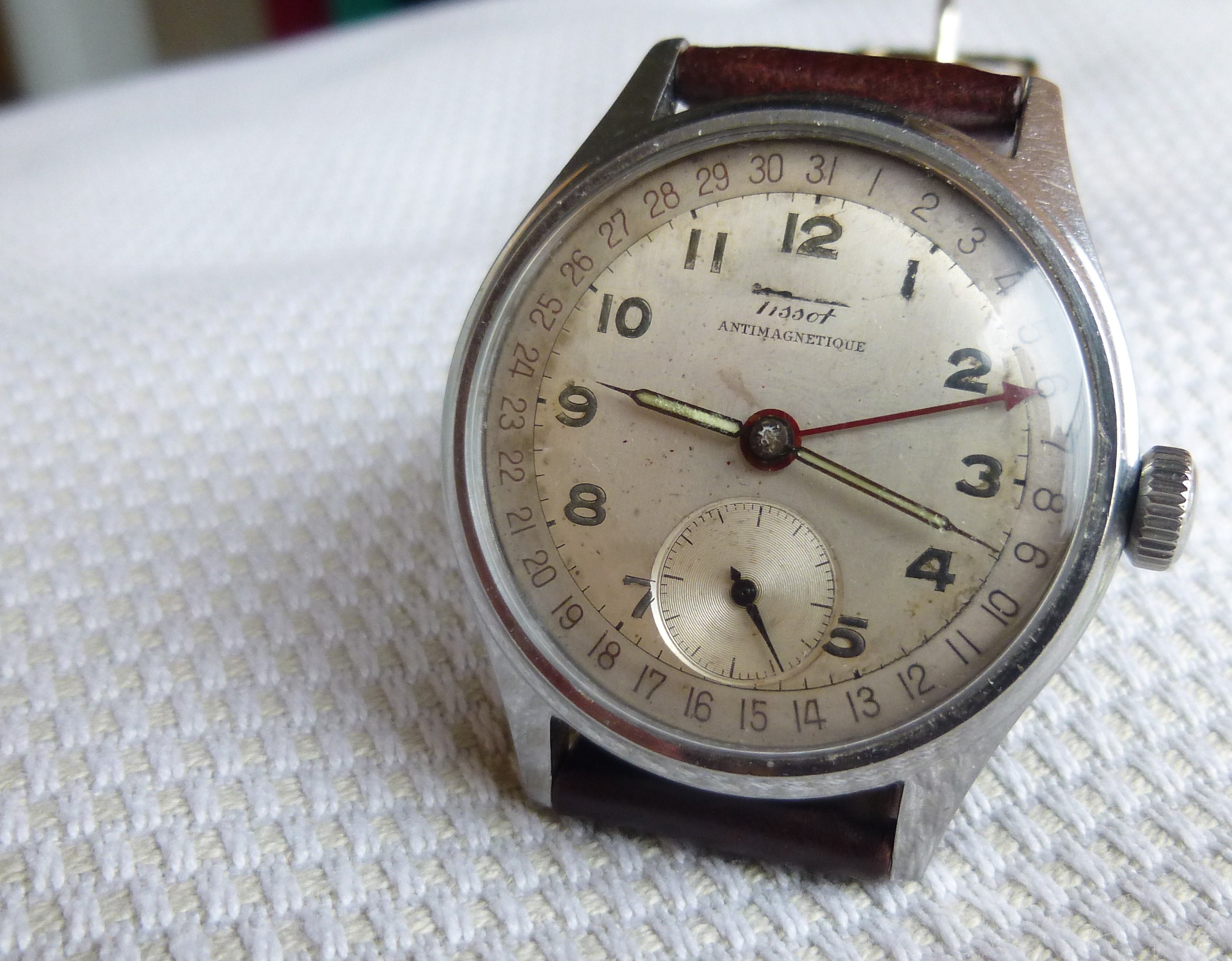 That's a nice example. Looks like 30mm? I'll guess it's a variant on the 17.5 caliber. Is it missing its center second hand?