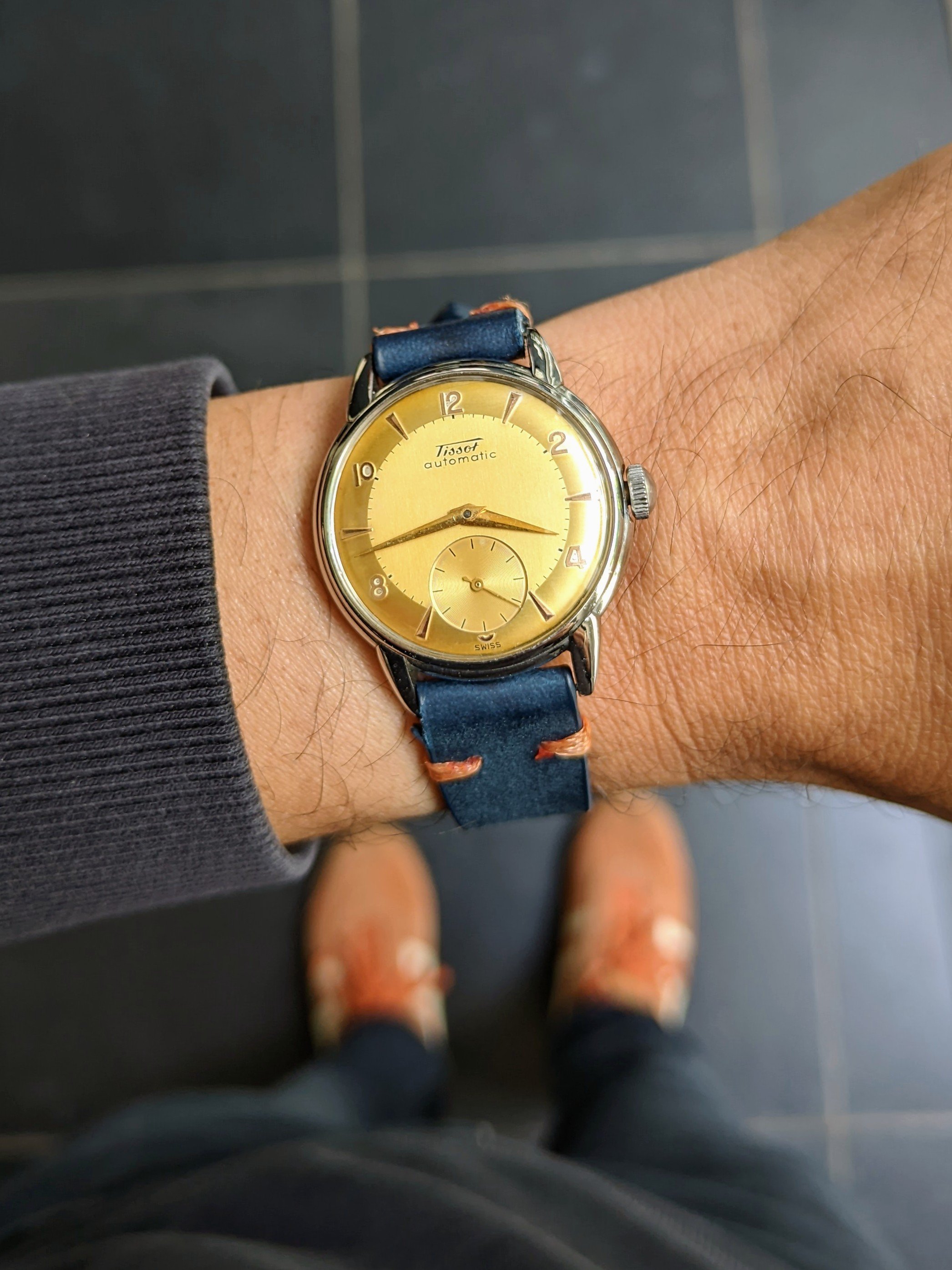 I was puzzled a little bit, because the dial did not have the "Automatic" printed on, and I consequently thought it would contain a cal. 782 (manual winding). But upon gentle shaking one clearly hears the automatic winder (and it starts running), thus it contains a cal. 784. I did not open it yet though. A "redial" appears very unlikely to me.