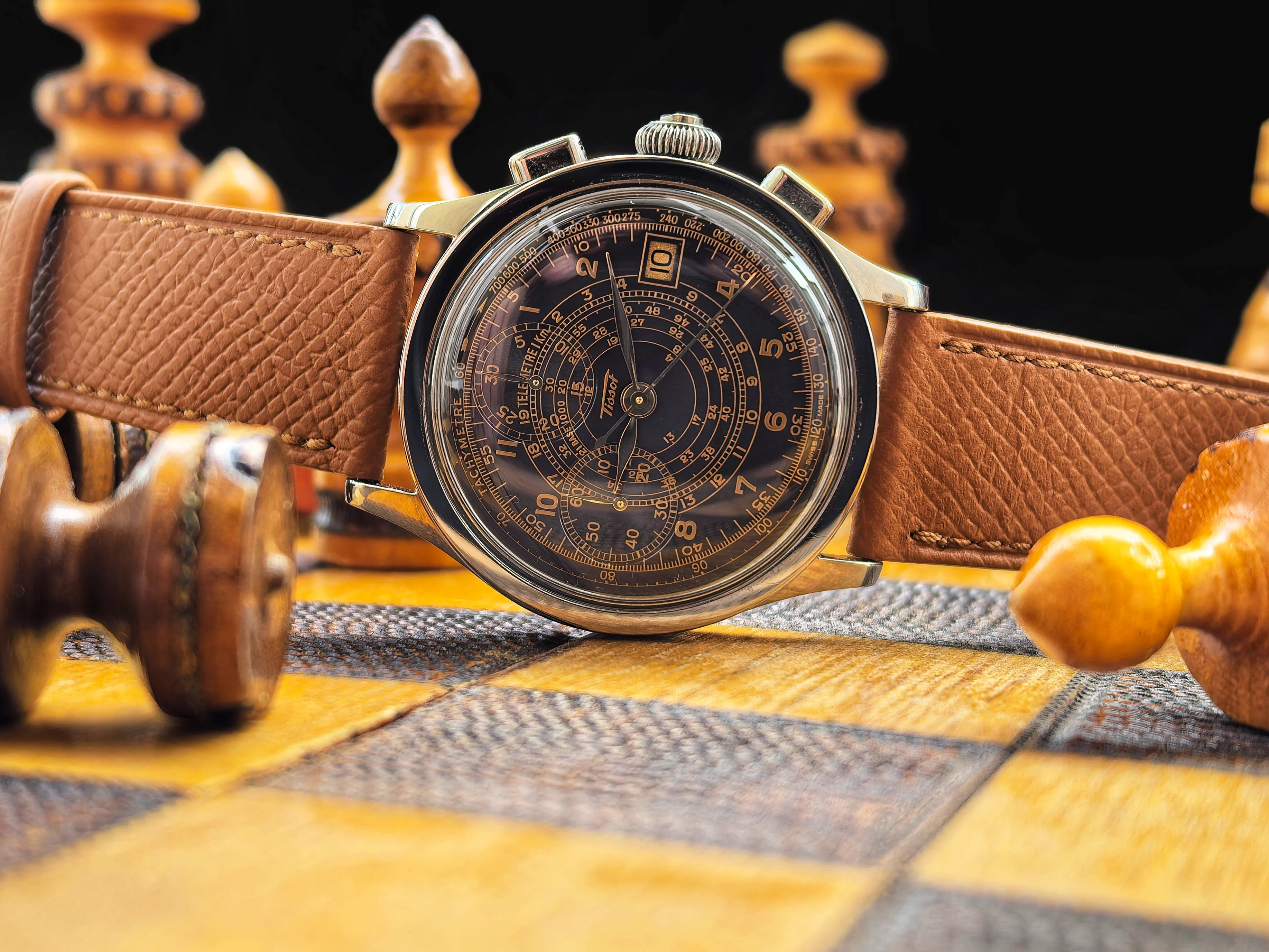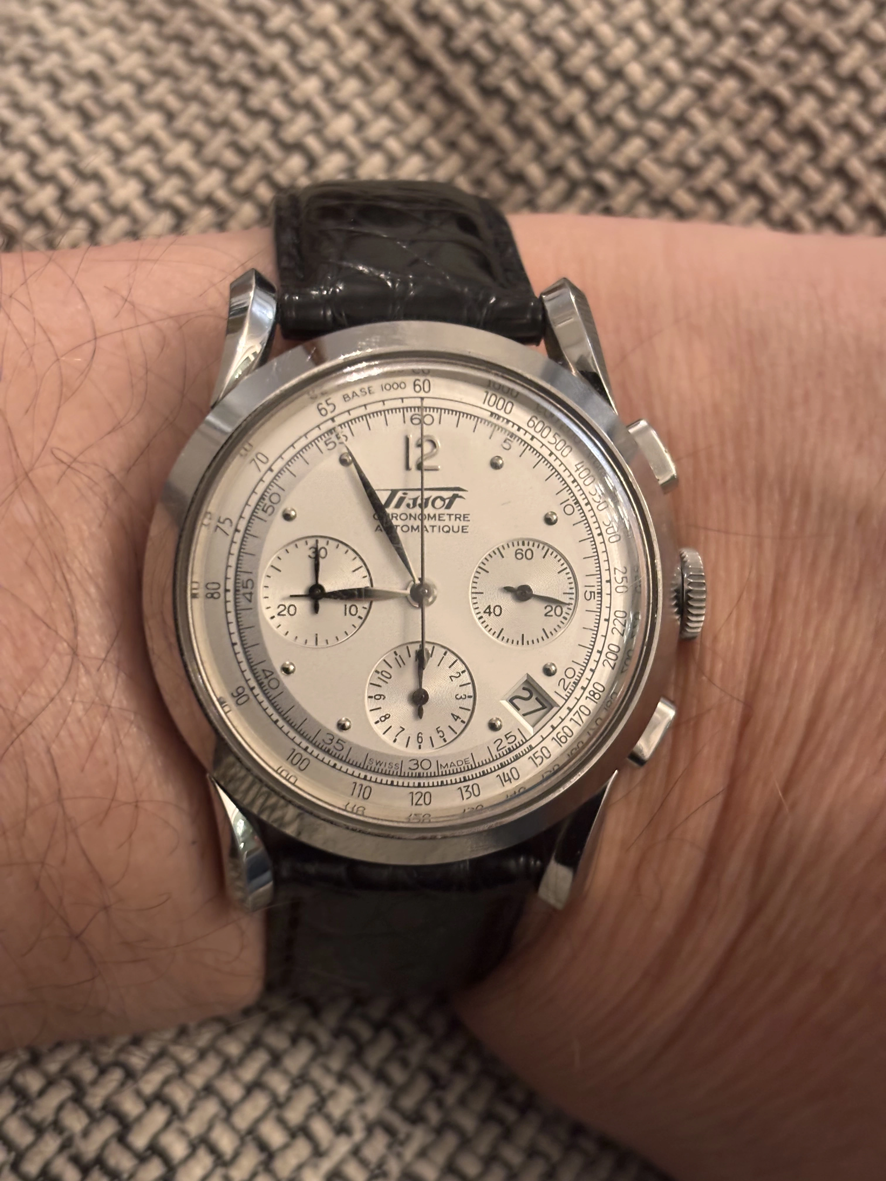 This is my youngest Tissot - 150th anniversary ”LE” chronograph from 2003 (8888 in steel made).This came NOS from Italy about five years ago with a fresh warranty card. So it received a fresh movement on warranty ca 17 years after it left the factory!