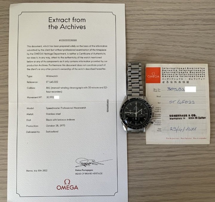 To present the gold speedys on Nov 25, 1969, Omega obviously had to begin designing much earlier. The question is whether they began the design using the 145.022-68 or the 145.022-69 pre-moon. It could be either, but I think the 145.022-68 is likely as it has the AML, which made it into the BA 145.022-69, as well as the DON and 1116 bracelet. Still, there's valid reasons for why they could have based it off the dash 69.
