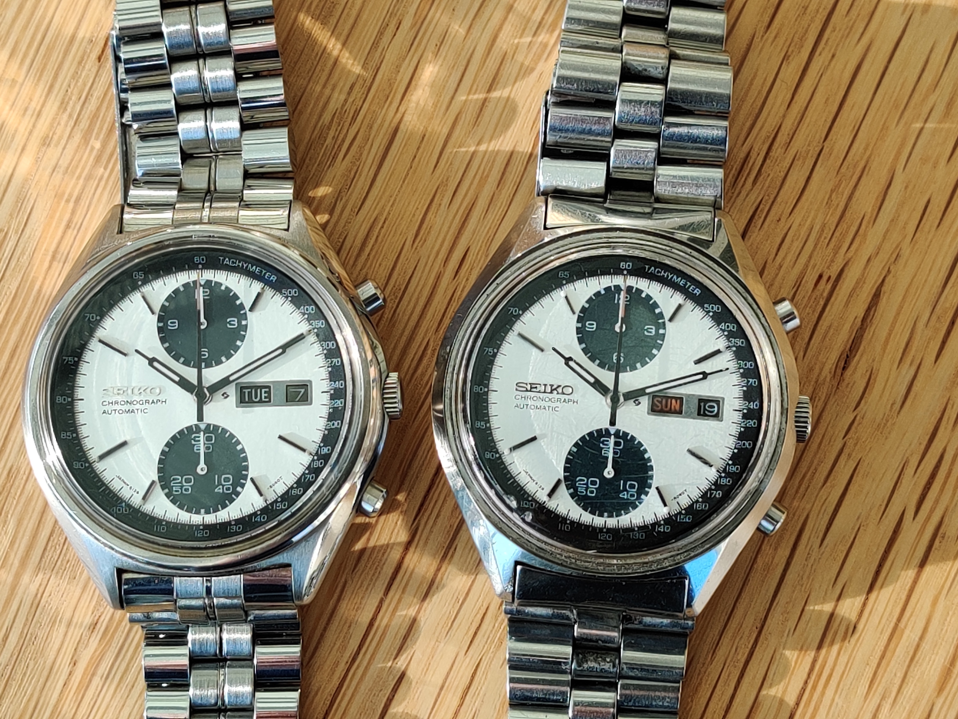 The one on the left has a non-original bracelet (it is a Stelux Seiko but had end links modified to fit) and had been polished in the past.