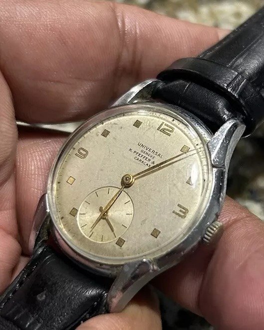 Posts 6,274 Likes 9,833 Mark020 ·Feb 8, 2024·not the sharpest pencil in the ΩF drawer Cairelli https://www.reddit.com/r/Watchexcha...1930s_universal_geneve_enamel_dial_stopwatch/