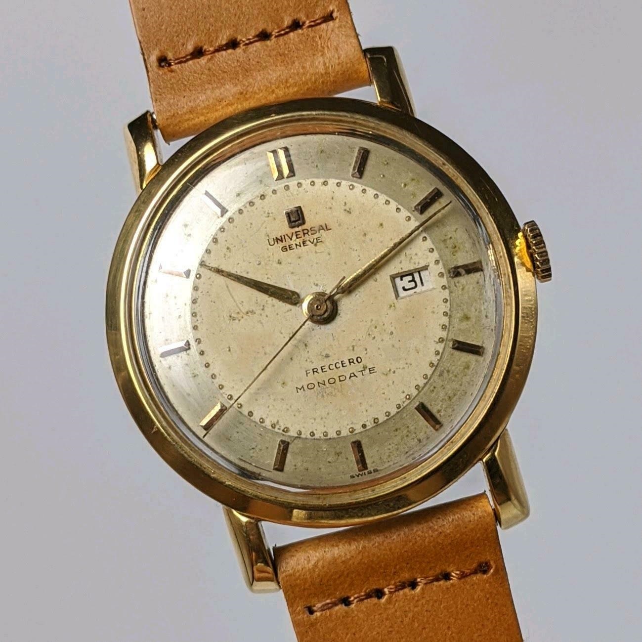 Posts 1,198 Likes 3,037 Mazoue ·Oct 13, 2021 Mark020 Nice Freccero sold at ebay: https://www.ebay.co.uk/itm/Universal-Geneve-Polerouter-Freccero-Stamp-Dial-Uruguay-Equivalent-Of-Tiffany-/114872311115?hash=item1abeec5d4b:g:x~wAAOSwWBhgv3Vq&nma=true&si=PV4BAFOMMICiey0yTruBX9DO6dQ%3D&orig_cvip=true&nordt=true&rt=nc&_trksid=p2047675.l2557 This one passed through my hands. Unfortunately it was in pretty poor shape. This website may earn commission from Ebay sales.