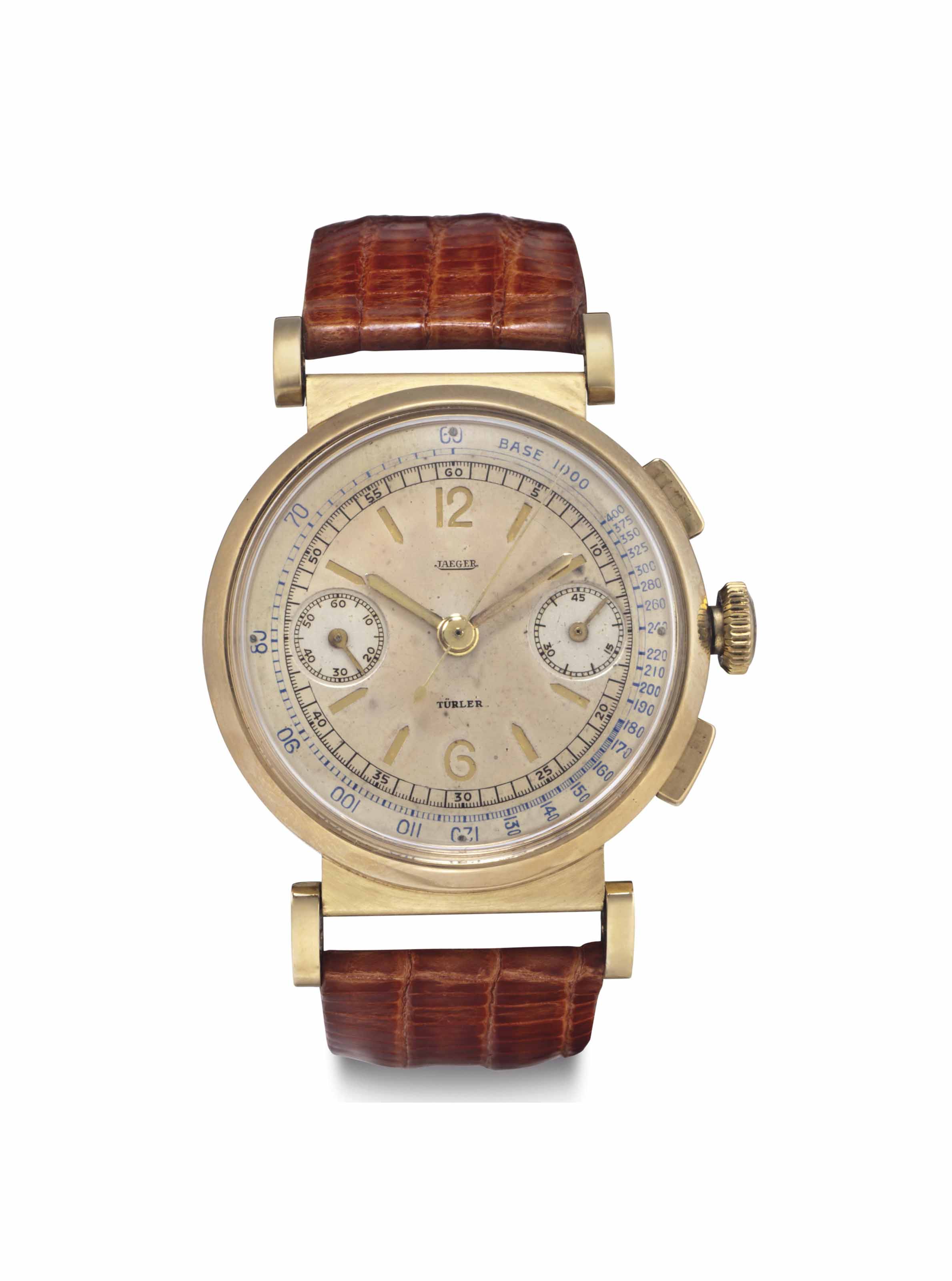 Posts 6,273 Likes 9,833 Mark020 ·Sep 29, 2021·not the sharpest pencil in the ΩF drawer Another very nice one from Christies: https://www.christies.com/lot/lot-5864946 (also here: https://www.liveauctioneers.com/item/34981017_jaeger-retailed-by-turler-switzerland-c1948)