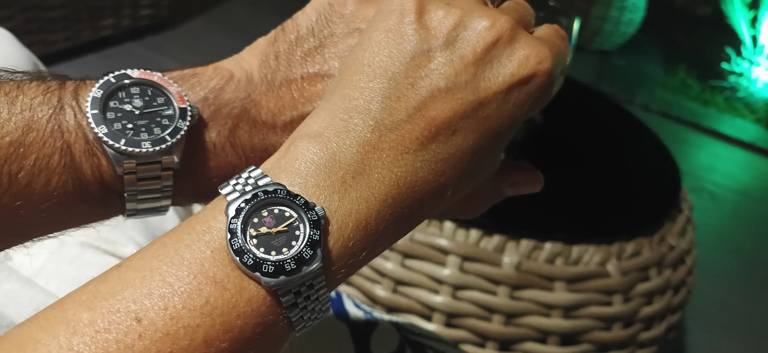 This is another oddity : I think these particular F1s were made in two batches : one with all pink dial/hands/bezel :