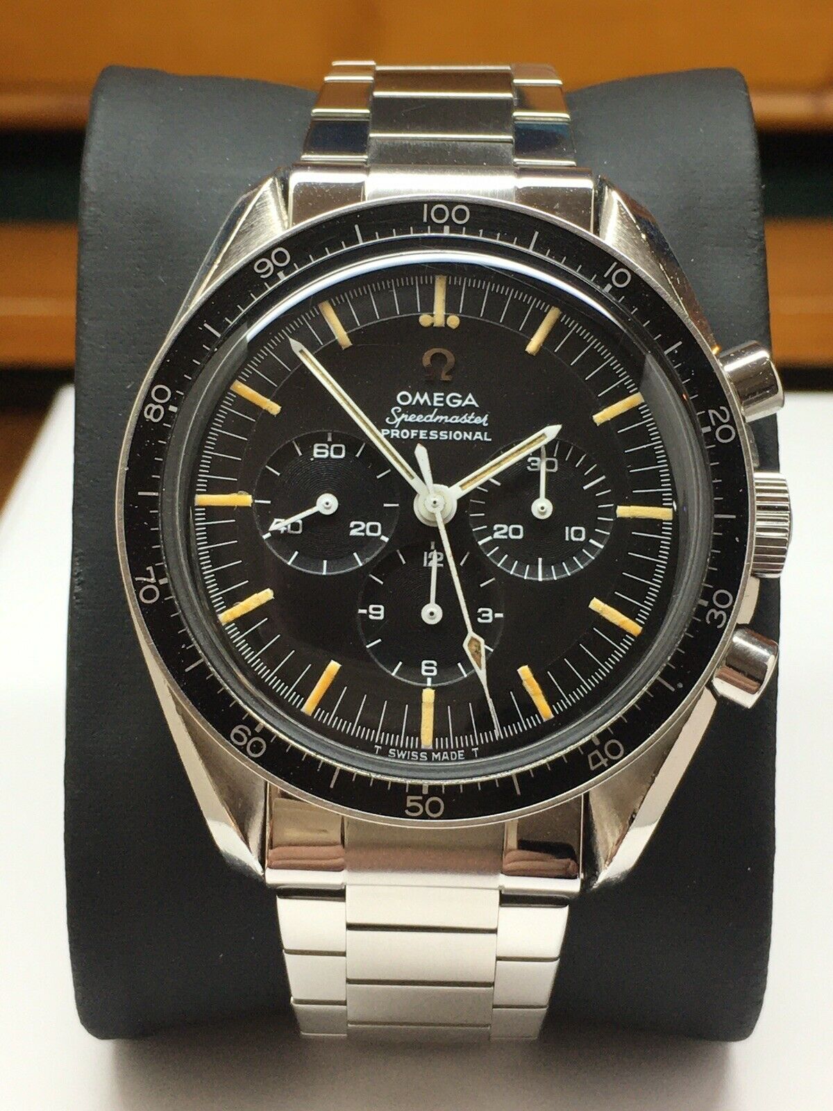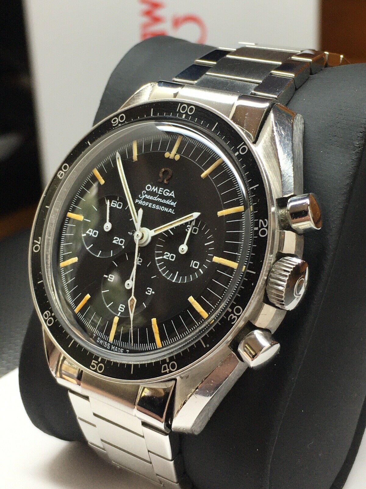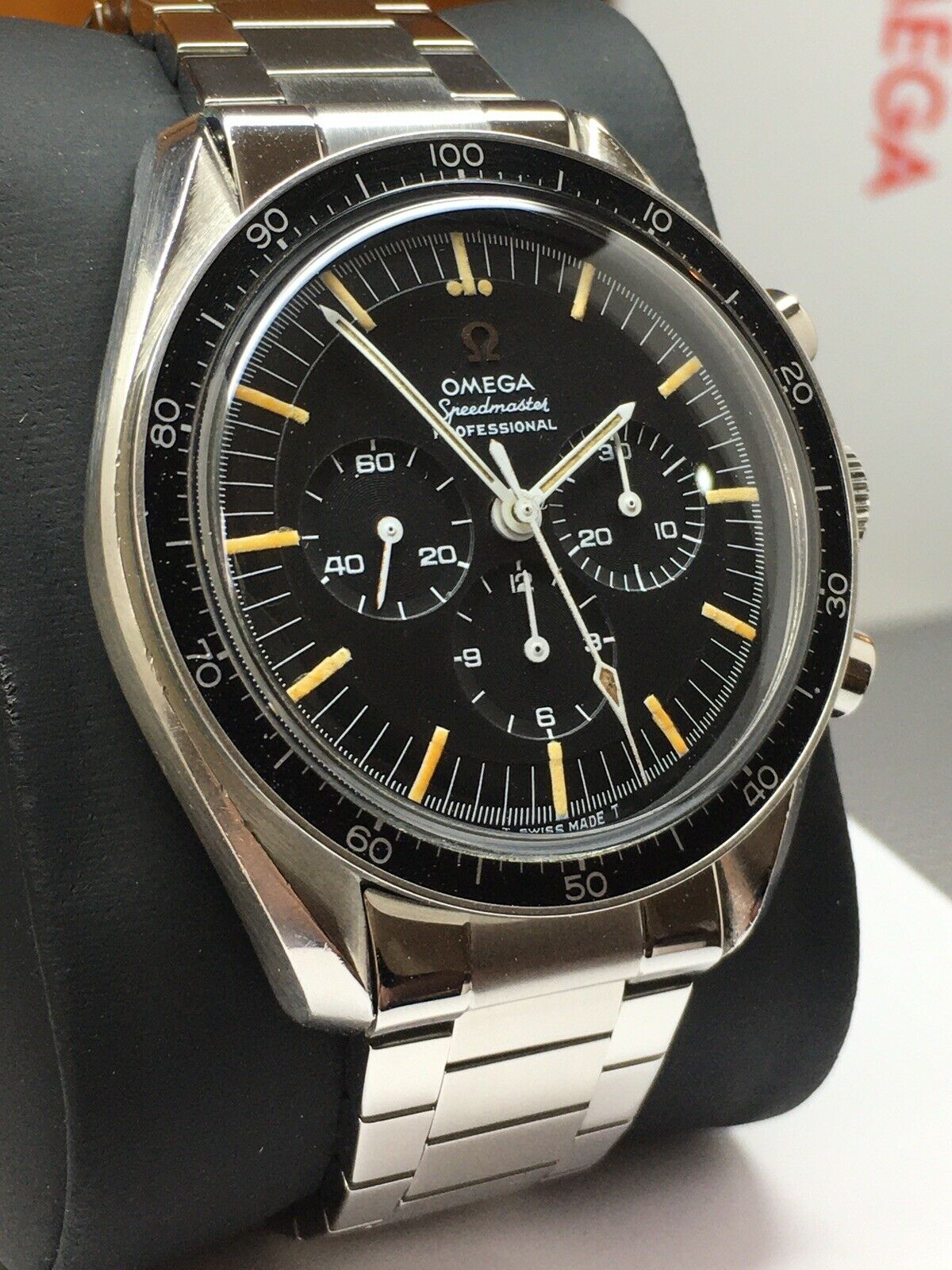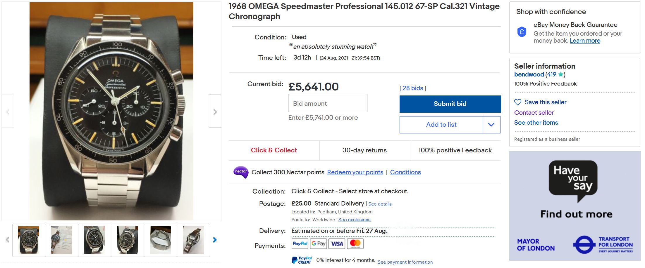 ··Prolific Speedmaster HoarderThis watch was offered on ebay, and it was bid from a start of £910 up to £5600, before being withdrawn about two days before the close: