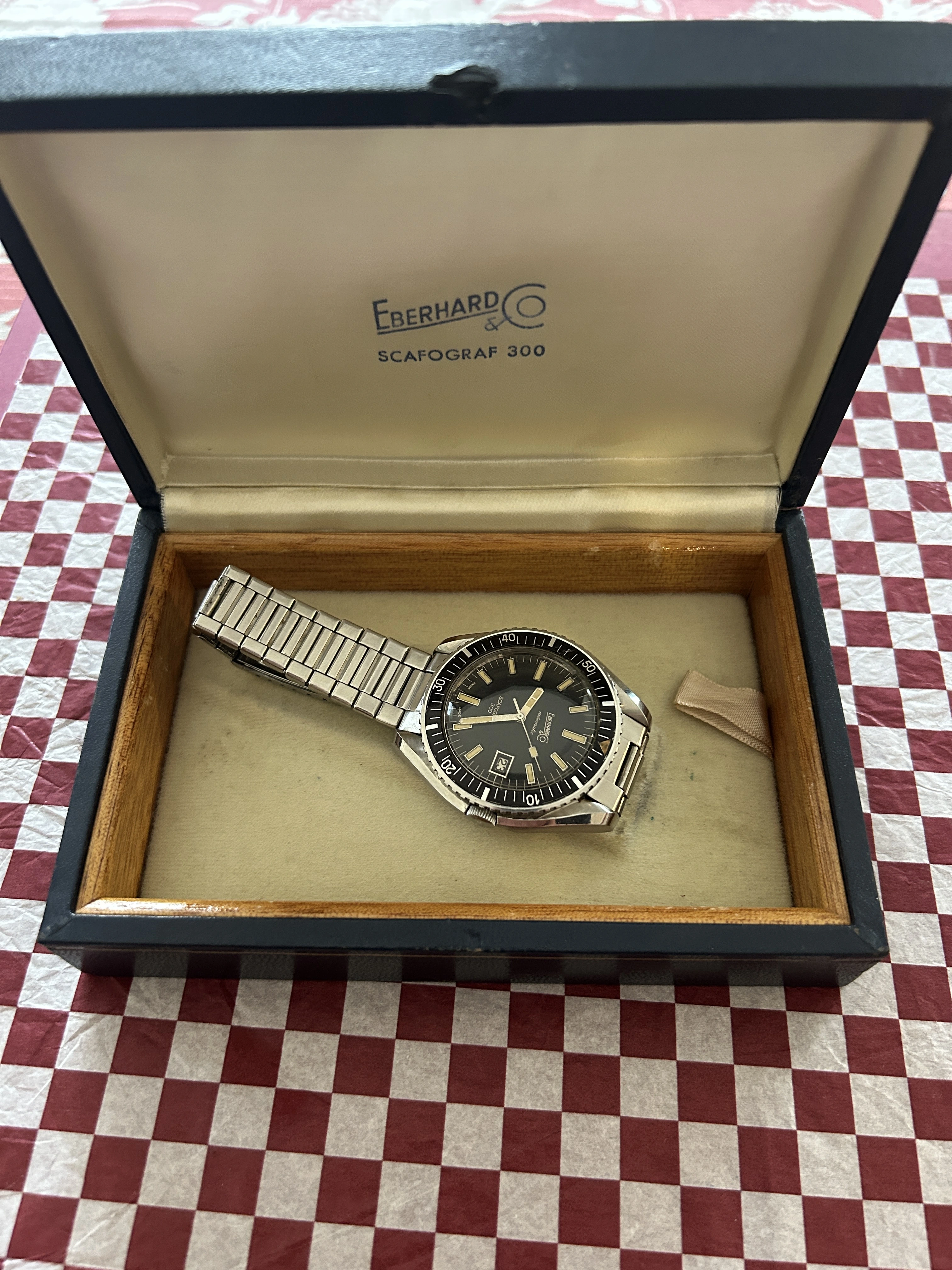··IG: #blubarb19Up for sale is my all original c.1964 Eberhard Company Scafograf 300 plus box (no papers) with original bracelet and crown