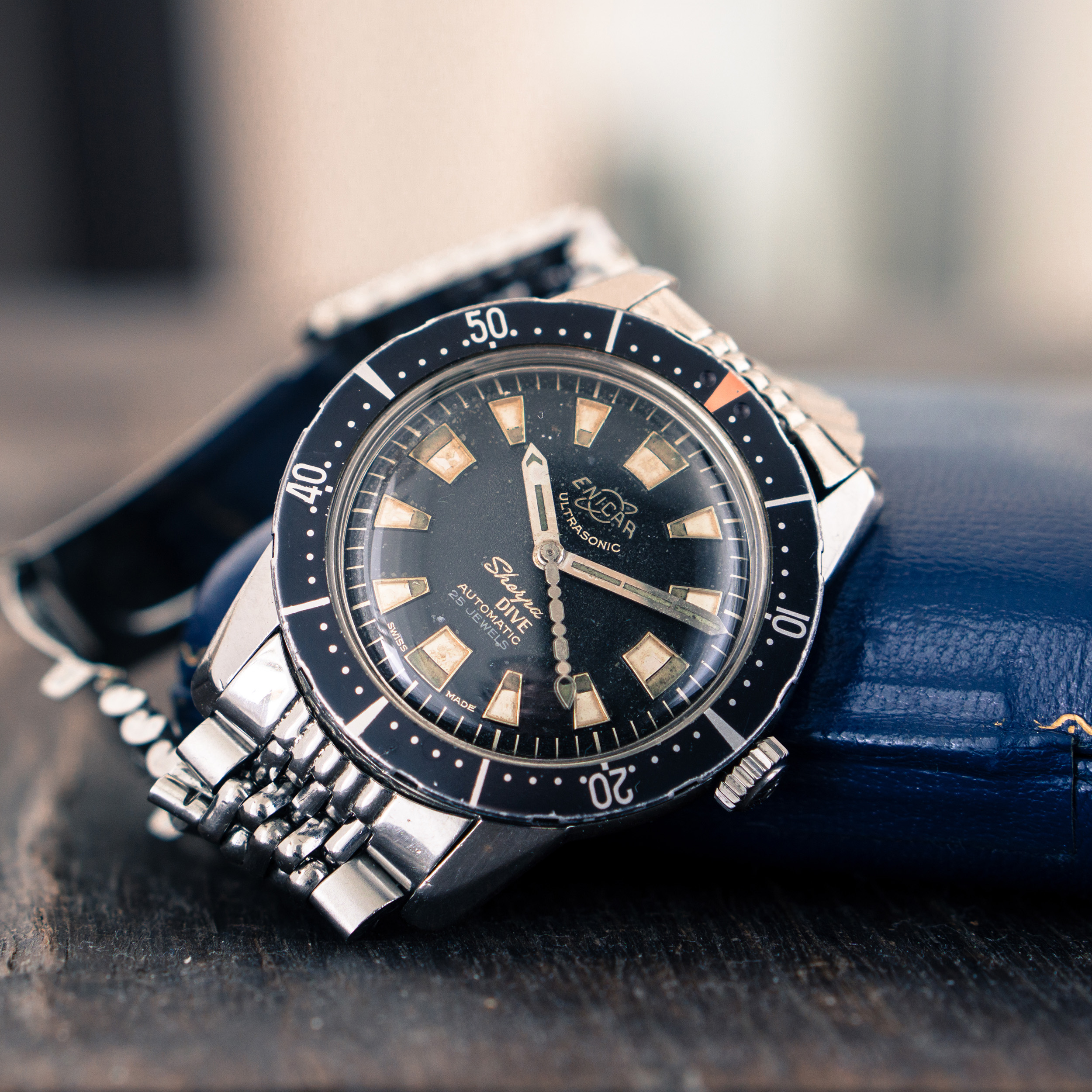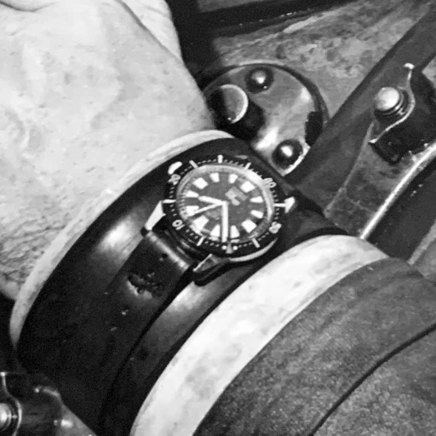 This is Per Edvin Fälting, the head diver of this mission. Despite wearing a Submariner in private, here we see him with a Enicar Sherpa Dive Ref. 100/224 BaANXS.