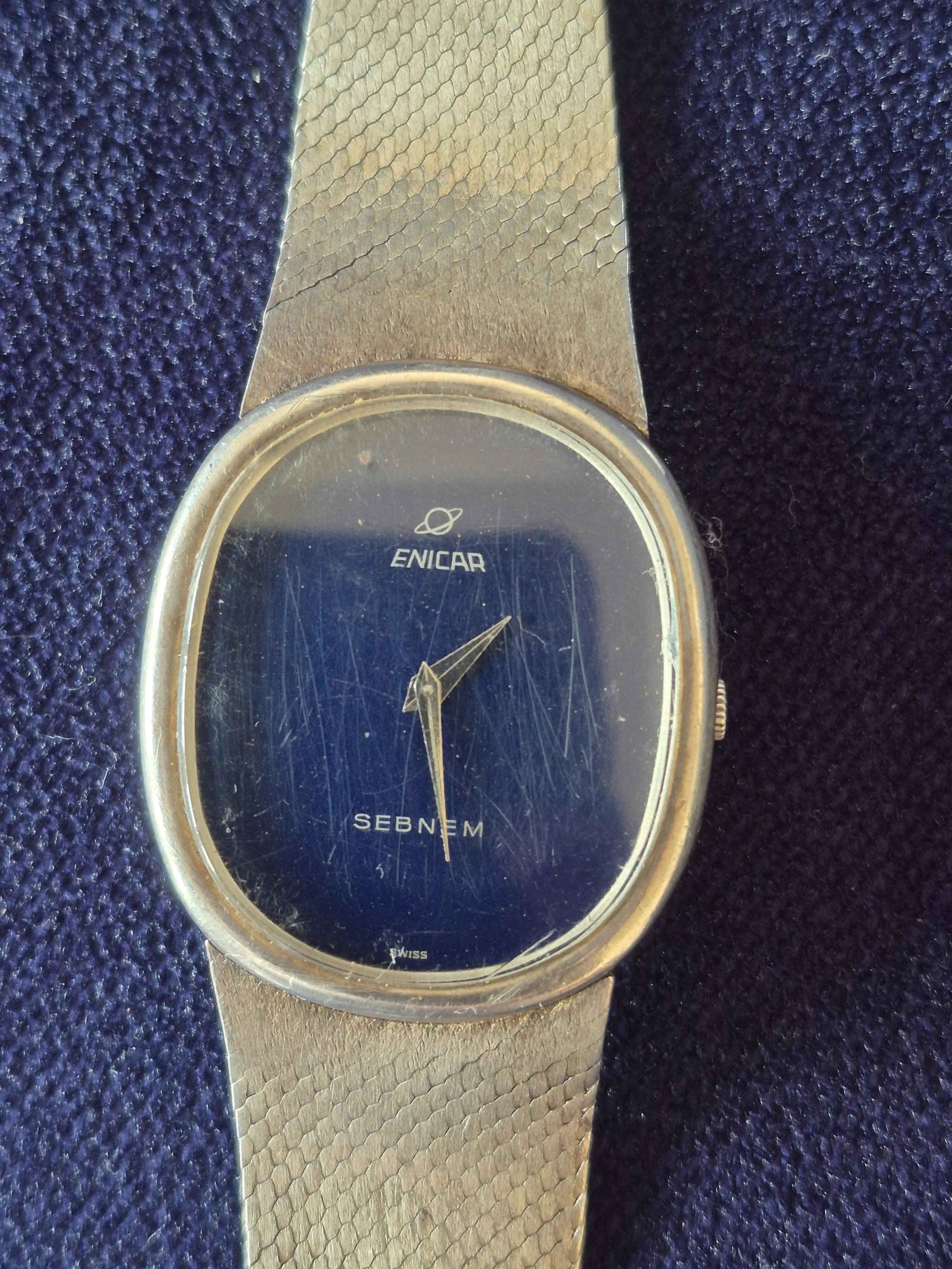 ·I visited my watch repairer today. Over the years he's become more of a friend and today he surprised me. " I've got something that might interest you" he told me. He produced this Enicar dress watch and told me it was mine if I wanted it. It was an unclaimed collection from 1994 and the liklihood of someone coming to collect now was, we both agreed very slim!!
