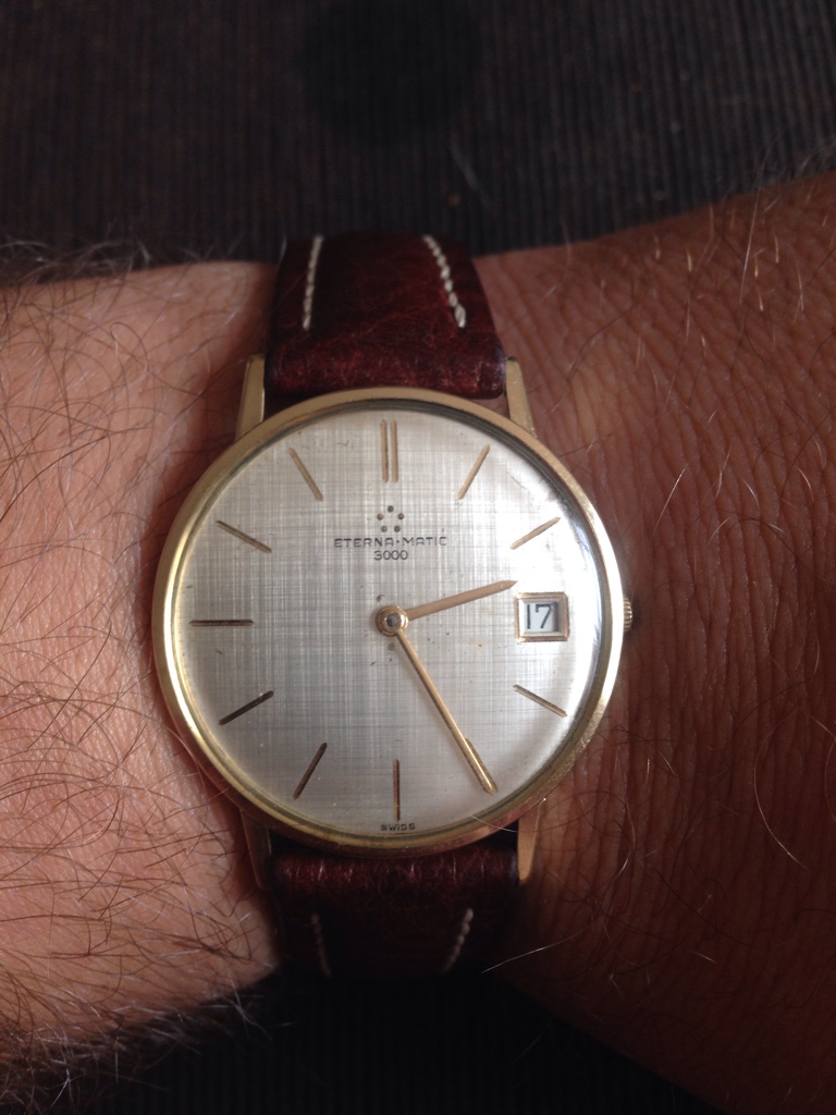 This has to be the best thread to ask for some assistance. I bought this one a while ago and the circumtances around the face to face pick up of it makes me very certain it is legit and honest. Seller was an old guy who had no interest in watches and just put it up for auction together with all his miniture train stuff. He told me that he had got as a gift from a girlfriend many, many years ago and then used it every day, for a long time, in his work as a military navy officer and later in his own diving/boat service business. He had it serviced a couple of times and the relume of the hands came about at one of those times. It has also been polished at some time.