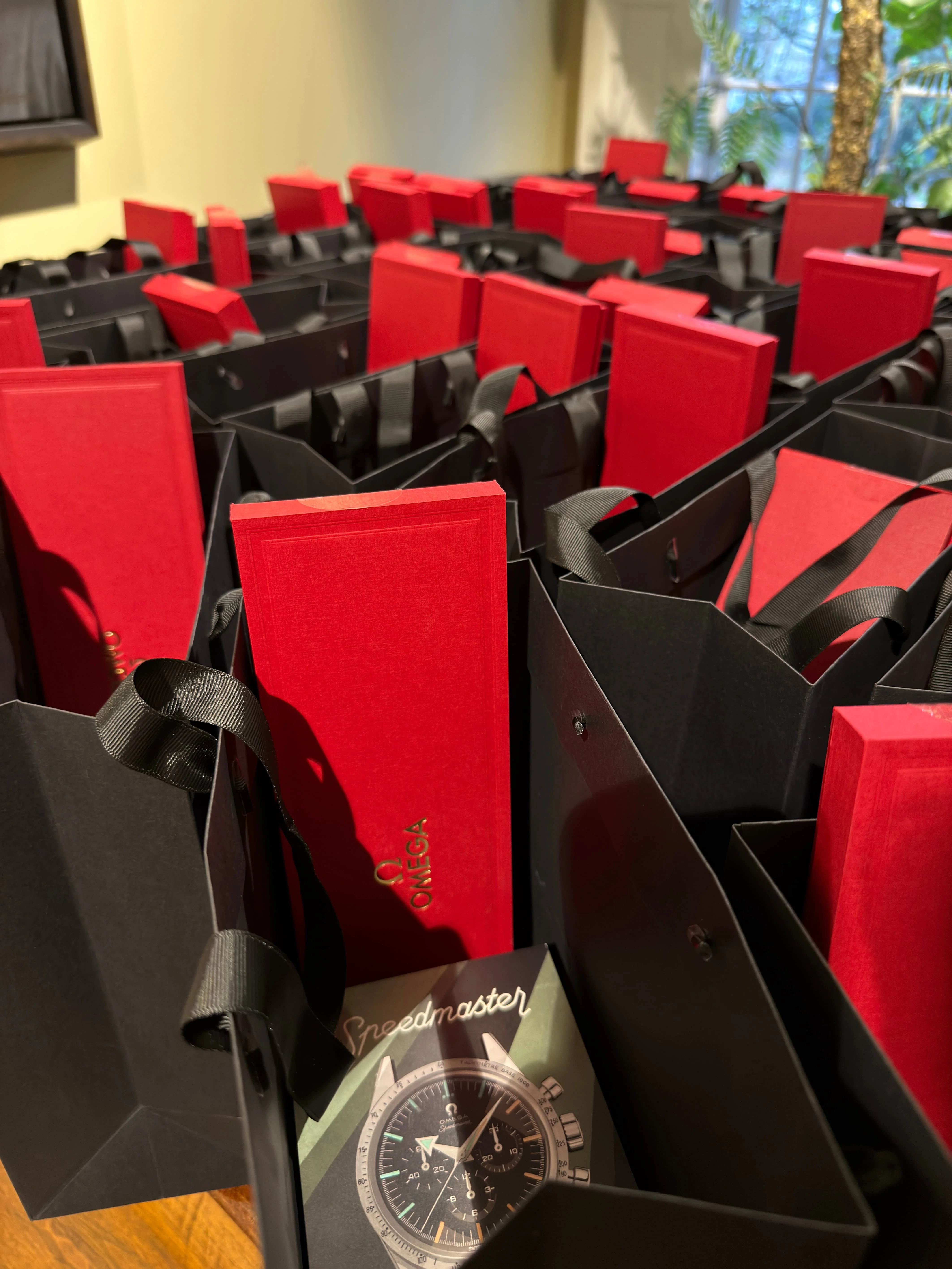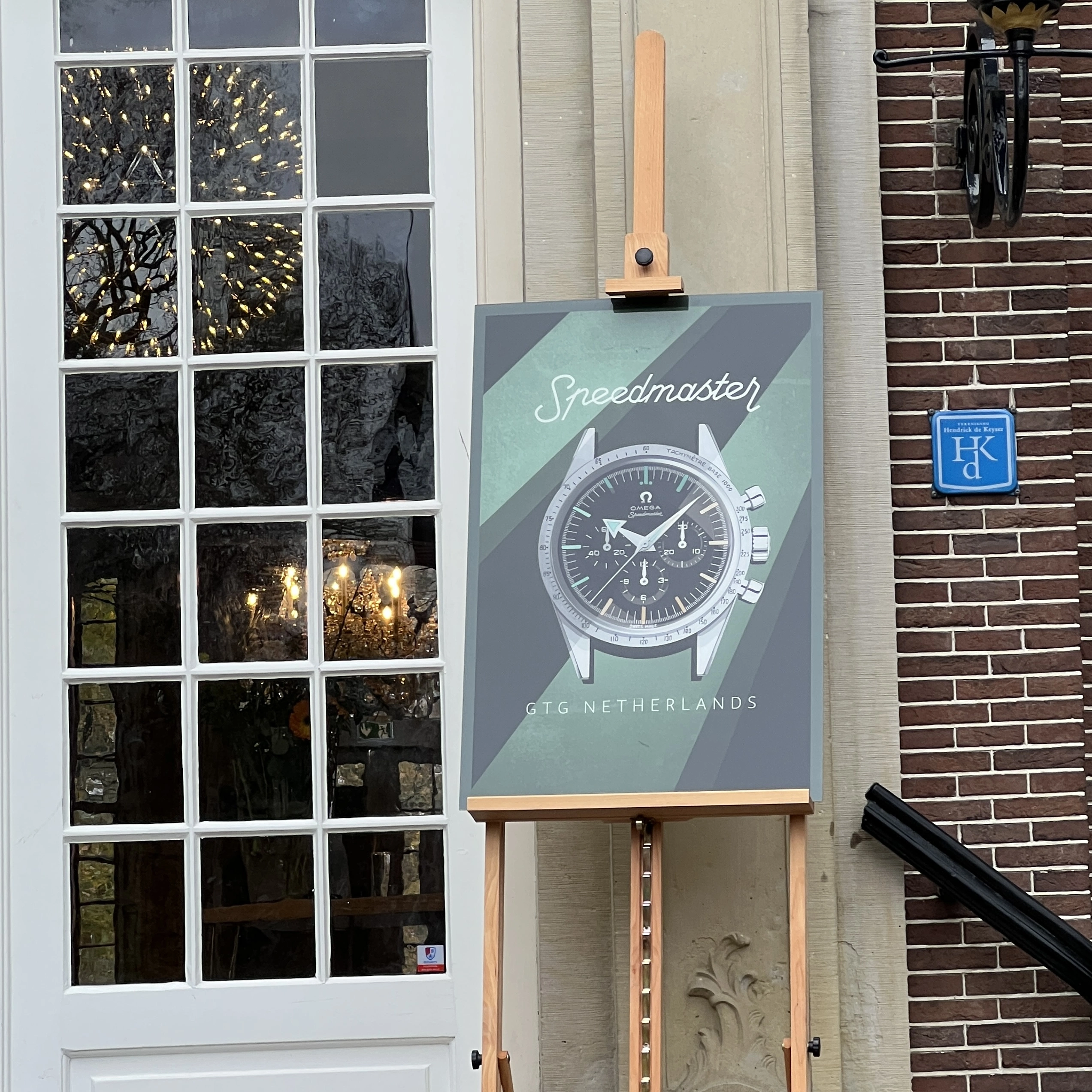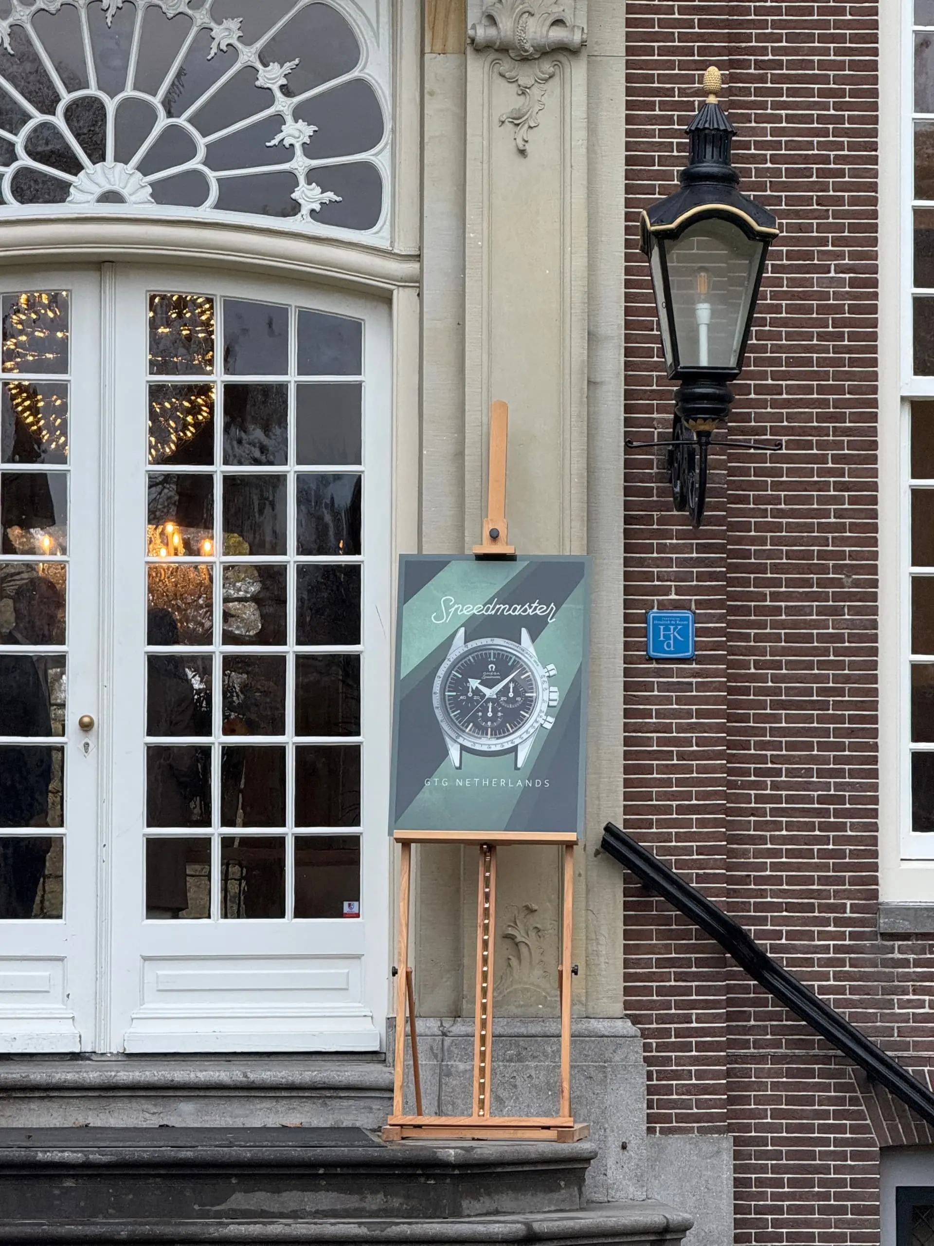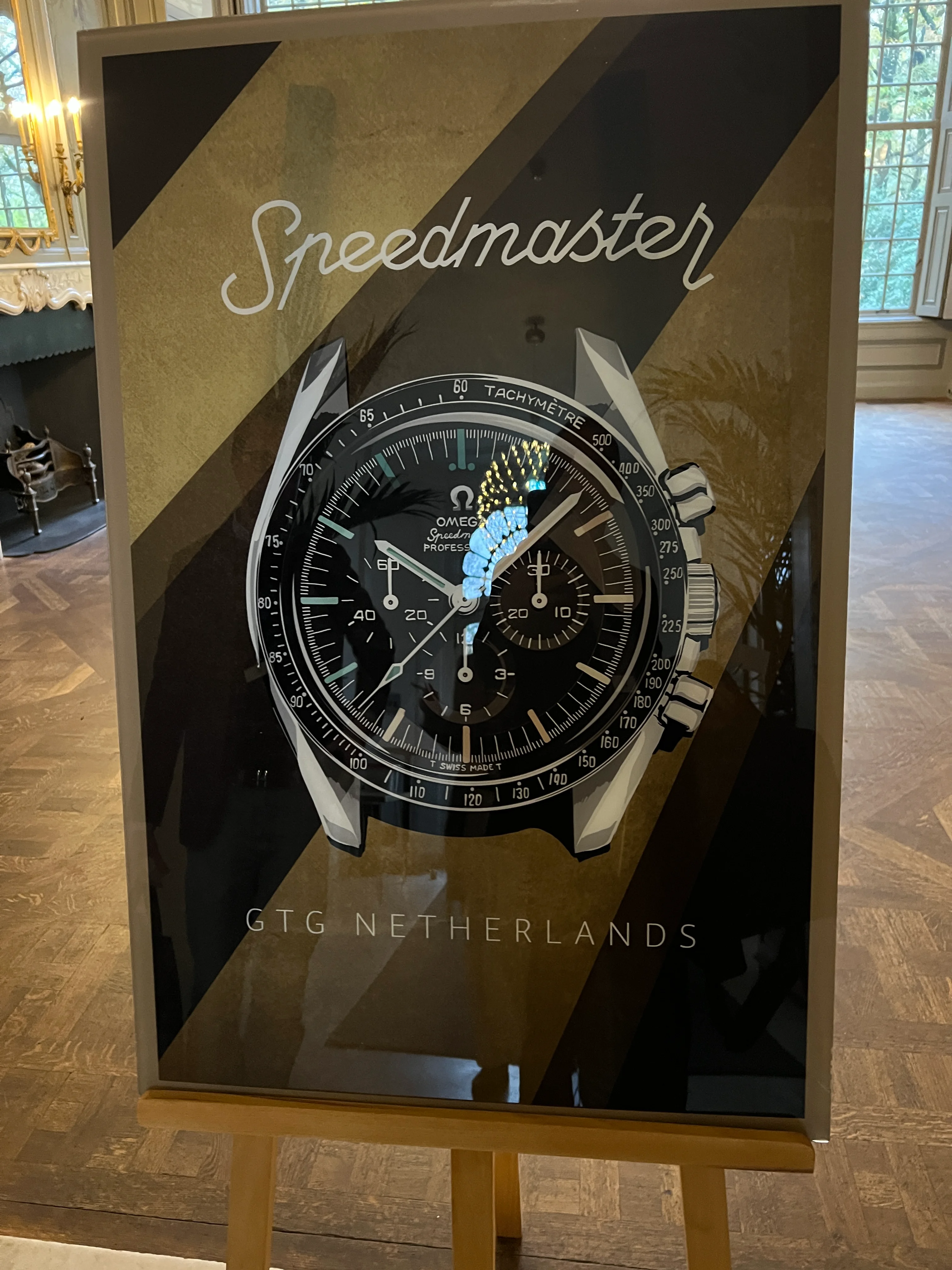 We were greeted by dedicated Speedmaster themed artwork (great job, @watchstick_81) at the door of the private and beautiful venue...