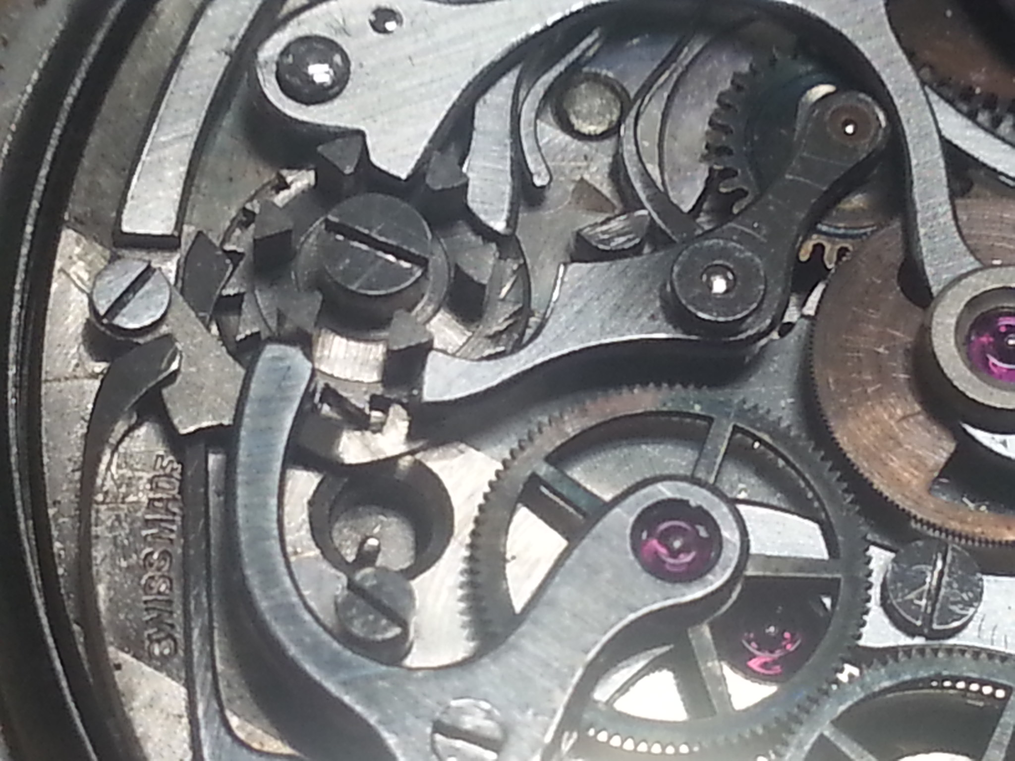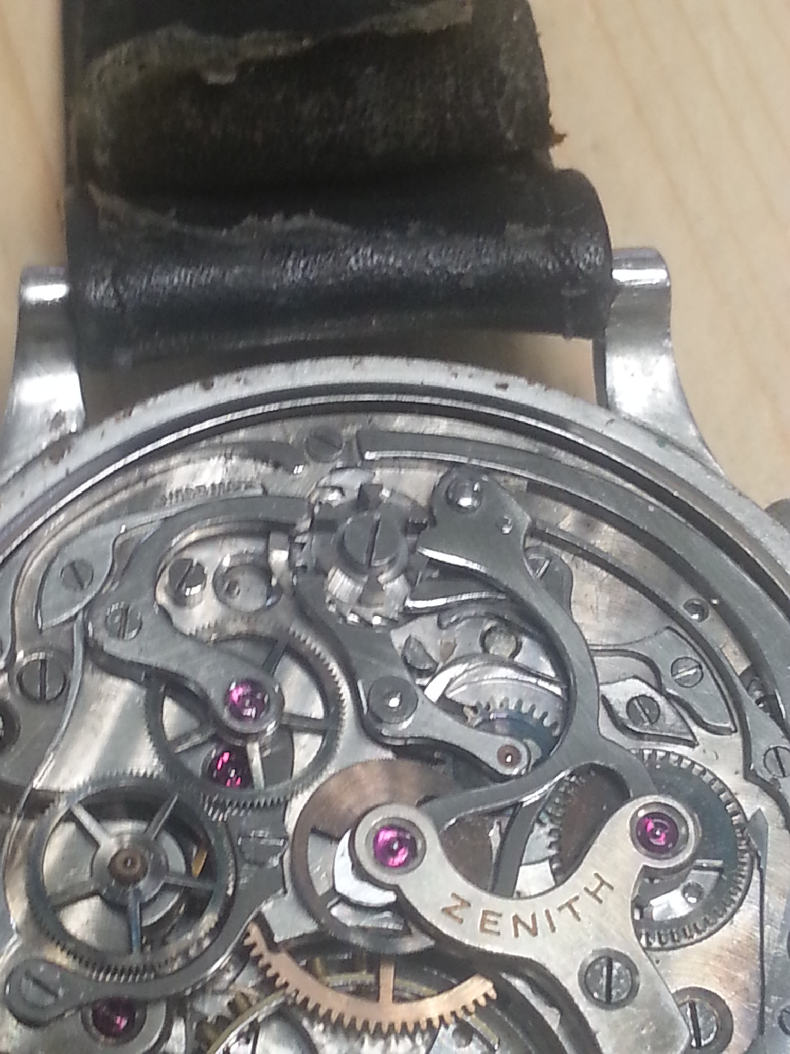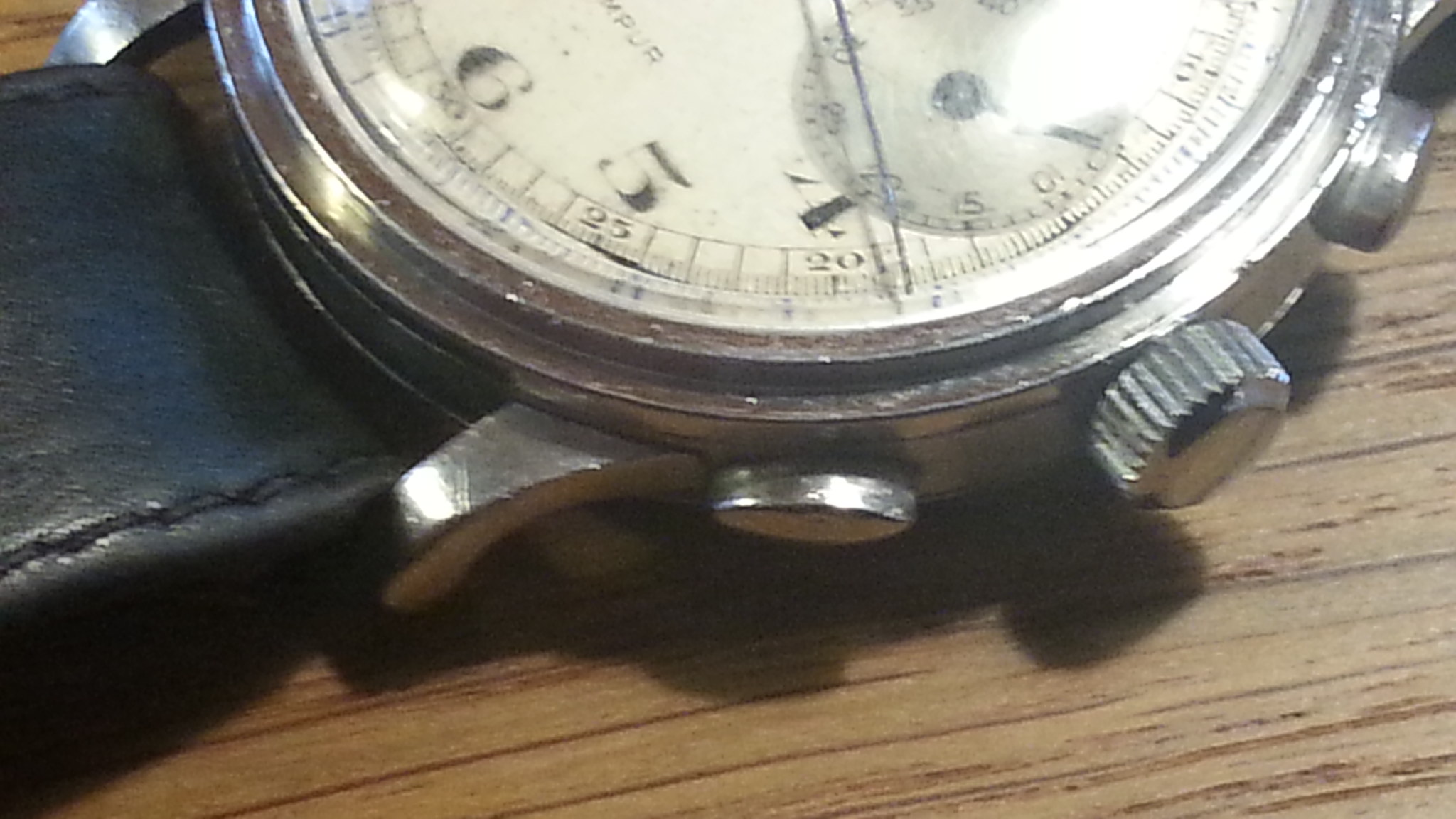3. The very sympathic seller mentioned that the movement was not as expexteced a Martel movement but based on Valjoux 22GH, what made the watch even more interesting for me. Instead of "normal" two pusher chronograph with mixed start stop function with both pushers, it has start/stop/reset function on pusher at 2. The pusher at 4 can be used to stop the chronofunction and to restart it at the same time without going back to 12. A function I only knew from some of the first Universal Geneve Compur watches before.