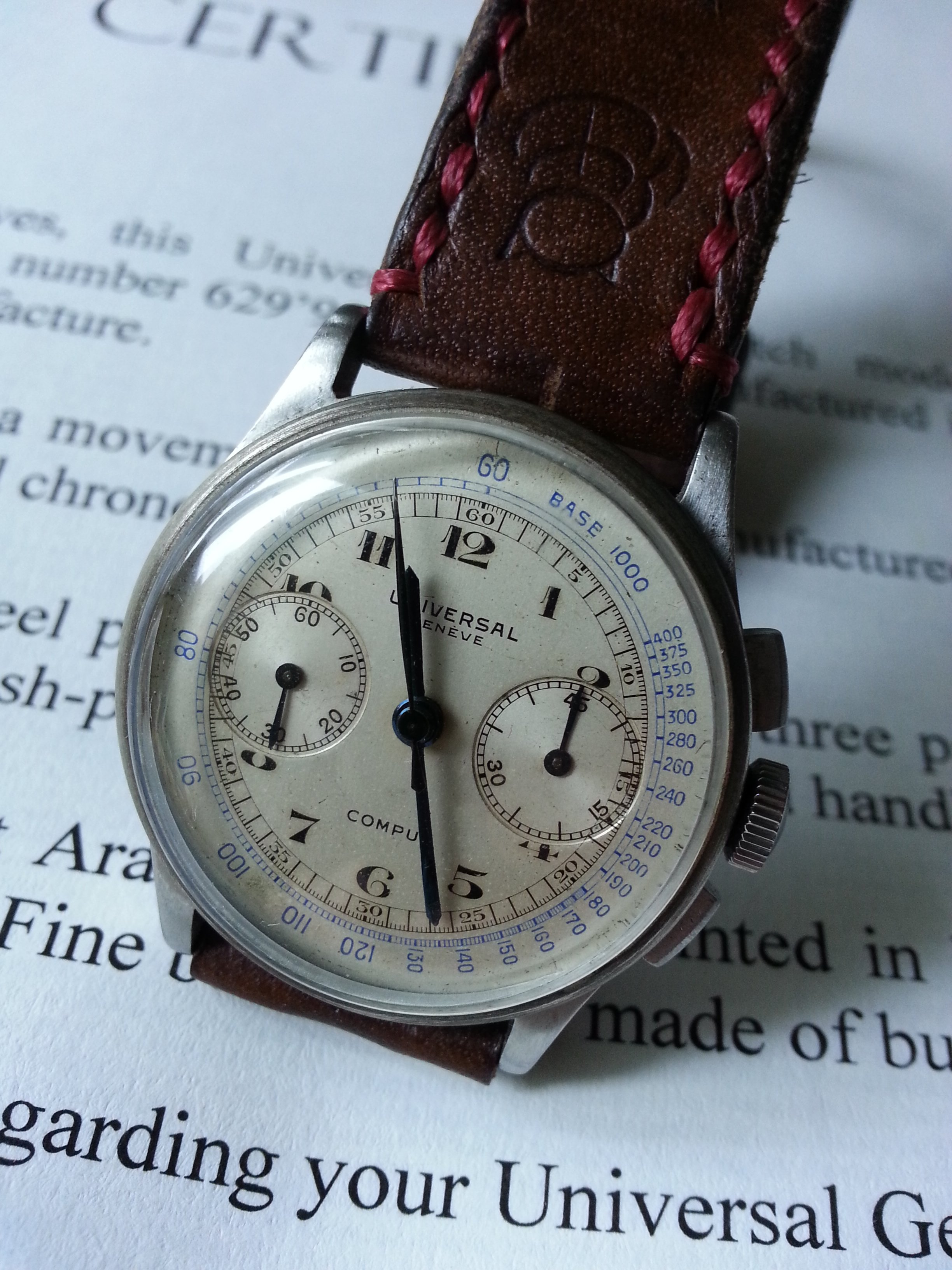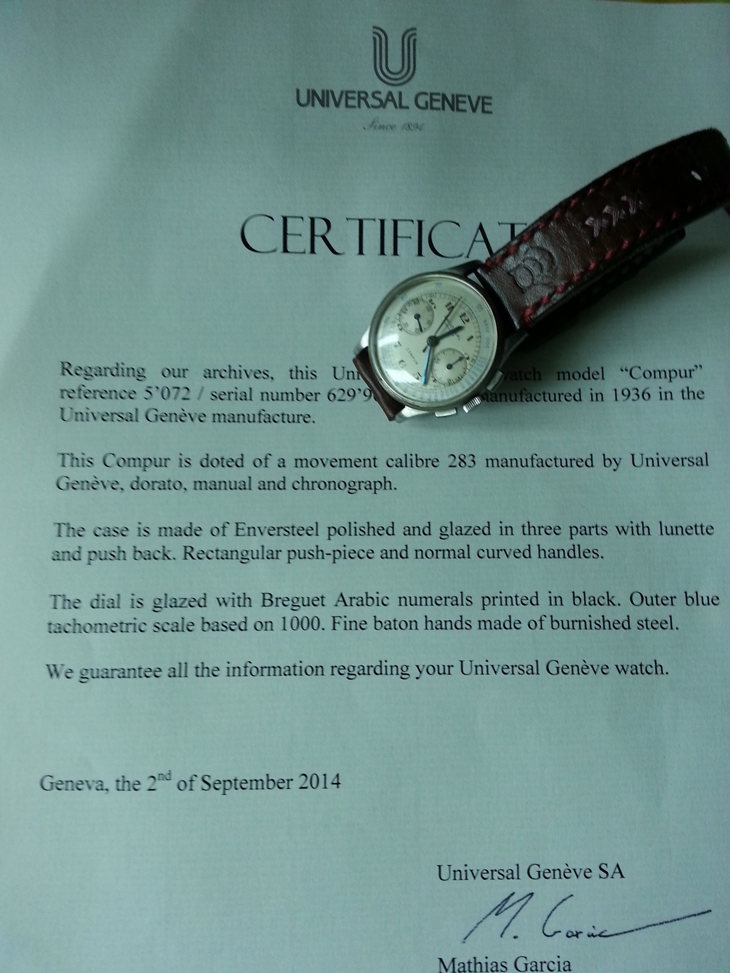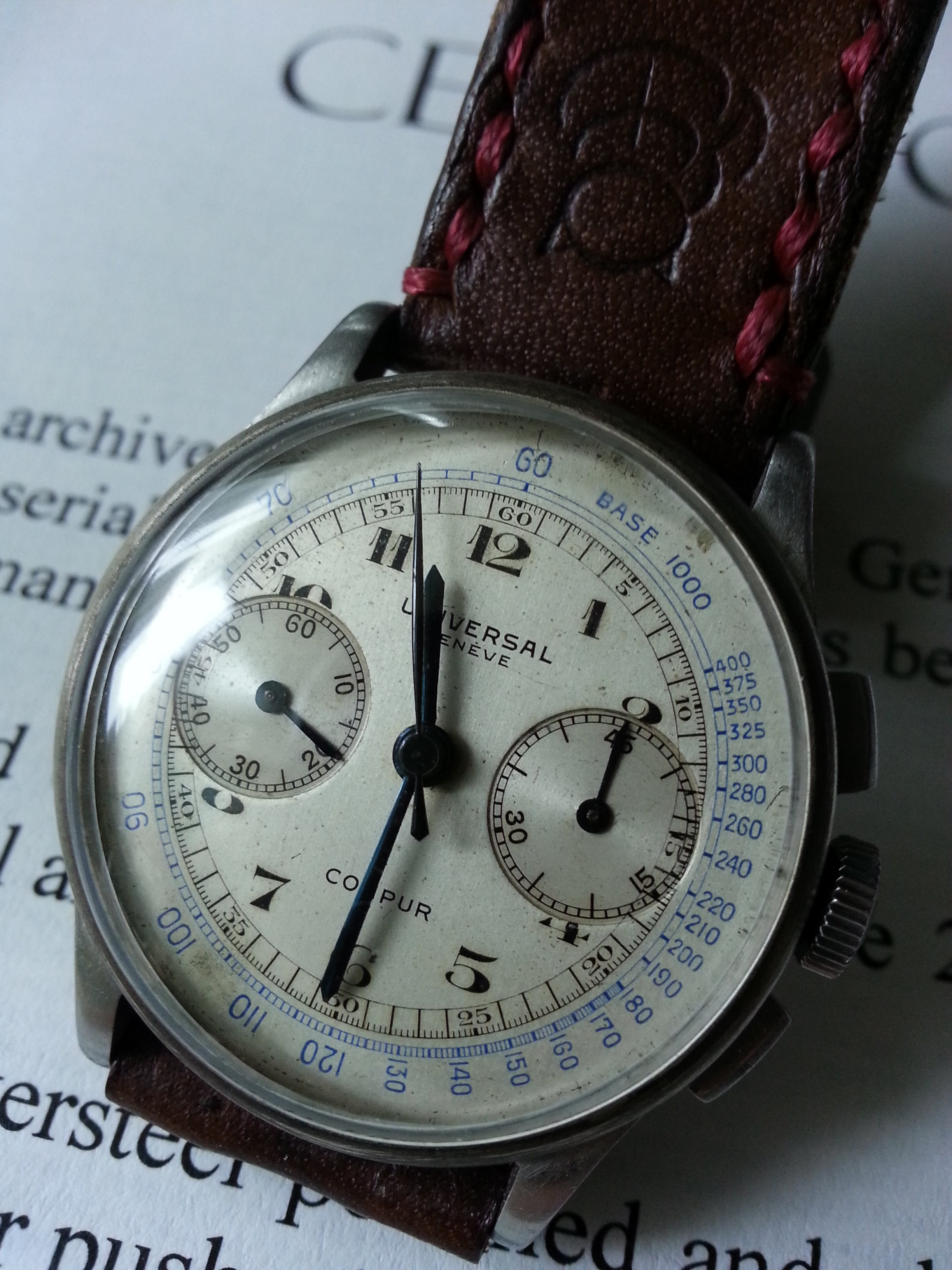 Reading some interesting articles on the web and at the italian forum "orologi.forumfree" about the history of the early Universal/Zenith Compur started in 1934, I got in contact with Nicola1960, who is a really profund expert for vintage chronographs of this time. I sent him over some pics and the material I have found.