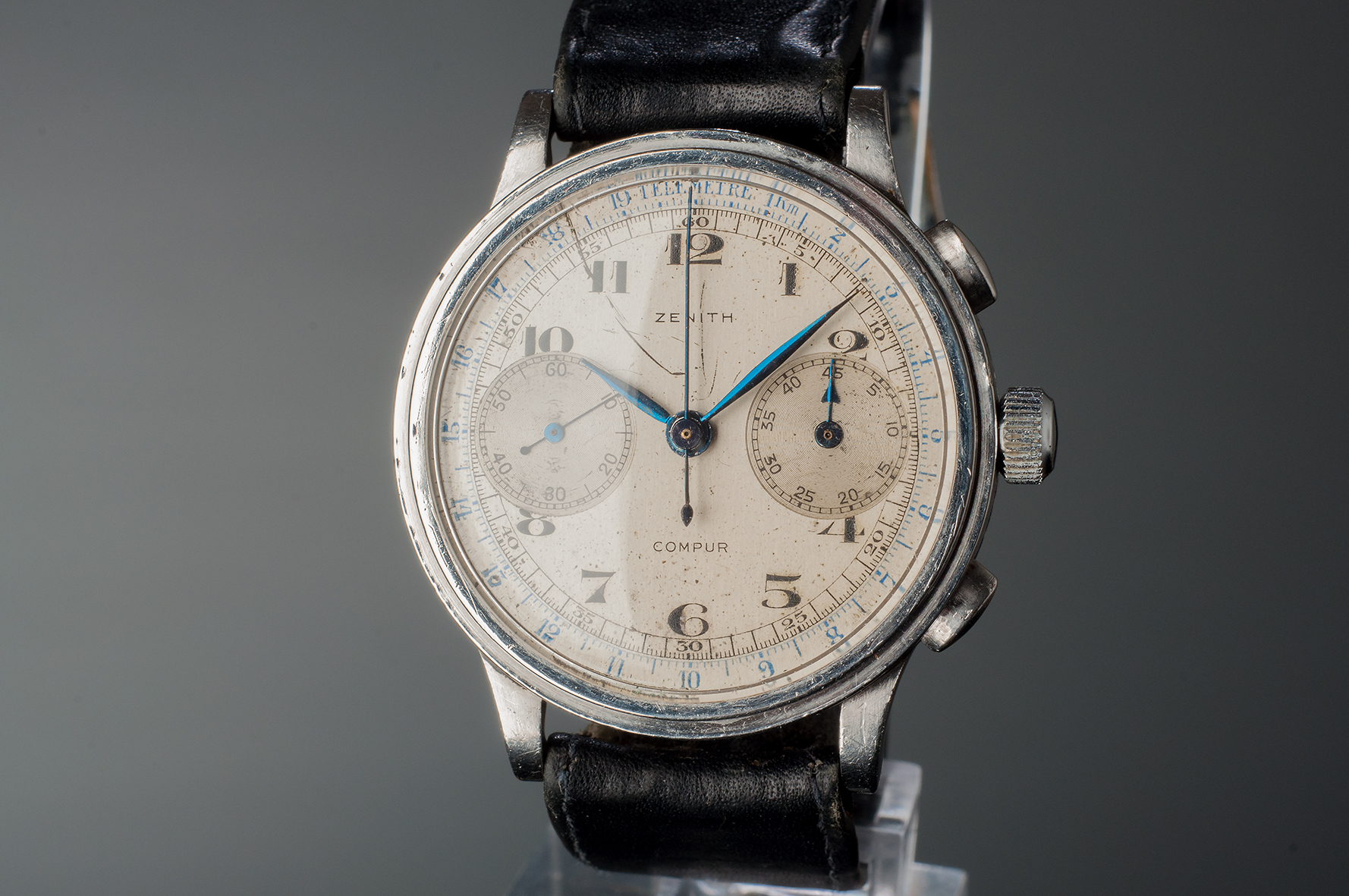 2. Stainless steel cases are very rare on this early chronographs. And the sizes of the case with 38mm is for most of us simply the best. Combined with the stepped case design and olive pushers for me highly desireable...