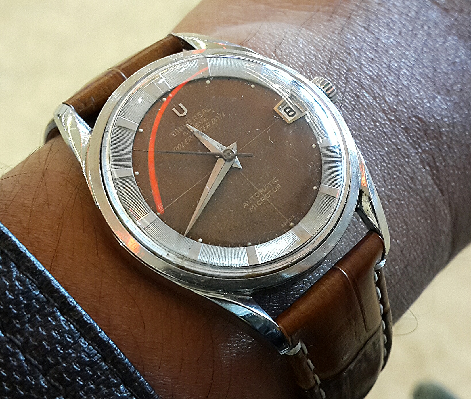 Lovely John. Those are the fattest teardrop lugs I've ever seen, and the dial markers remind me of ones used by Vacheron. Uniquely engaging piece, and a great example of UG's penchant for eccentric cases!👍