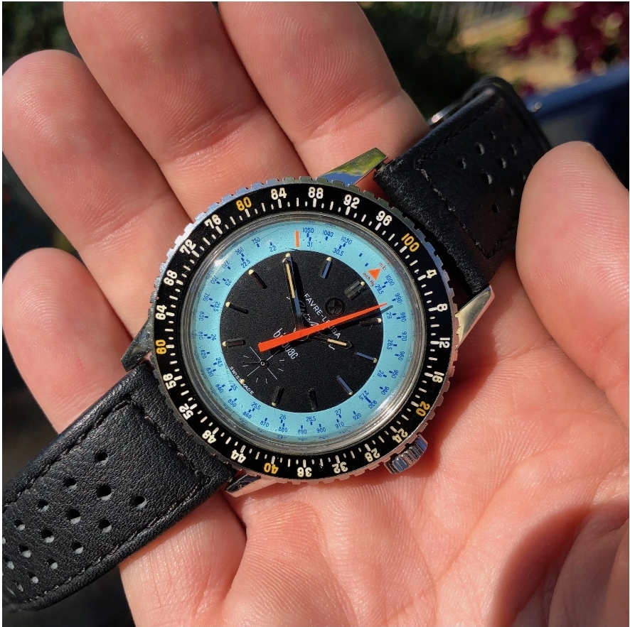 ·Found a neat diver from, i believe, the early 60's. Great complication, having the mechanical depth meter built in. This watch doesn't look like it was worn...or worn very little, as it still has its original FL "plastic" strap and buckle. Anyone know what numbers of these were made and the ratio of feet 160 versions to meters 50's? Thanks