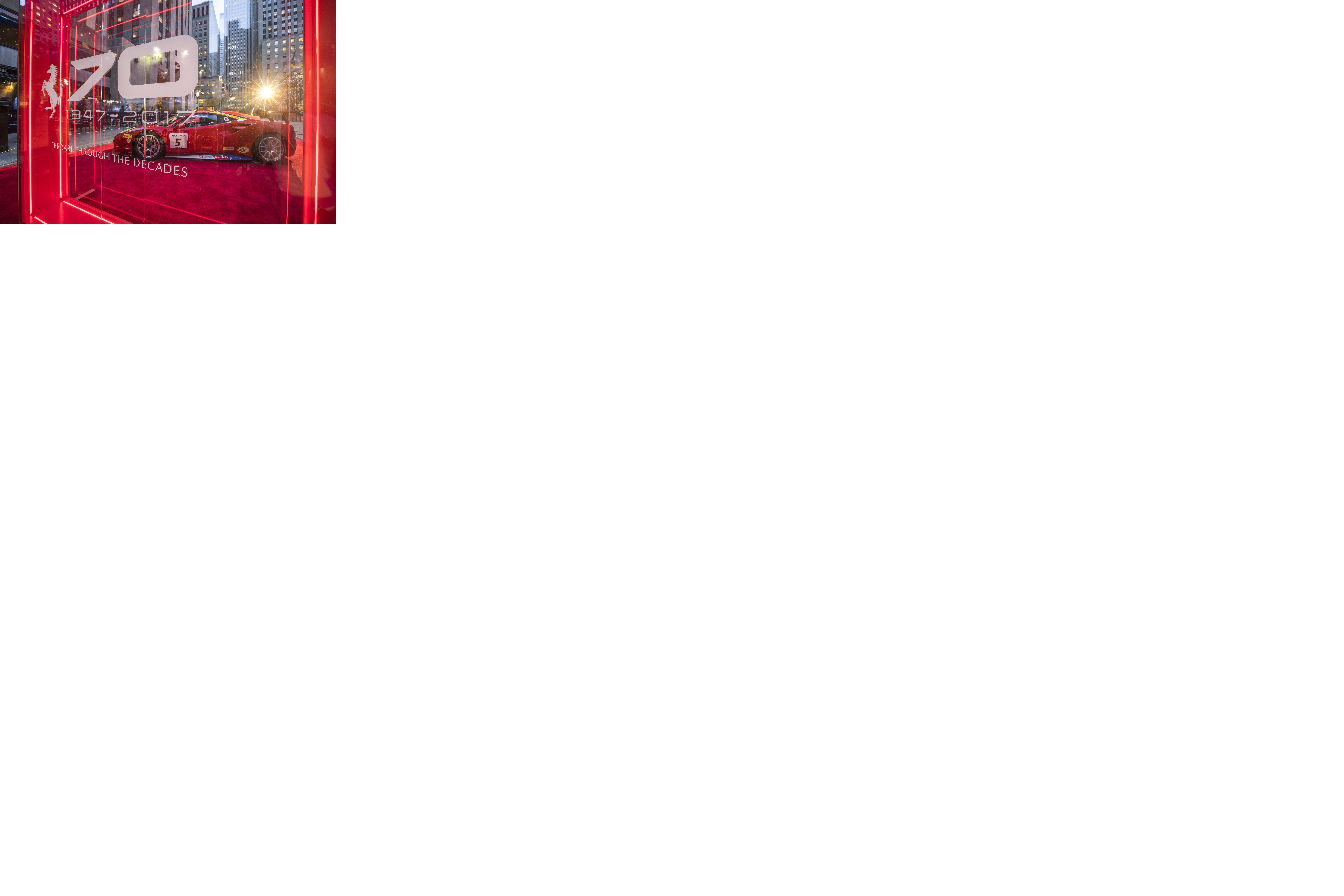 - “Through The Decades”—Rockefeller Plaza will host an open-air exhibition displaying one extraordinary car per decade, as well as the limited edition LaFerrari Aperta (30 Rockefeller Plaza between 49th to 50th Streets and 5th and 6th Avenues).