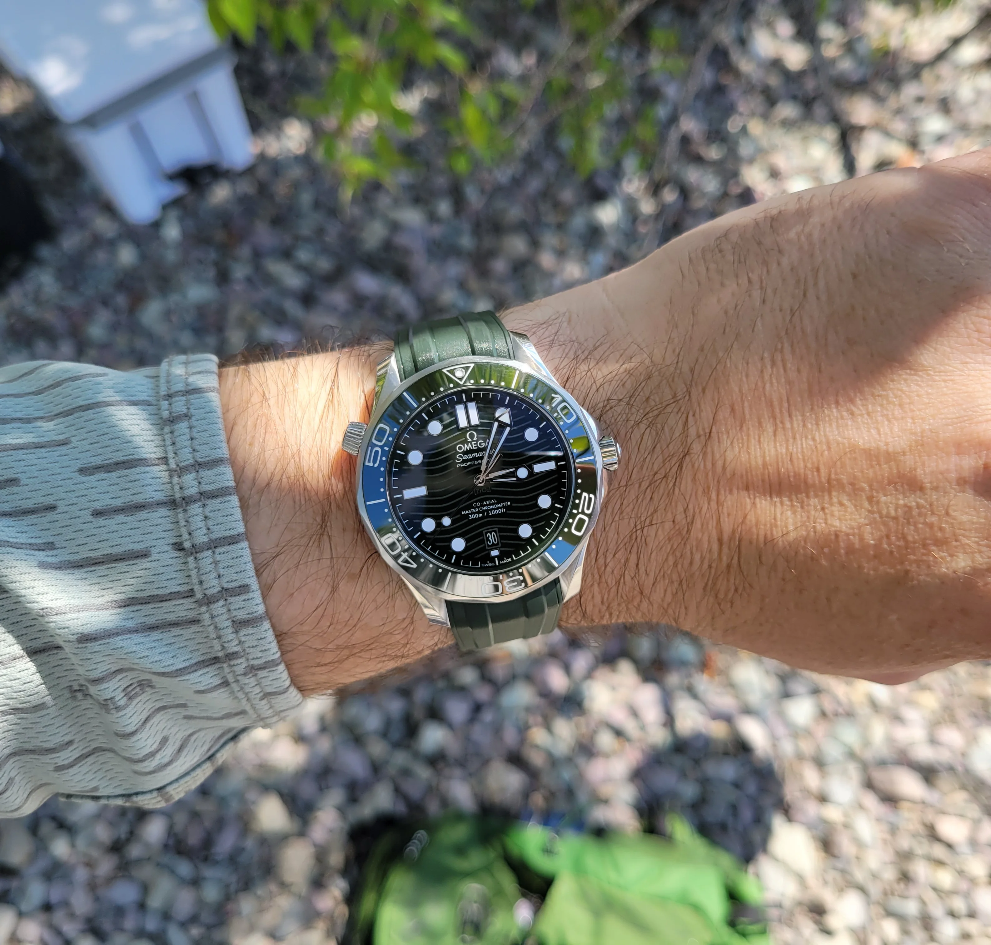 Of the current ceramic Seamaster professionals, this one is easily my favorite. As always, Omega's images give you a terrible idea of what it looks like in general and give you no impression of what it looks like in person.