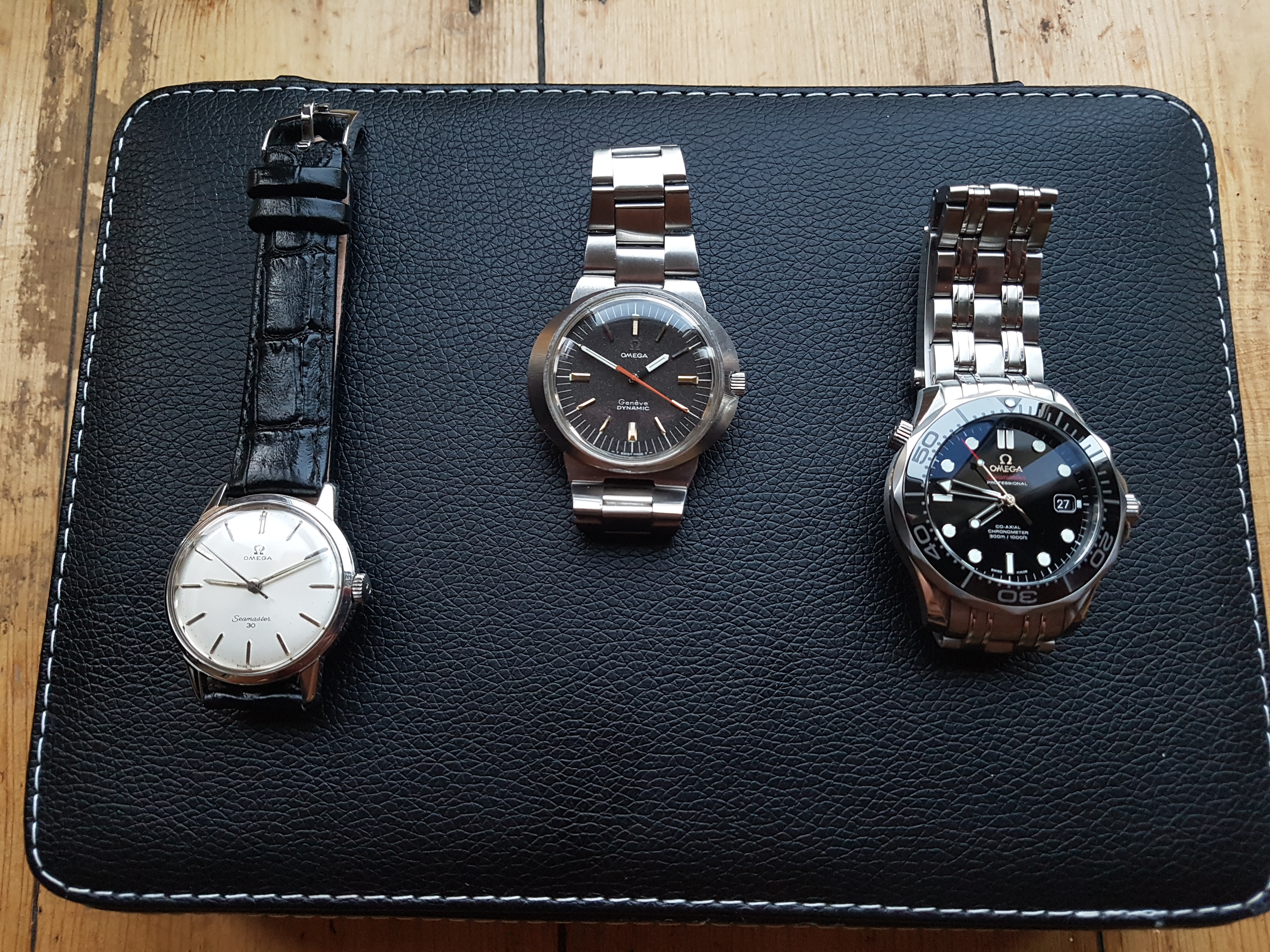 My current collection of Omegas is a Dynamic from around 1972 (tbc) which was my father's and he gave me about three years ago and I wear on special occasions; a 1964 Seamaster 30 which I love as my main dress watch and for which I bought an Extract of the Archives, and a 2016 SMPc which serves as my daily wearer - both work and play.