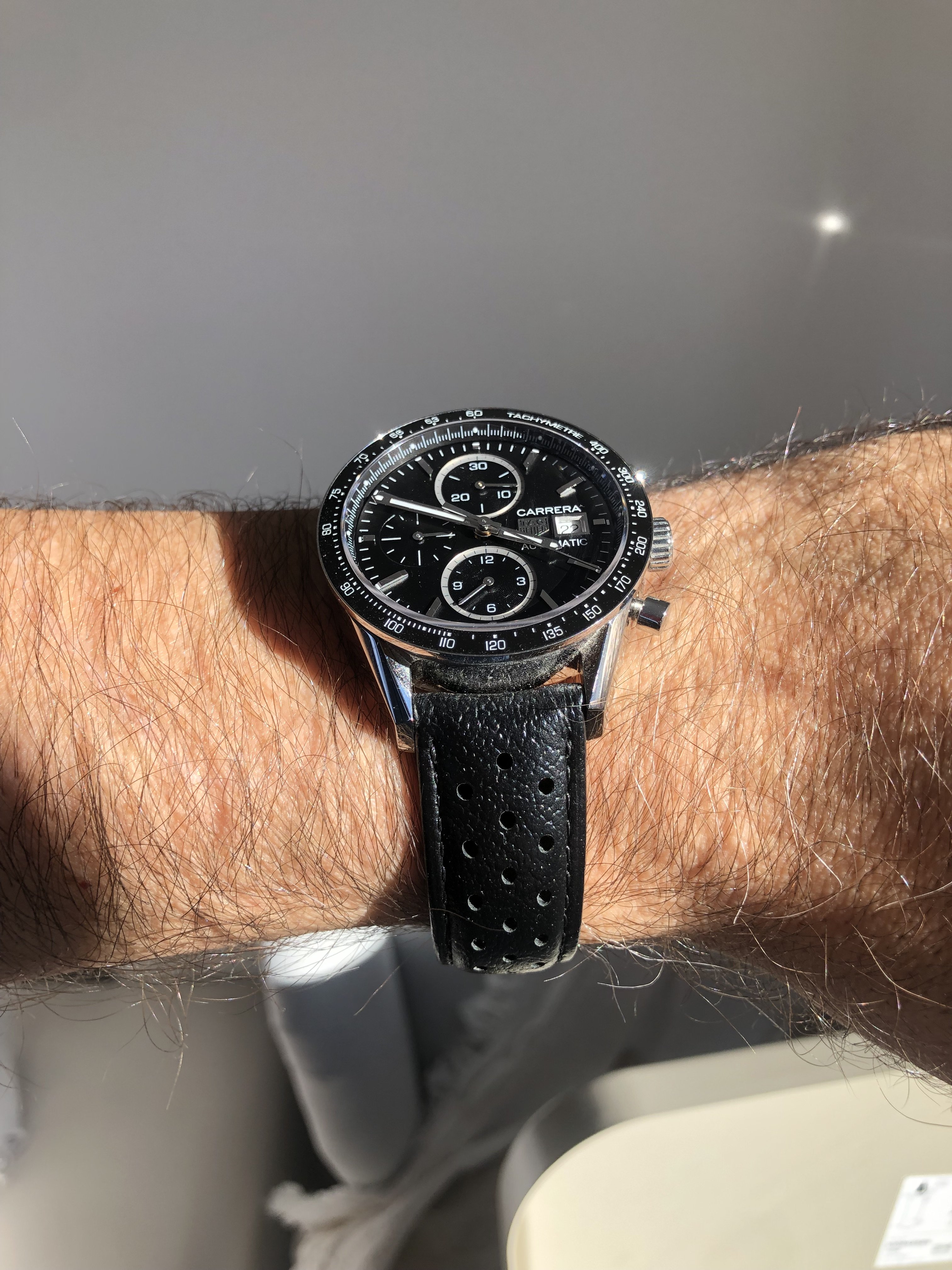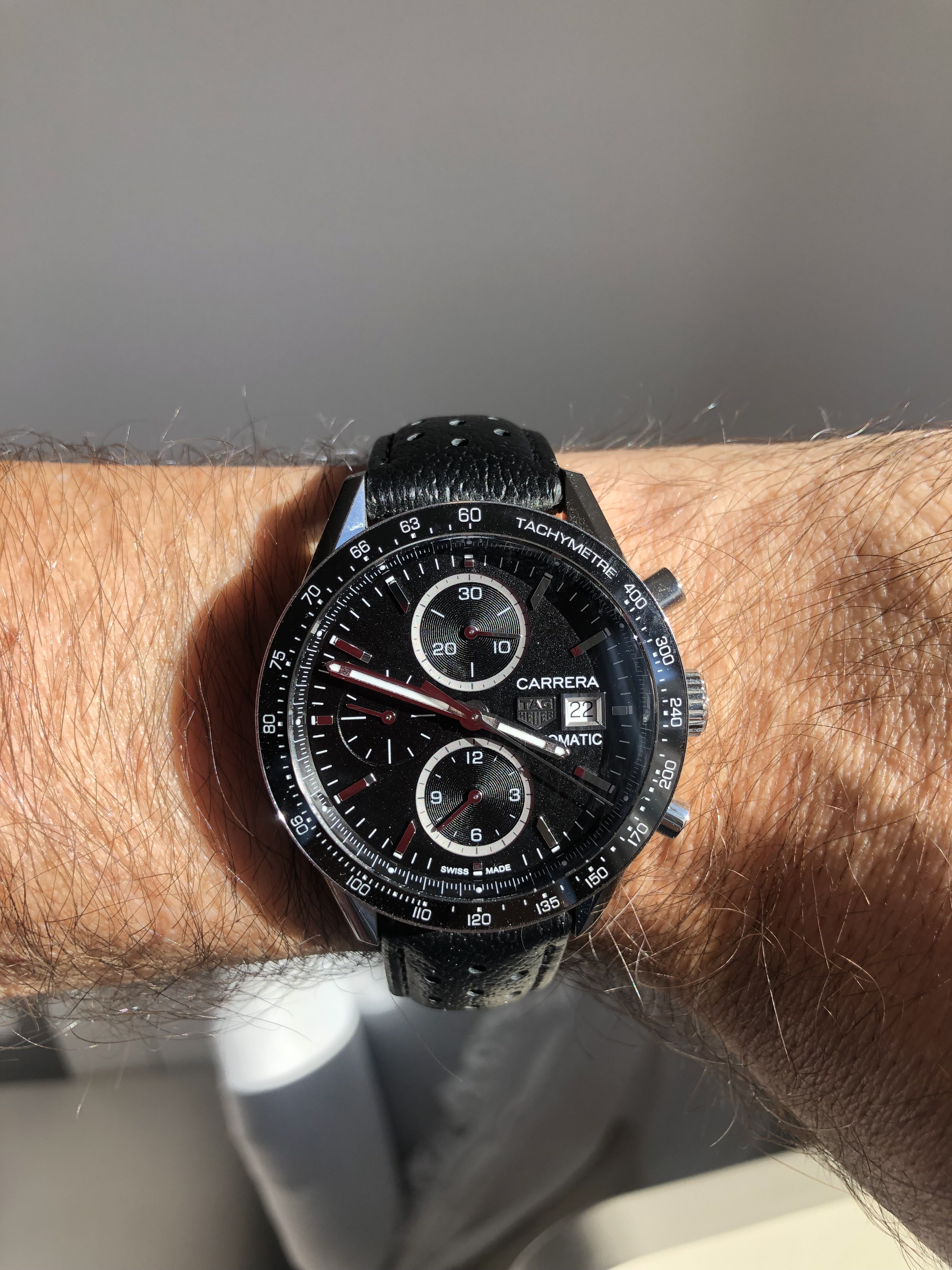 ·I'm selling a Carrera Calibre 16, 41mm, Juan Manuel Fangio limited edition from 2020. Ref. CV201AJ. I'm in love with this watch, but I'm selling it because I have to pay off some debts. The watch is completely new. I bought it on November 2020 and I have used it very little, only in weddings and special occasions. Guarantee is still active and expires on November 2022. It's a Juan Manuel Fangio limited edition and has a Juan Manuel Fangio image engraved on the back. I ship internationally at buyer's expense.