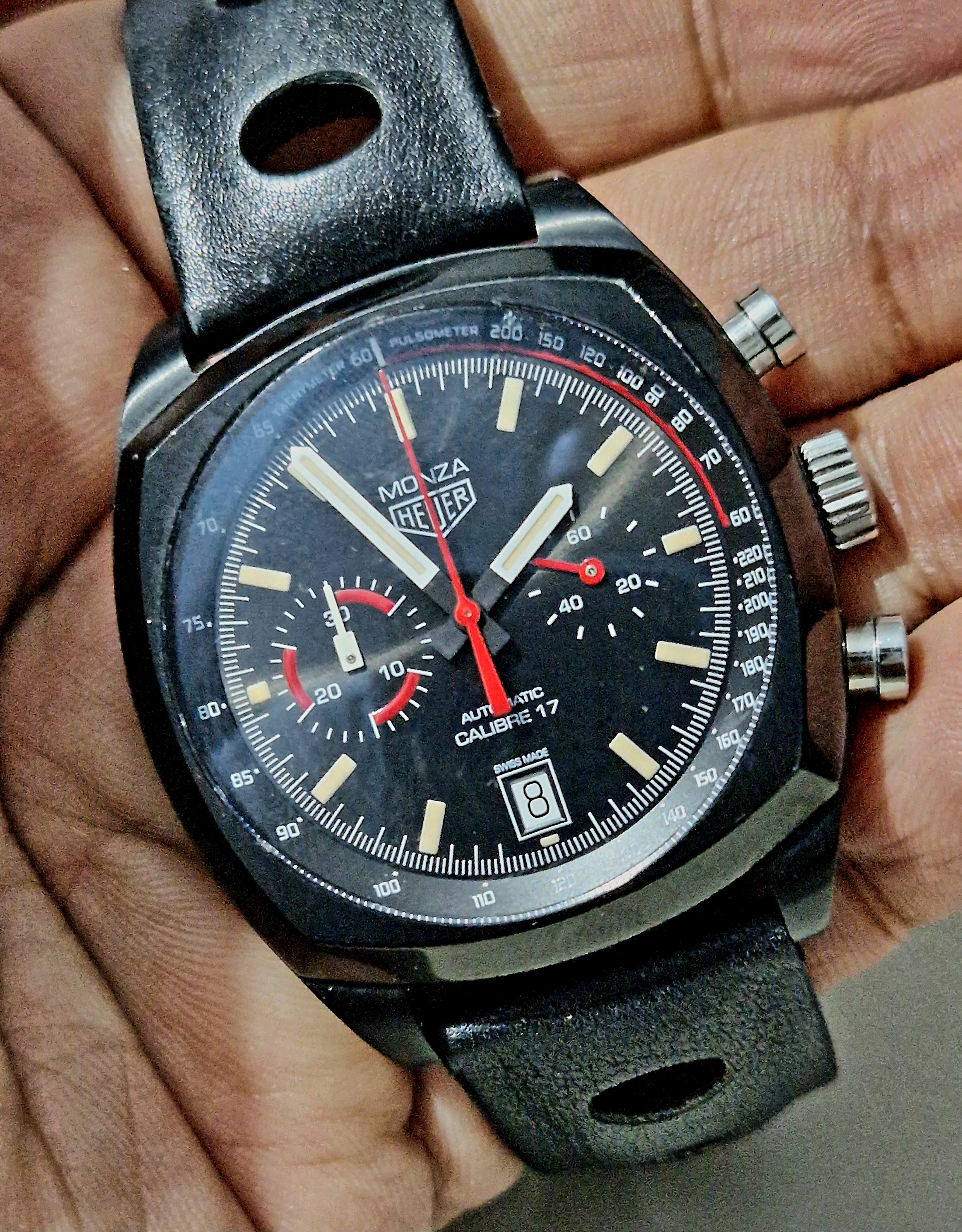 This is a gorgeous watch and is one of the favourite watches among the group members. The USP of the watch is the titanium black PVD case. There are buff marks on the case at different areas.
