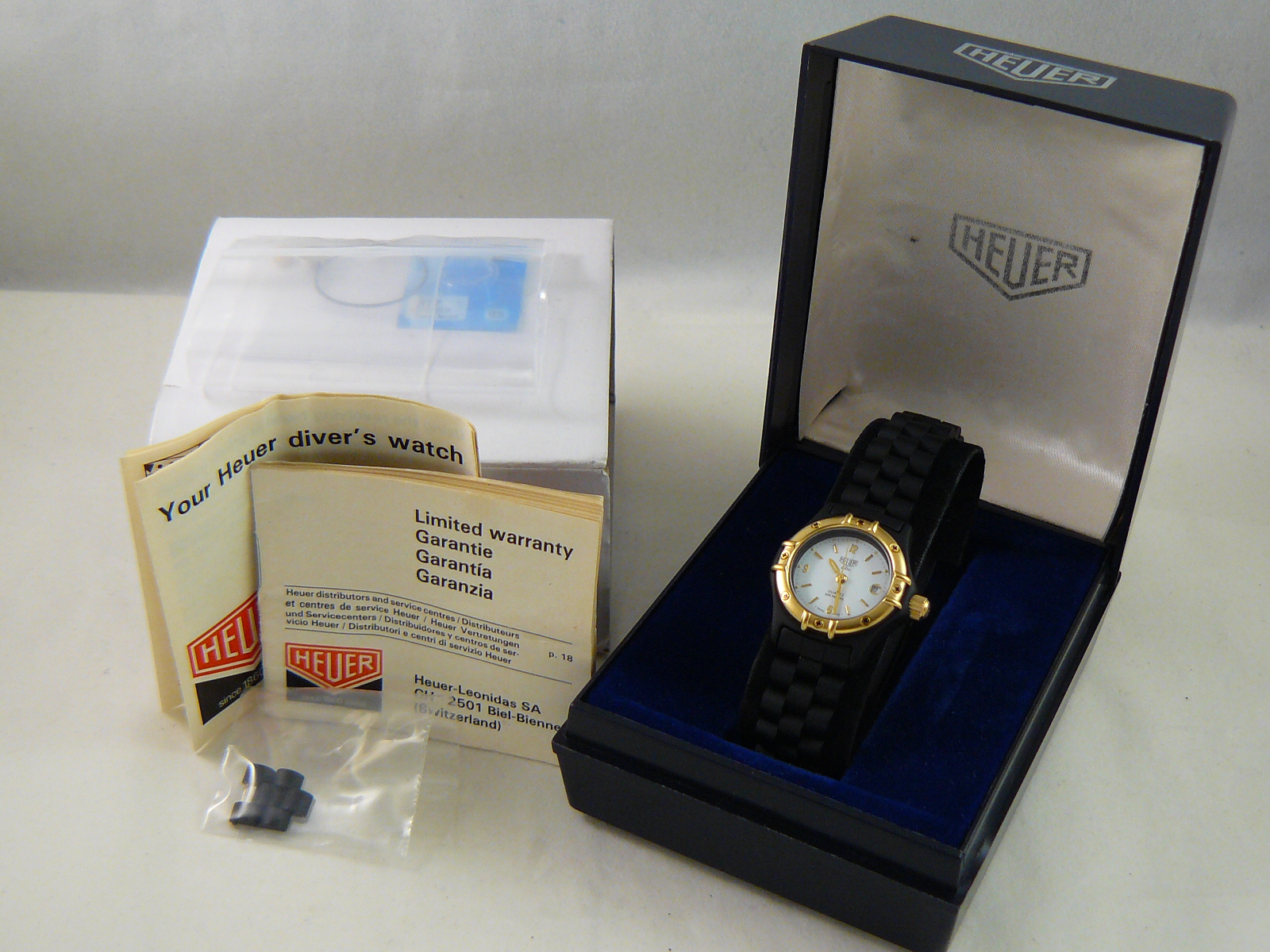 Comes with a 3 months written warranty on the movement, in an original blue Heuer box, the books and with two extra links.