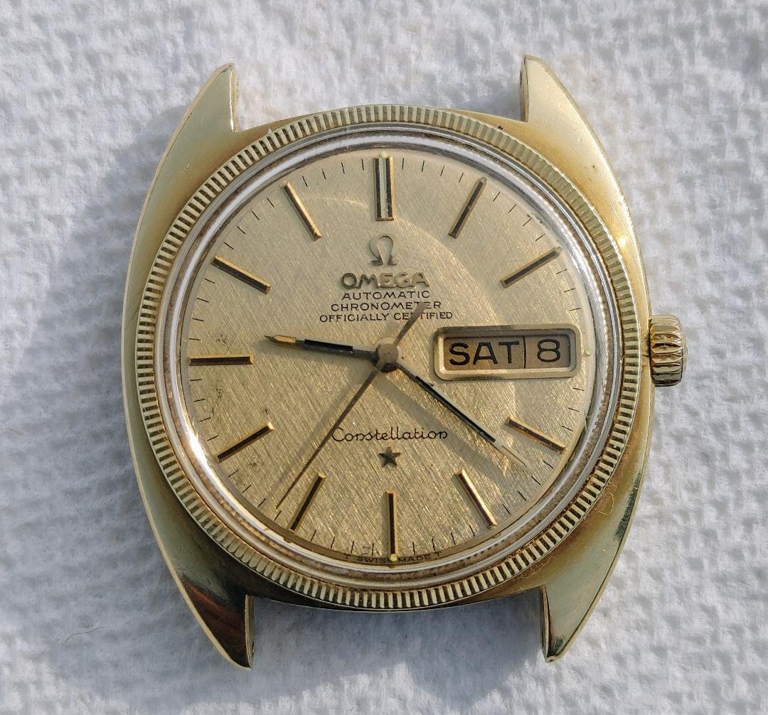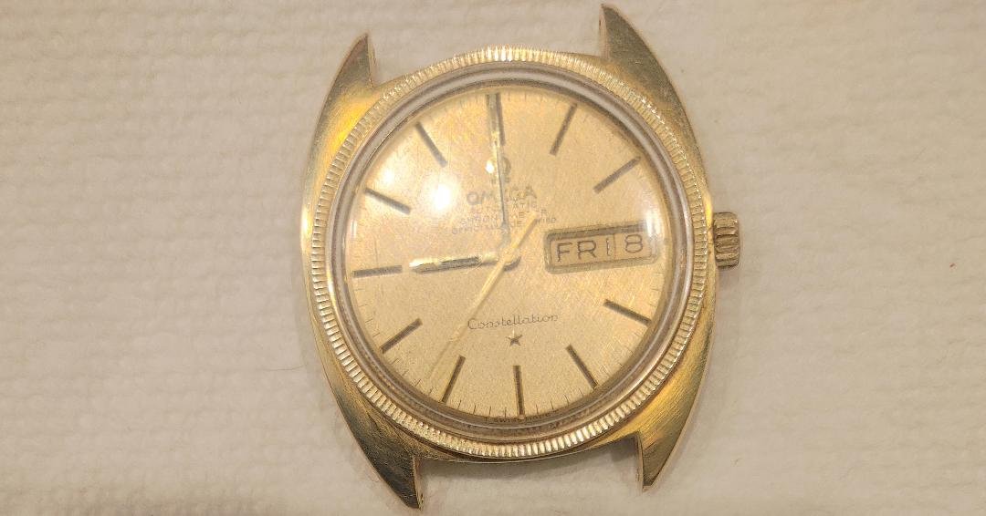 From what I just researched quickly it is apparently a Day / Date Constellatiion, linen dial, stainless case with a gold capped face and a 14k gold bezel, ref. 168.029 with Cal. 751. Probably 1969 or 1970 vintage, which would coincide with the first moon landings, which he worked on.