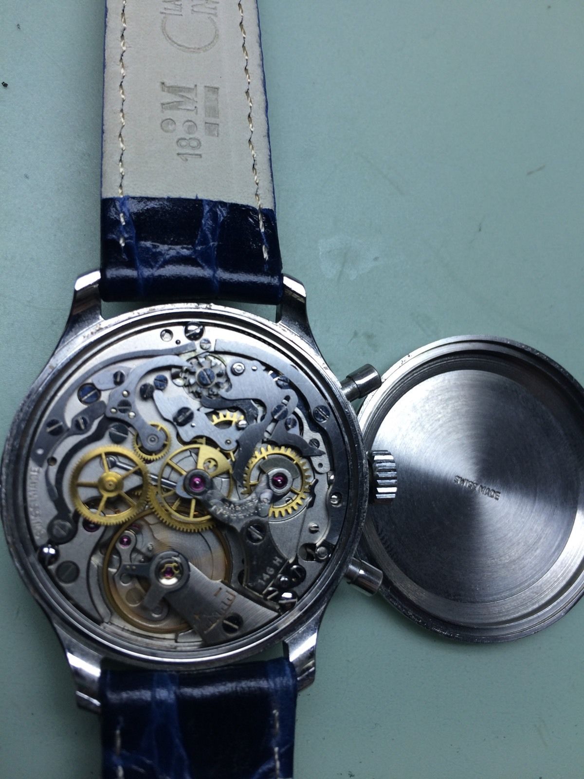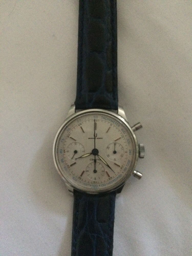 Movement is not signed UG but has 281 on it. Uni compax print is rough and case back has 90's UG logo. It could be a re-edition but it does not seem to be documented anywhere. Surely it should be a compax (three registers) and not a uni-compax (two registers) ?