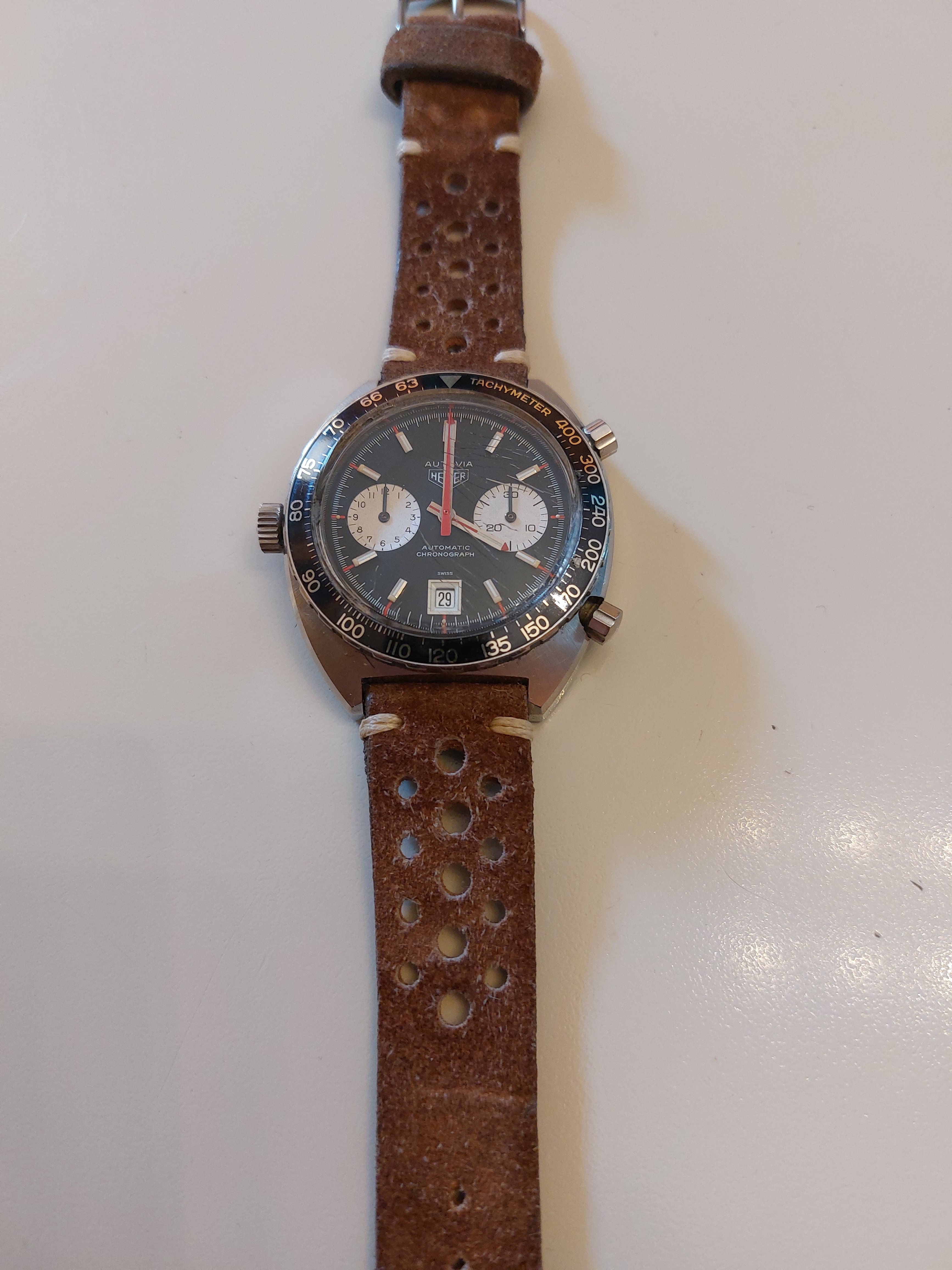 Bellissimo e raro Heuer Autavia cronografo ref.1163MH della fine degli anni '60.