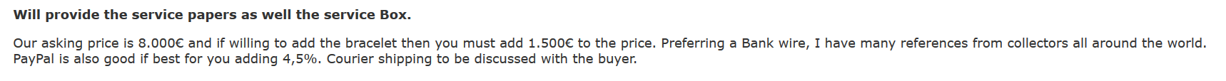 So having asked around I am quite happy with my price. And I saw that the one at Casowatches is not in comparable condition. I am in no need or hurry to sell so will just see how it goes. 😀