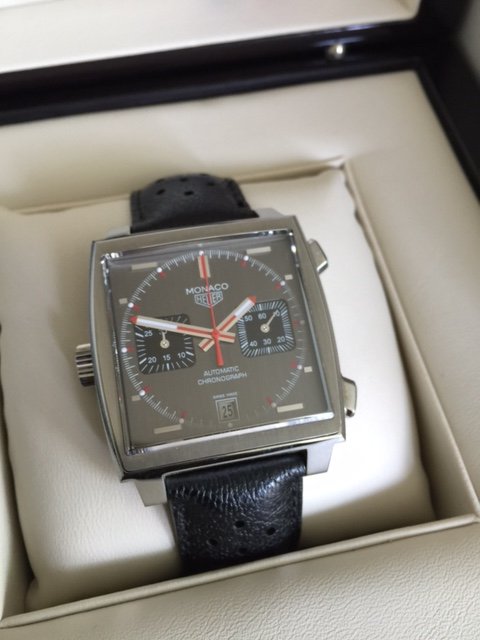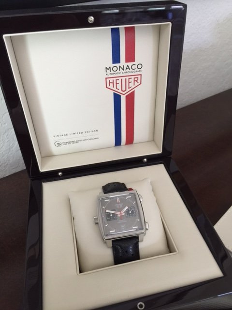 ·Re-edition of original Monaco, including left hand crown, CAW211B, number 17XX of 1860. Mint condition except for an extremely subtle hairline on the lower half of the buttons side of the case but difficult to photo. Purchased new from Feldmar in March 2012. Worn very sparingly, about a half dozen times. Everything included. Will be sorry to see it go but must gather funds to cover a new acquisition. $3995 including delivery within CONUS via USPS registered and insured. References available. Email [email protected].