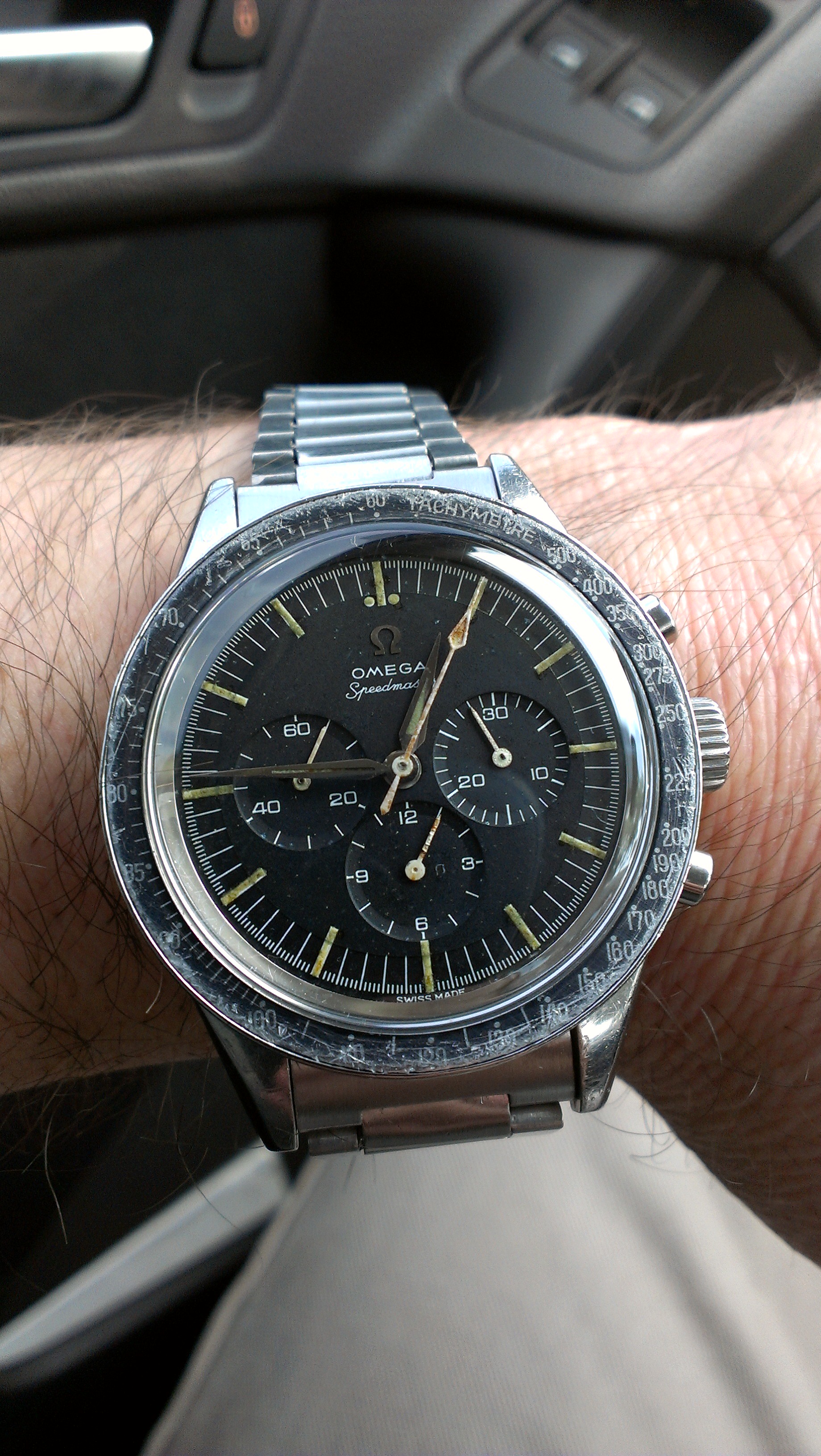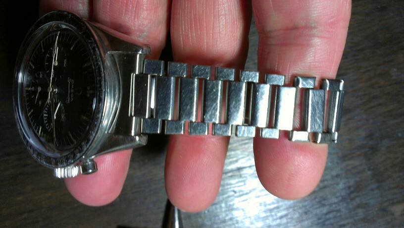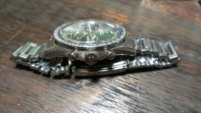 NOS original glass, end links aftermarket. A very good example of this early omega premoon Speedmaster.
