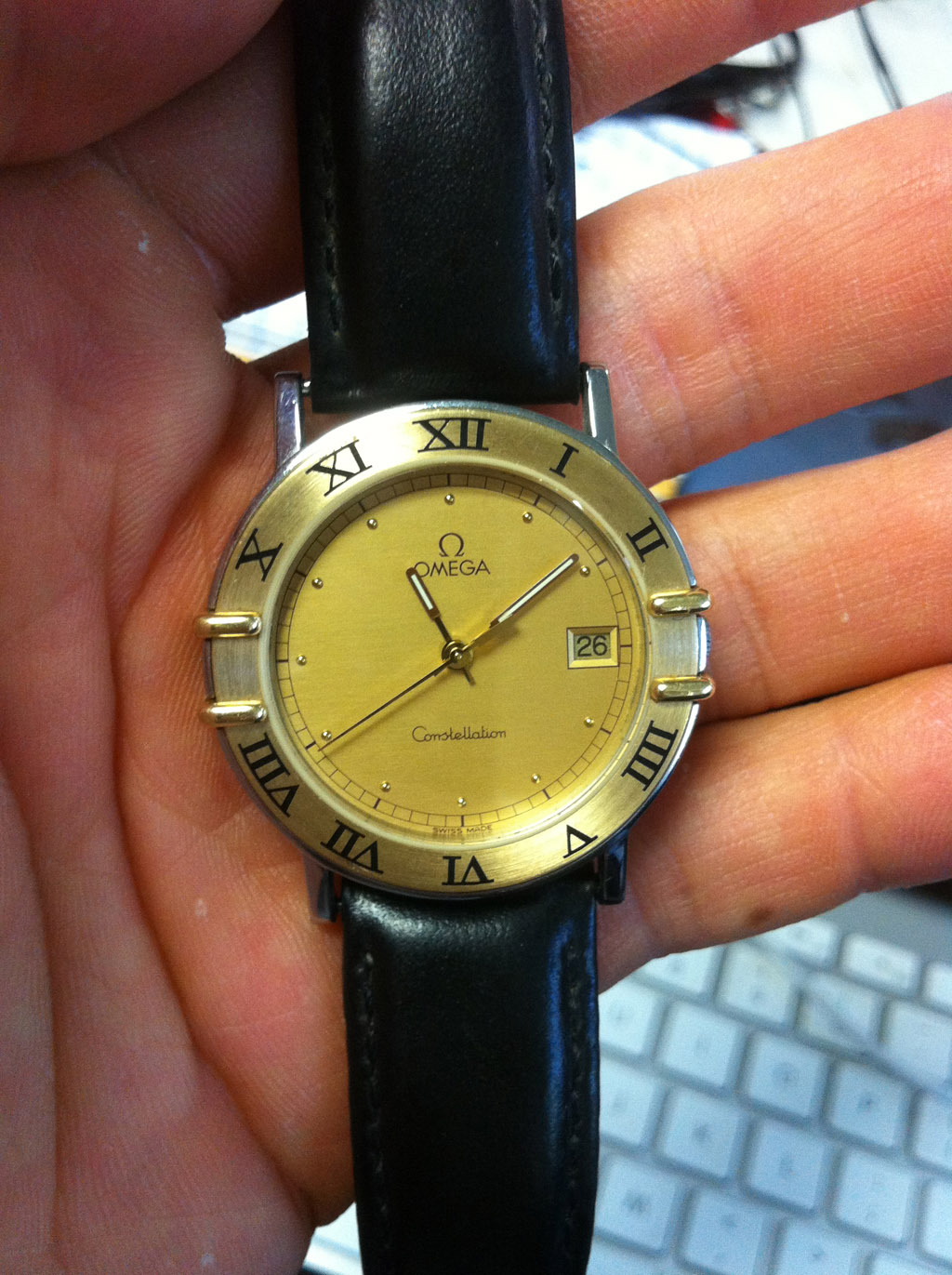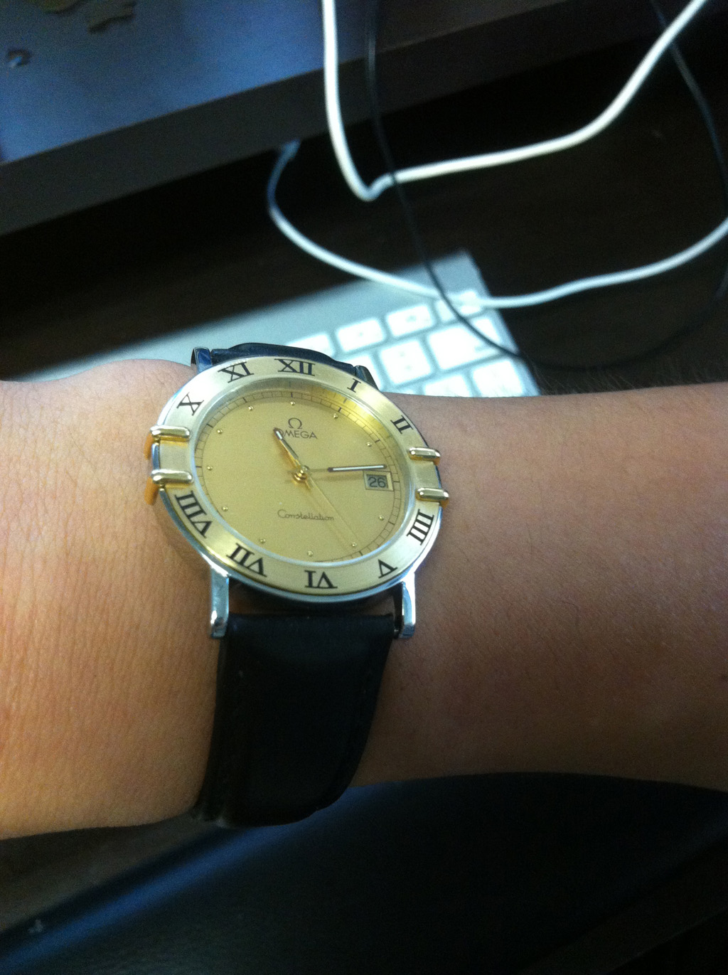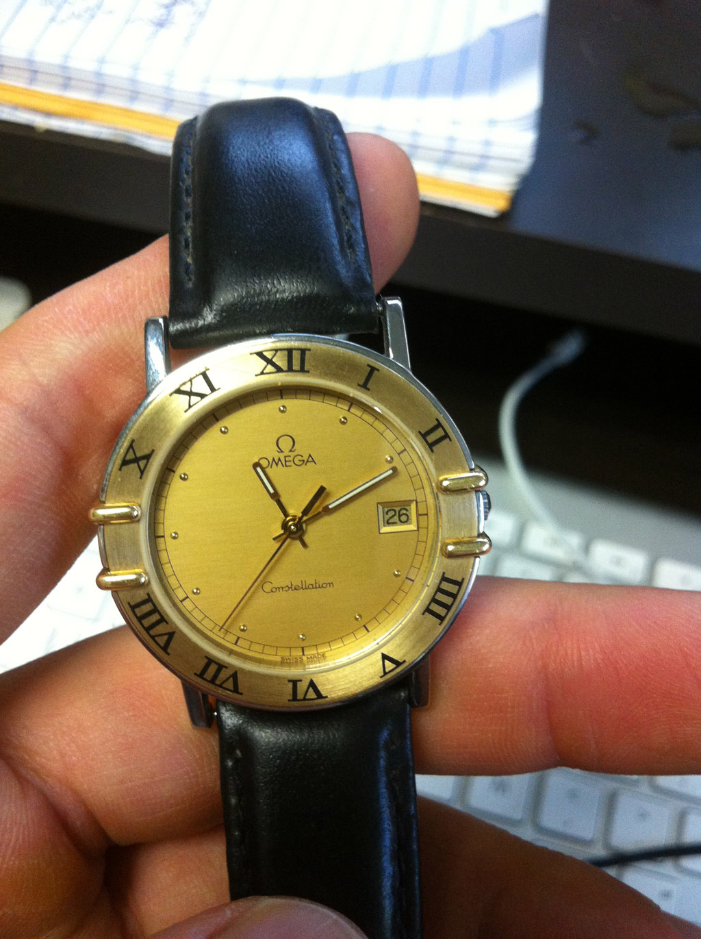 I have an "Omega Constellation 18k Solid Gold Bezel Quartz Watch w/ Date". Overall it is in very very Good Condition 9.6/10.
