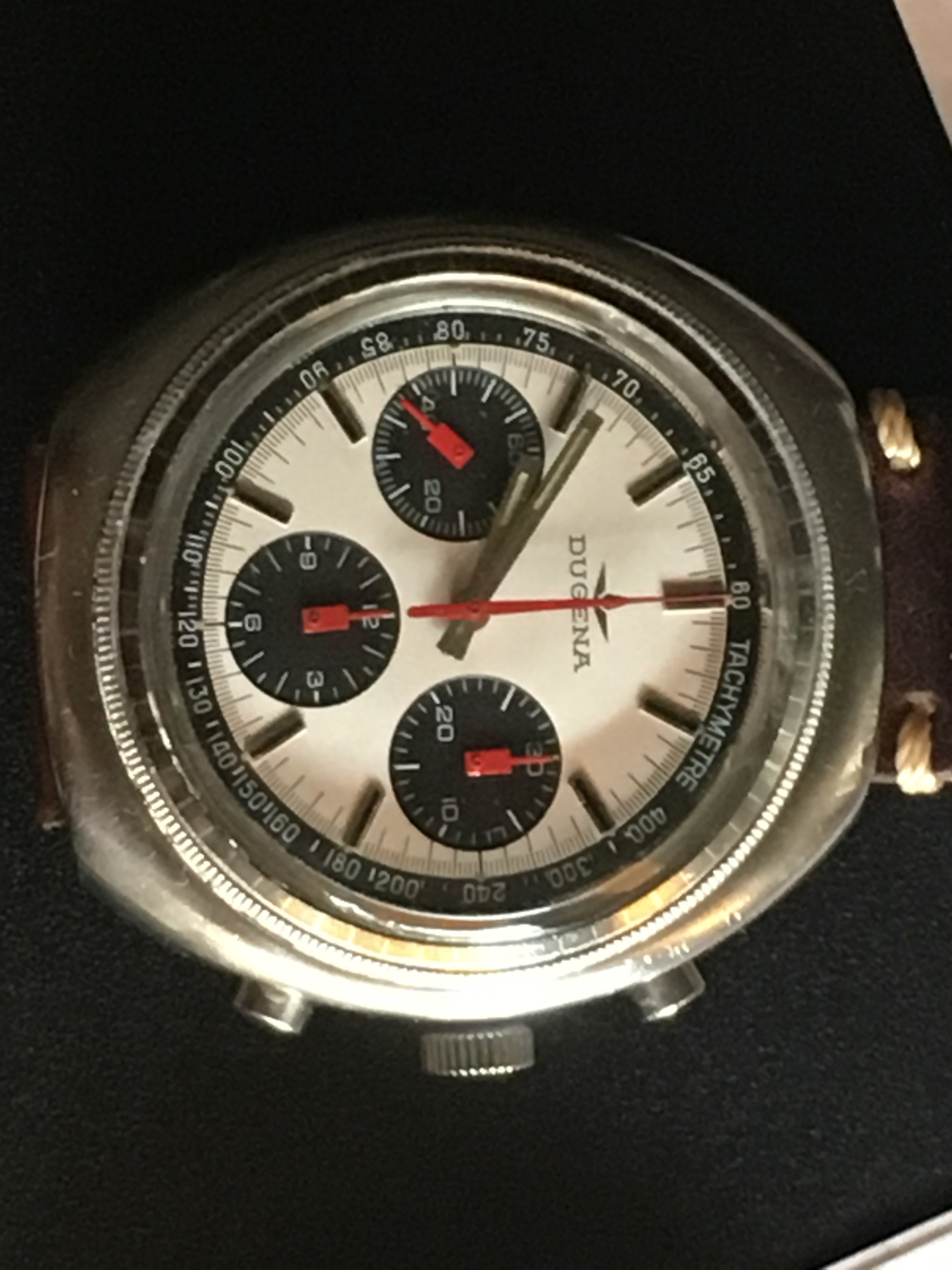 ·Up for sale here is a rare vintage Dugena chronograph, circa 1970s. This variation seems to be quite rare as I haven't really been able to find another one anywhere else.