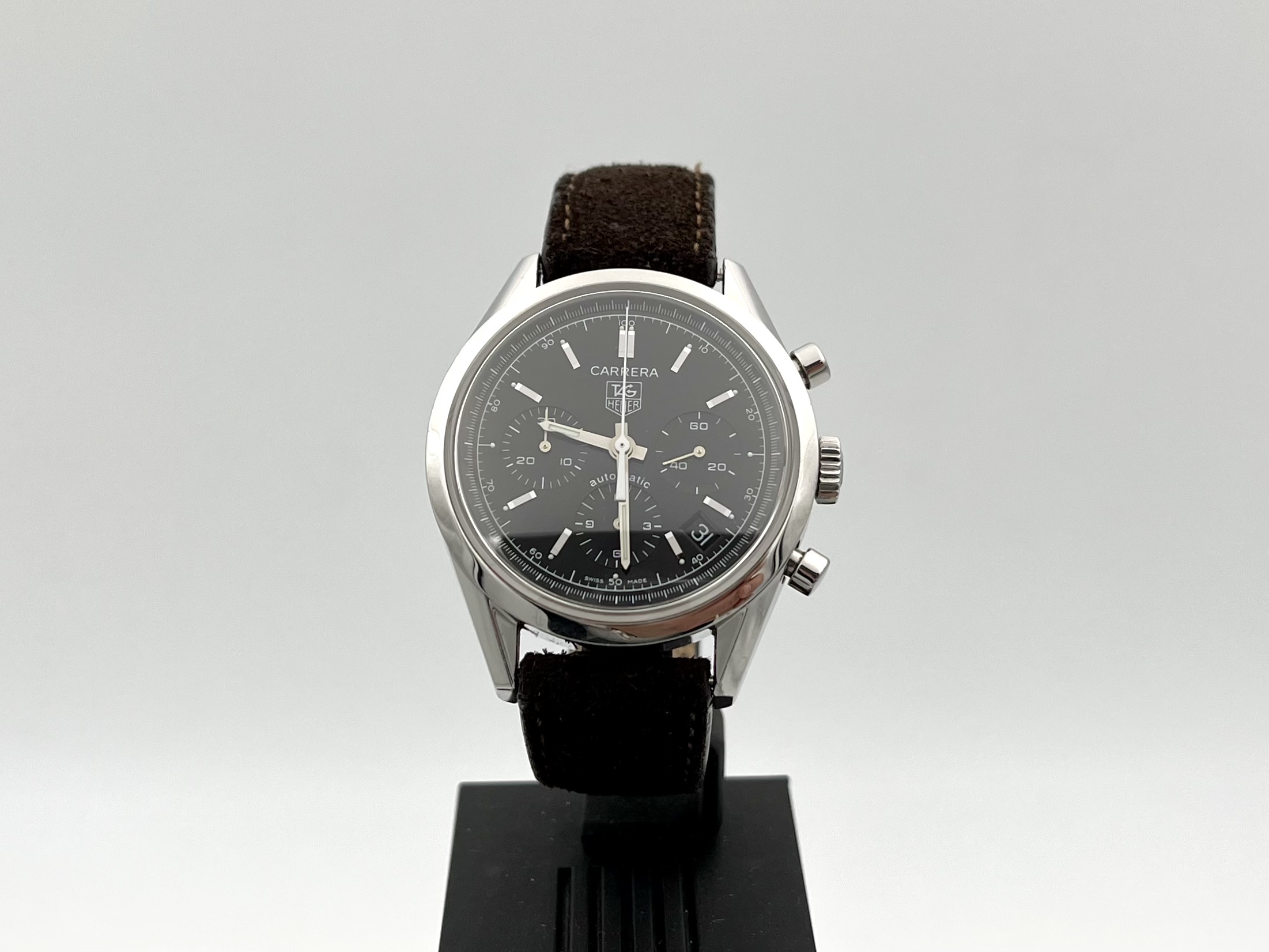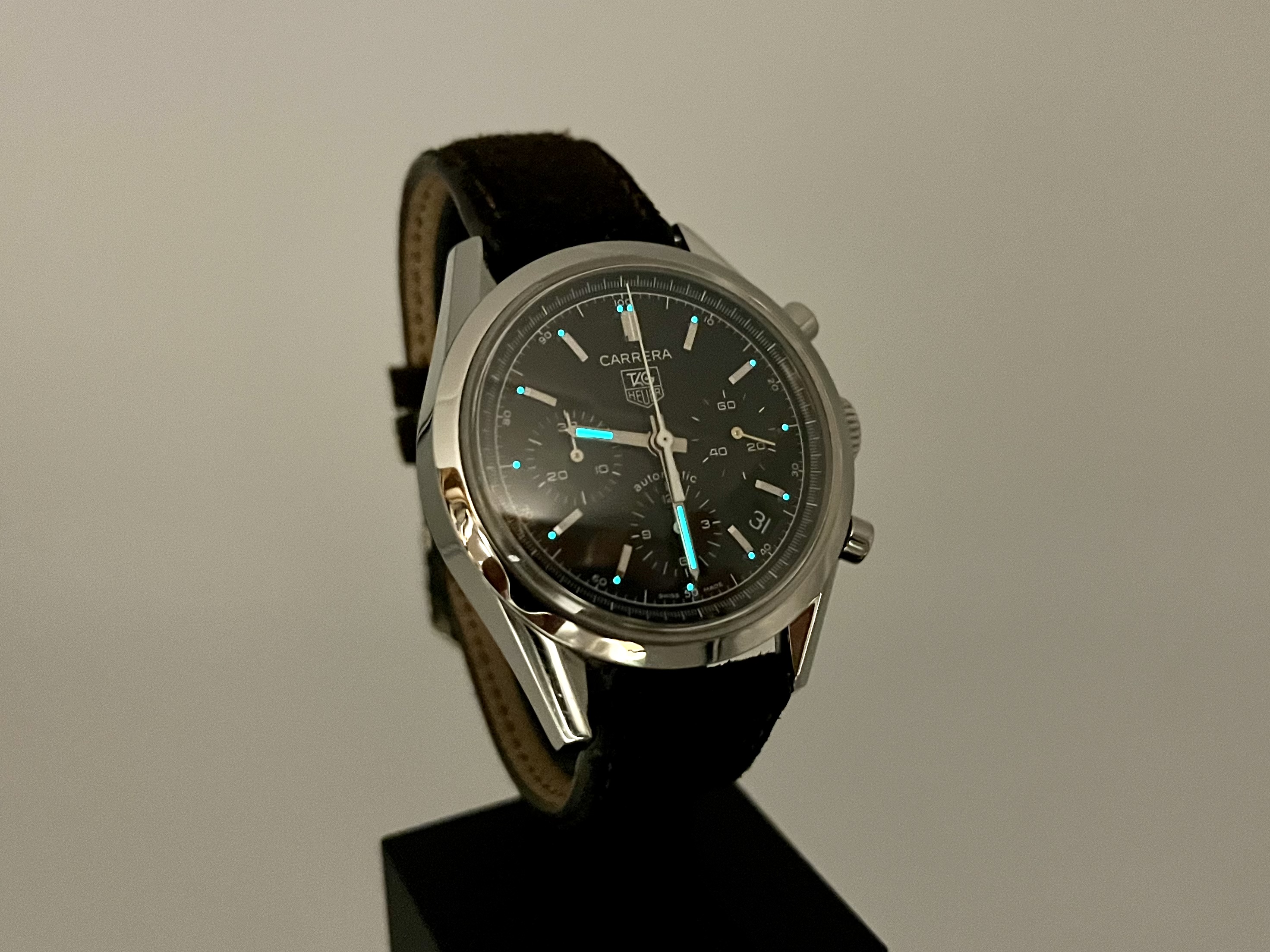 Service history unknown, probably needs one. Signs of use in case and case back. Glass mint. Chronograph works as it should.