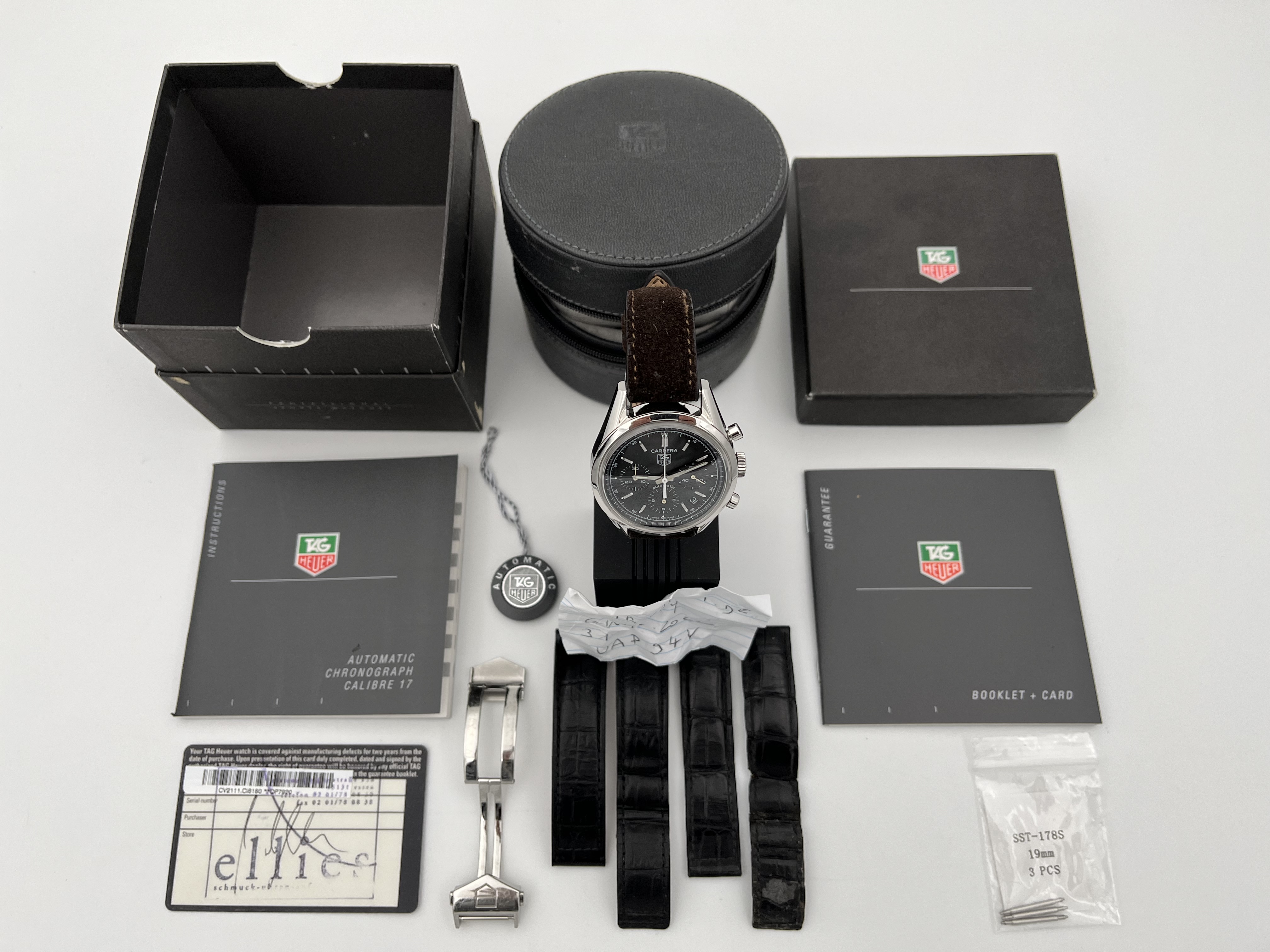 offering for sale used Tag Heuer Carrera reference CV2111 complete with box and papers for 2.300 Euro.