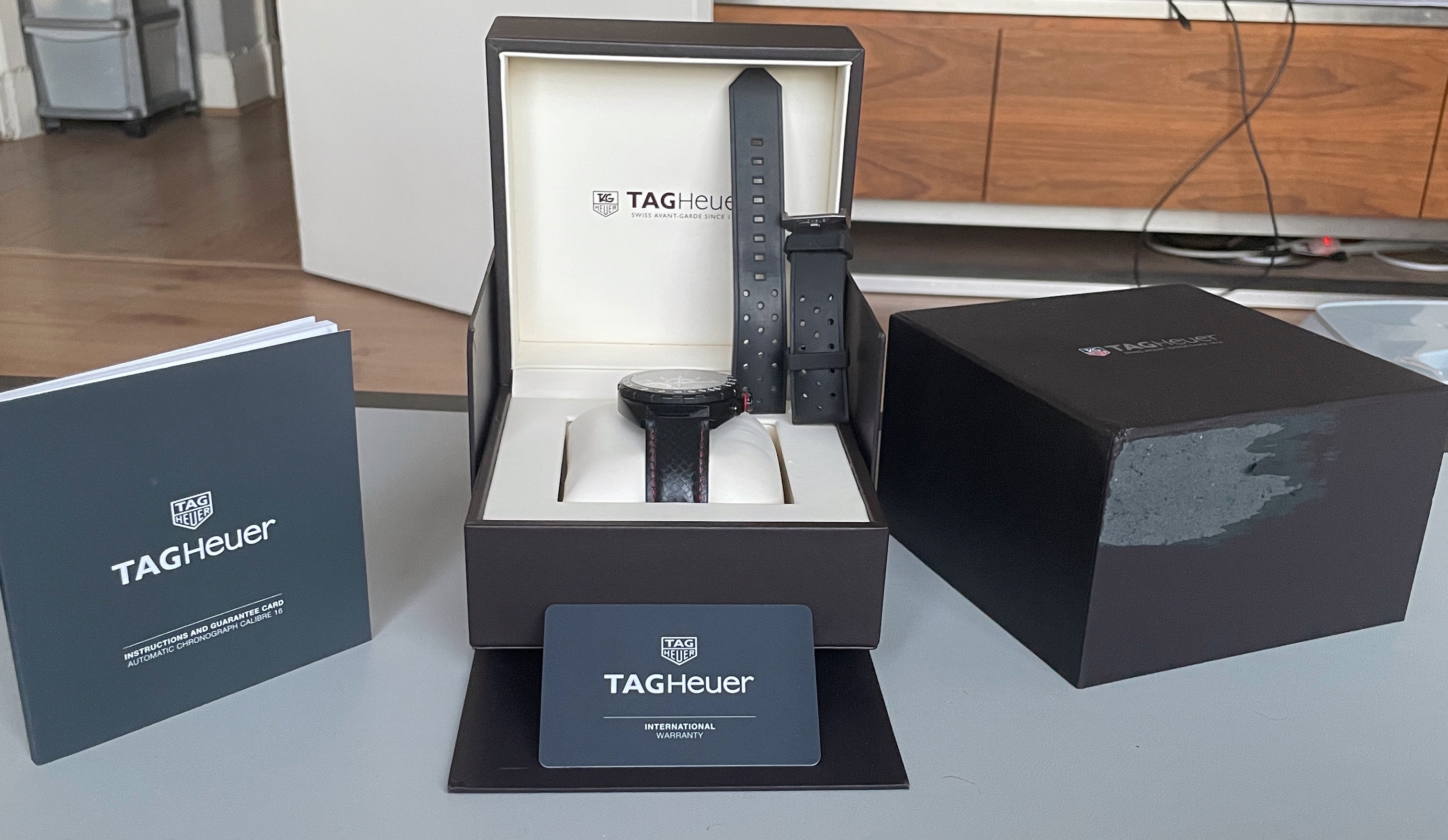 All the photos are edited with maximum sharpness and structure to highlight any imperfections that the watch might have, on the bezel, there is some fading in the letter R and E in the word TACHYMETRE, also the outer box has one side which has been scrapped, please check the last picture, it is shown there, I am also including the original rubber strap with this set as well as another strap which is highlighted in the pics taken.