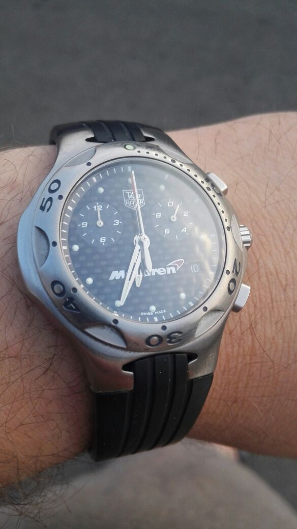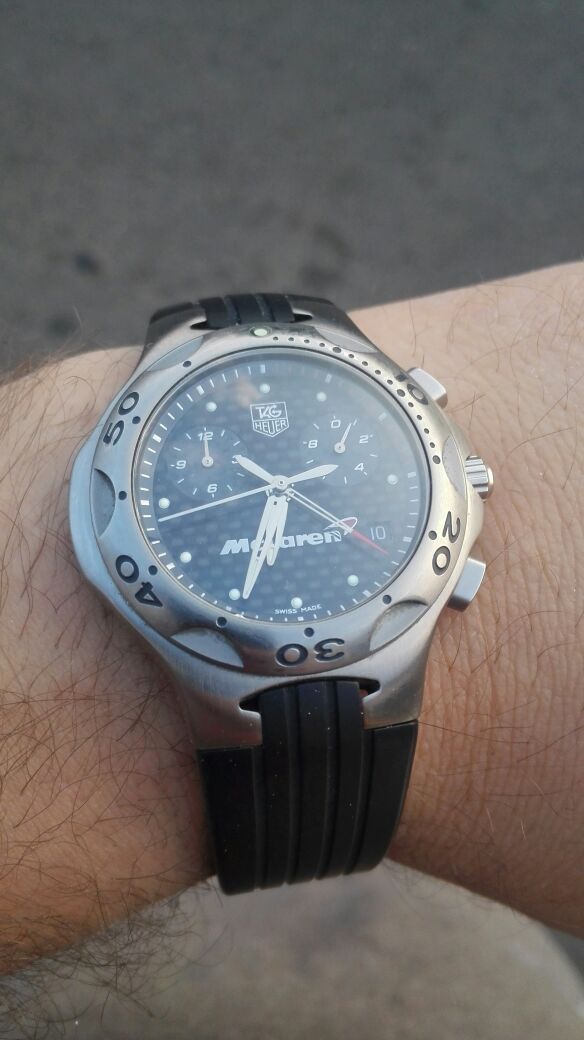 Up for grabs is the rare TAG Heuer Kirium McLaren limited edition only 999 made. Watch is in good condition with no dings or scratches on. Come on the original grooved vulcanized rubber strap with titanium clasp. No box or papers. Watch functions as it should except for left chrono that is not reseting.