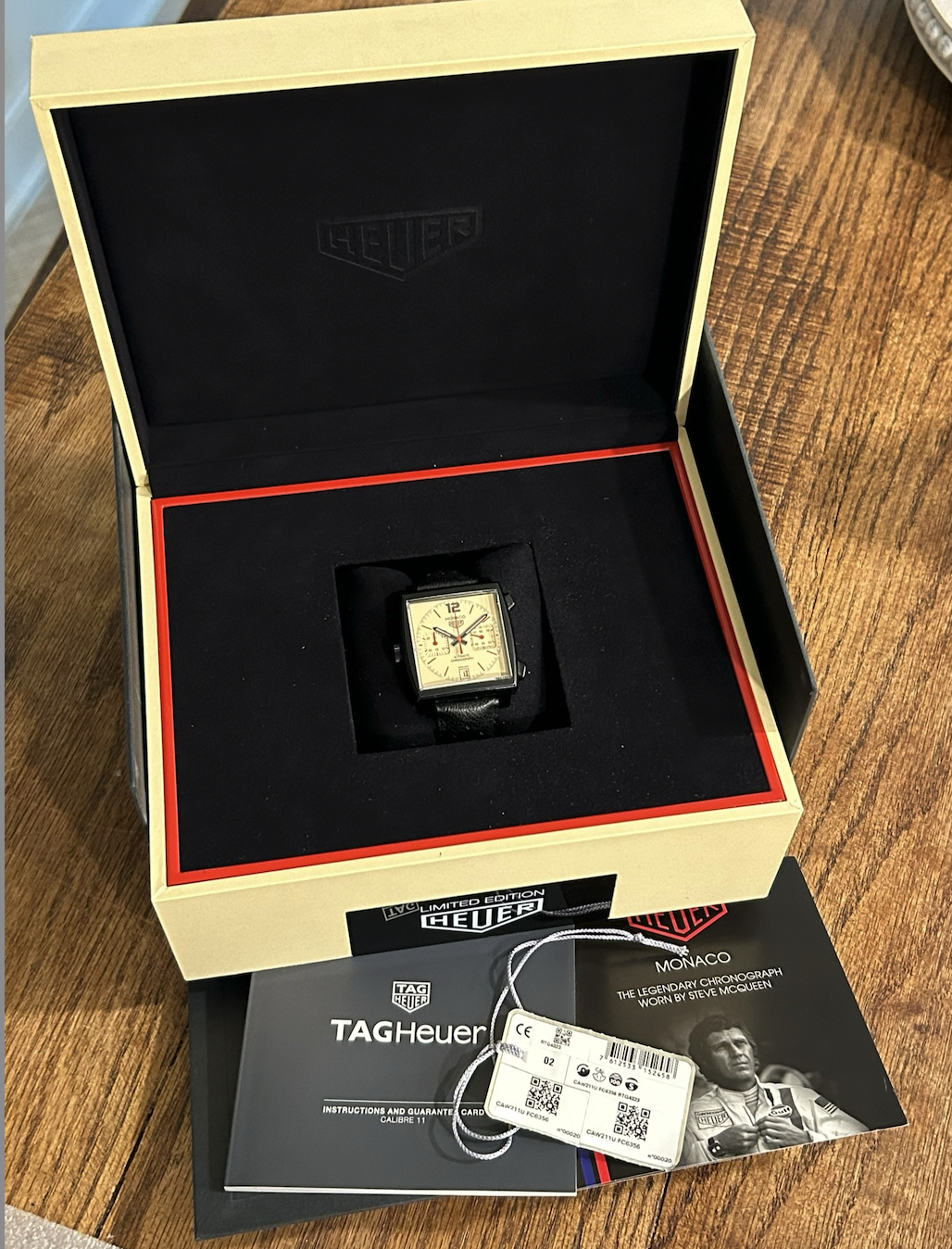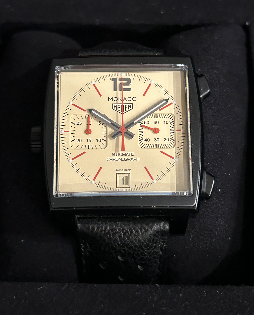 Released in 2019 to celebrate The Hour Glass' 40th anniversary and also coinciding with the Monaco's 50th anniversary! Limited to only 50 timepieces. In excellent condition and all chrono functions work perfectly. Full Box and sales tag.