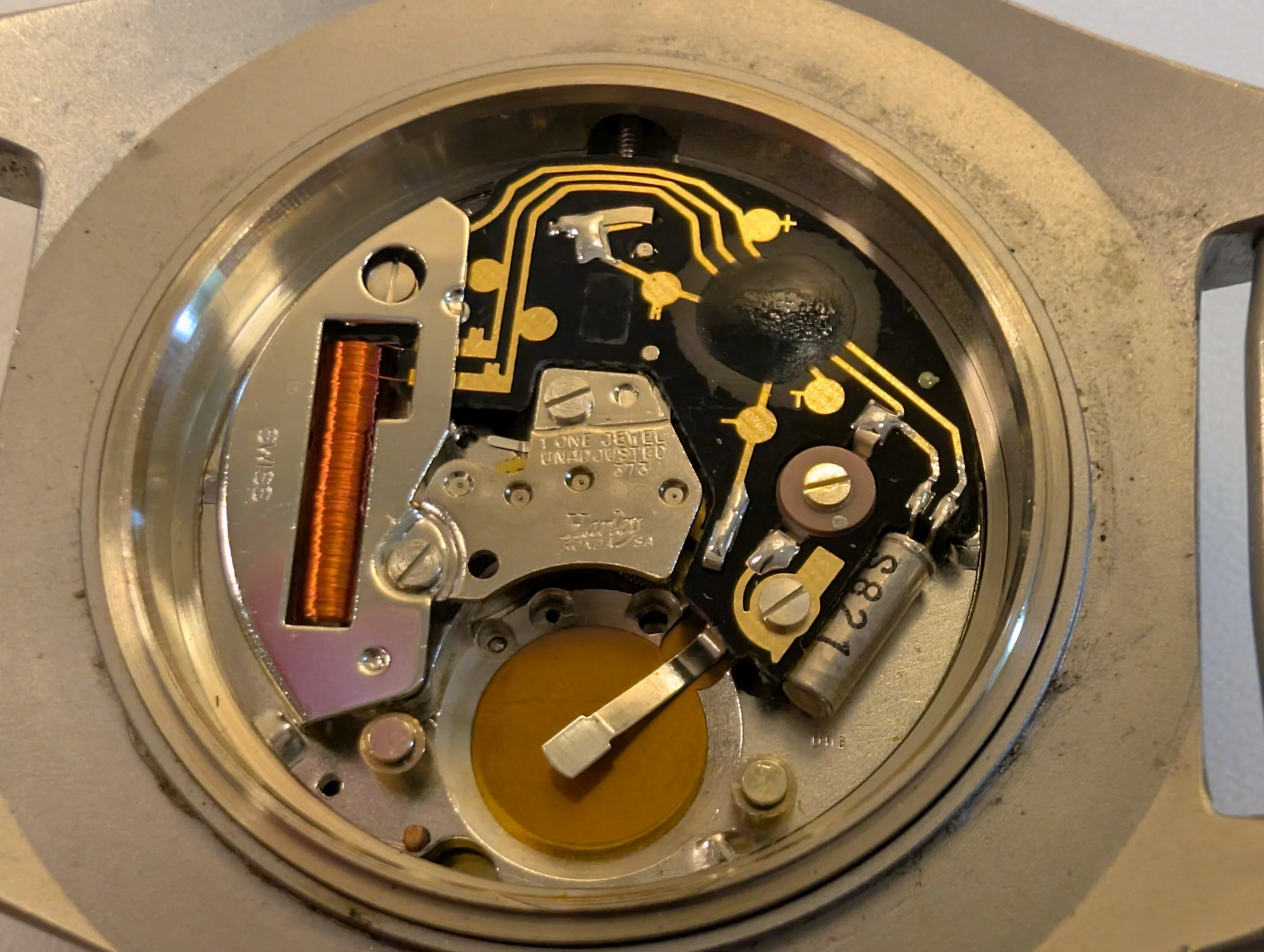 Dealing with the hardware on this one suggests to me that these watches were never designed with the intention of being serviced (Use it 'til it breaks, then throw it away & get a new one...). Really felt as though the case back tool was in danger of breaking before the case would give up the case back. Did eventually come free all right in the end.
