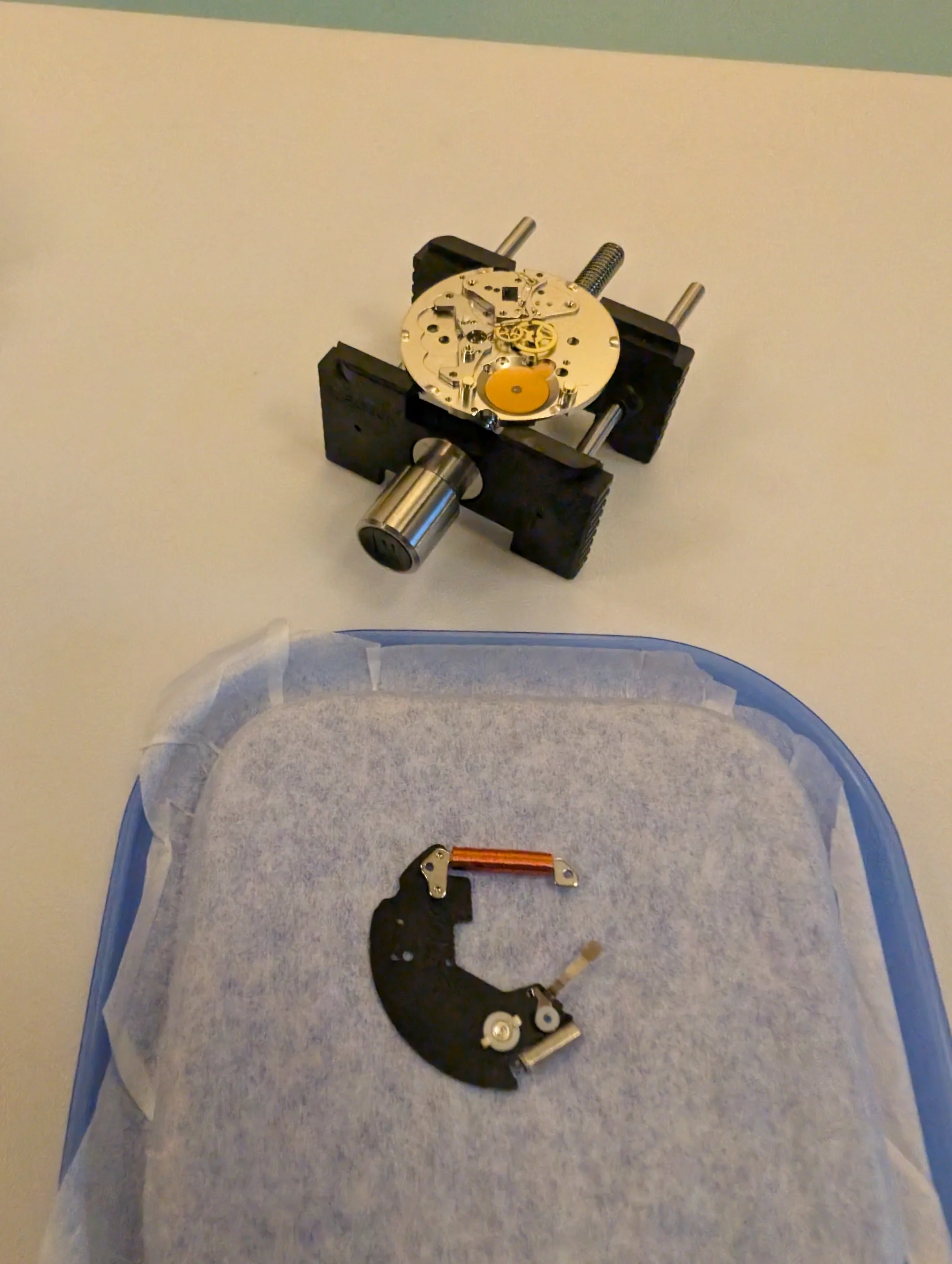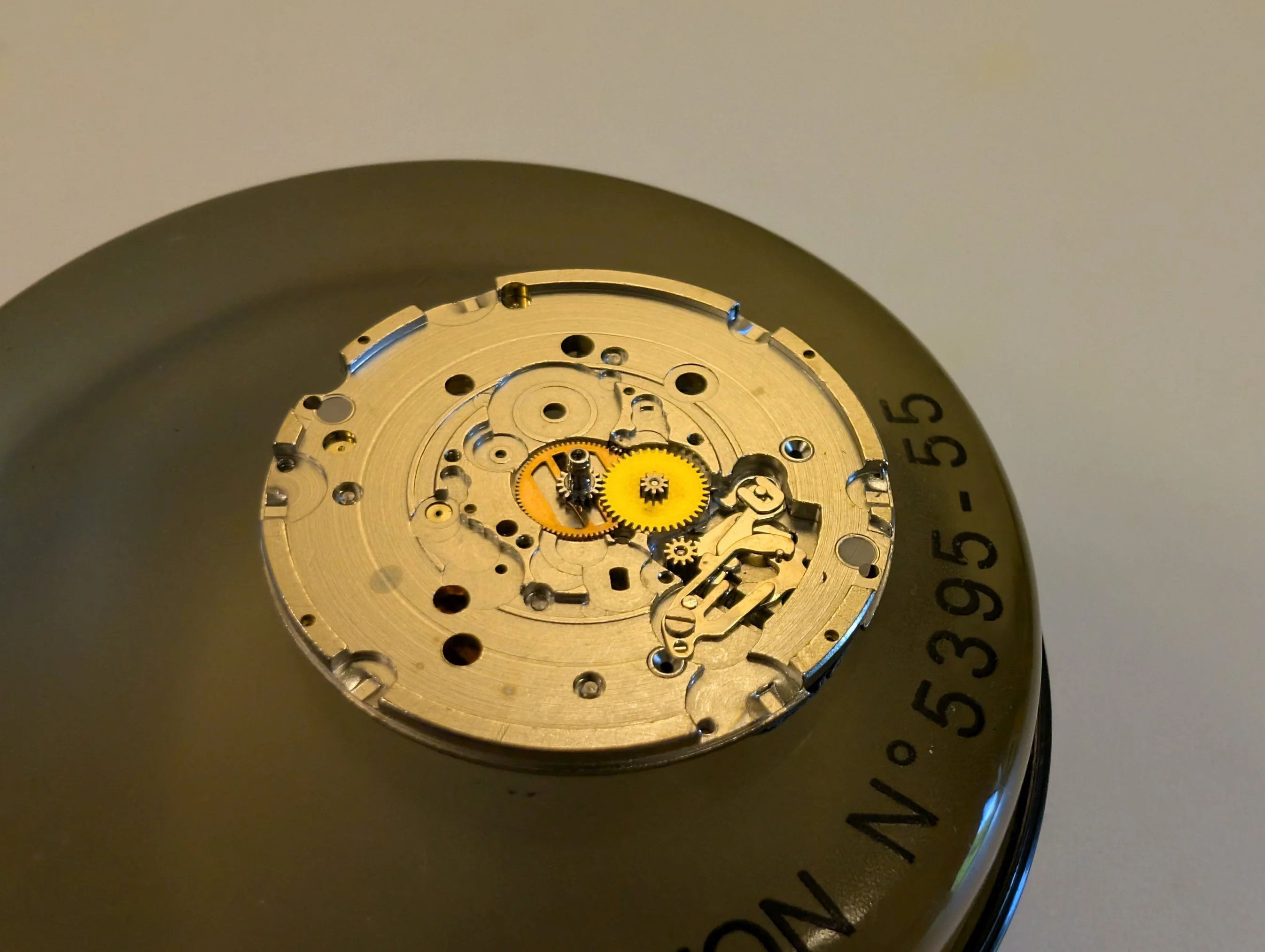 Dial side of the movement. Dial feet are friction fit (no dial feet screws).