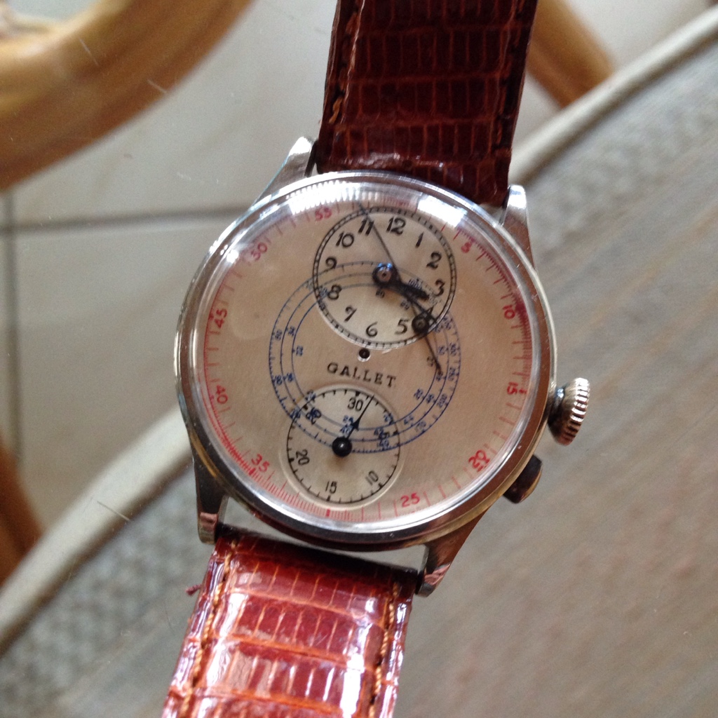 So, I picked up this Gallet today for a few hundred $. It keeps great time but the chronograph was acting up and I ultimately shook the center hand from its mount (it was heading to service anyhow).