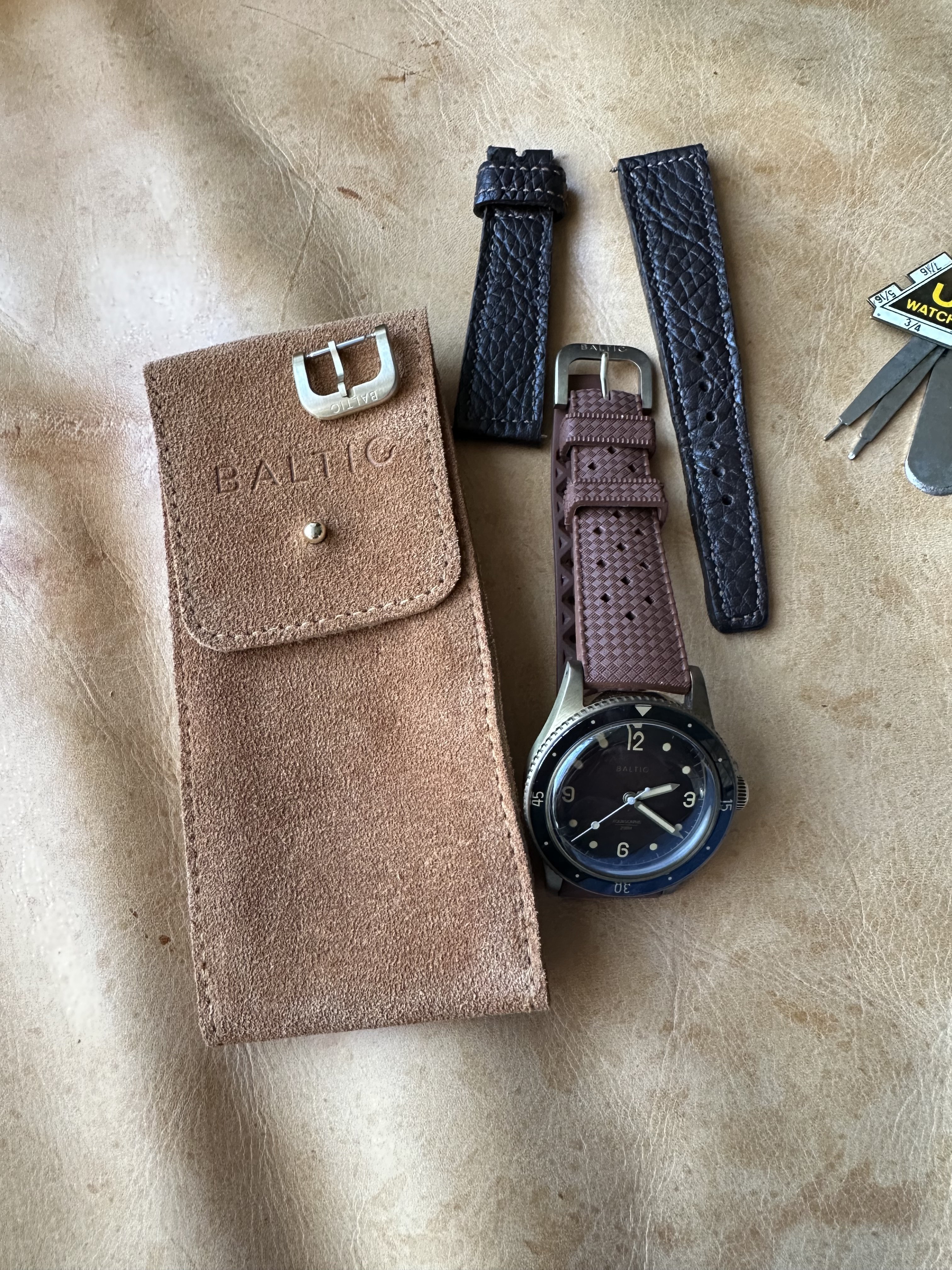 They replied almost immediately and advised that they were sending me a new and improved buckle, free of charge. It arrived from France in four days. Plus, they included a suede travel pouch. Thank you Baltic and also thanks to several members of this Forum who introduced me to Baltic. Notably @Larry S @Spruce and the (or one of the) very first photos of a bronze Baltic on OF courtesy of @dougiedude So… forget about the jerk who cut you off today and cherish the nice gestures.