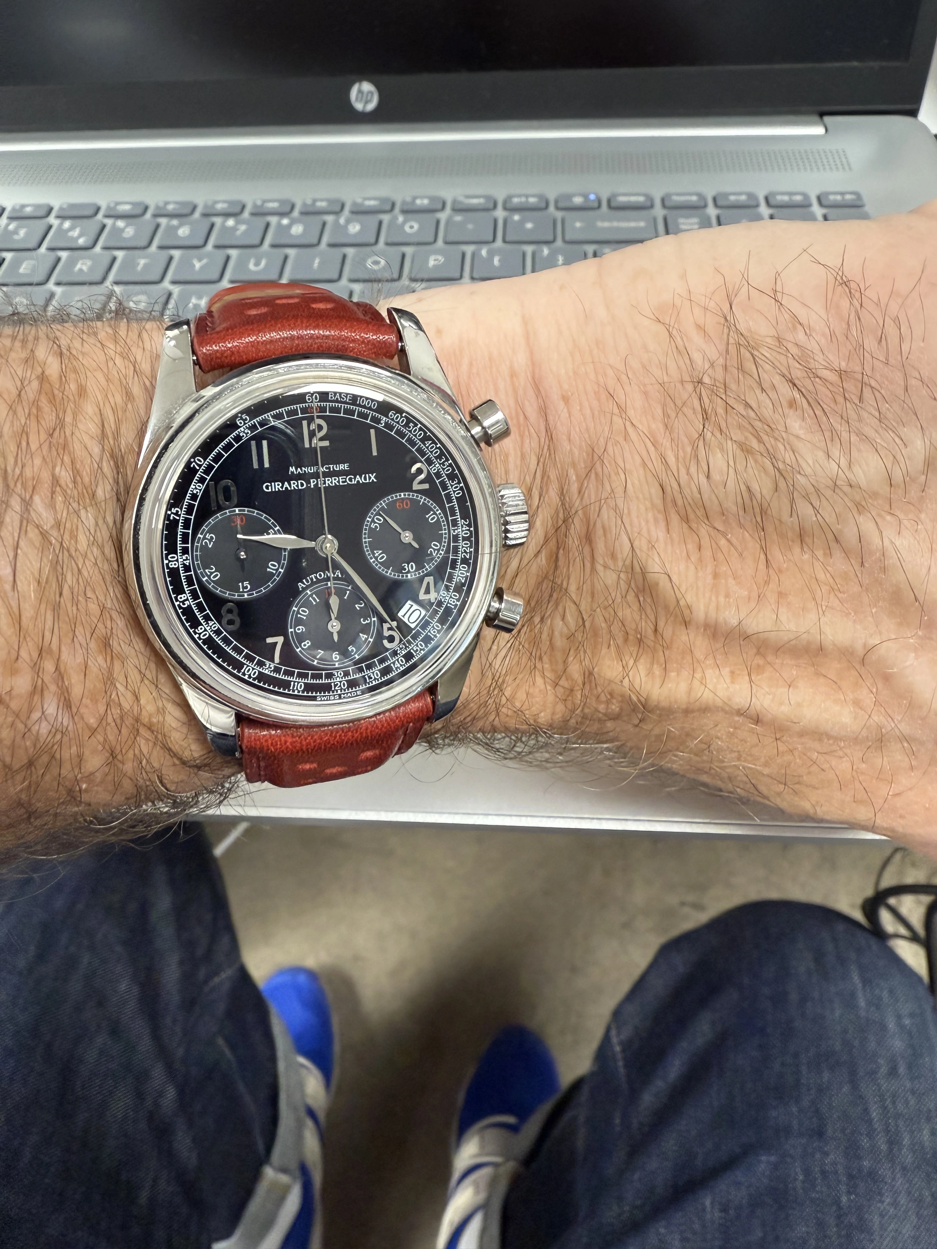 I’ve been wearing it at the weekend where the quick-set date is a great help and timekeeping appears to be spot on. The chrono needs a firm push to start, stop and reset which I like and the hands gently sweep, rather than click at the change of each minute/hour. The winding is buttery smooth.