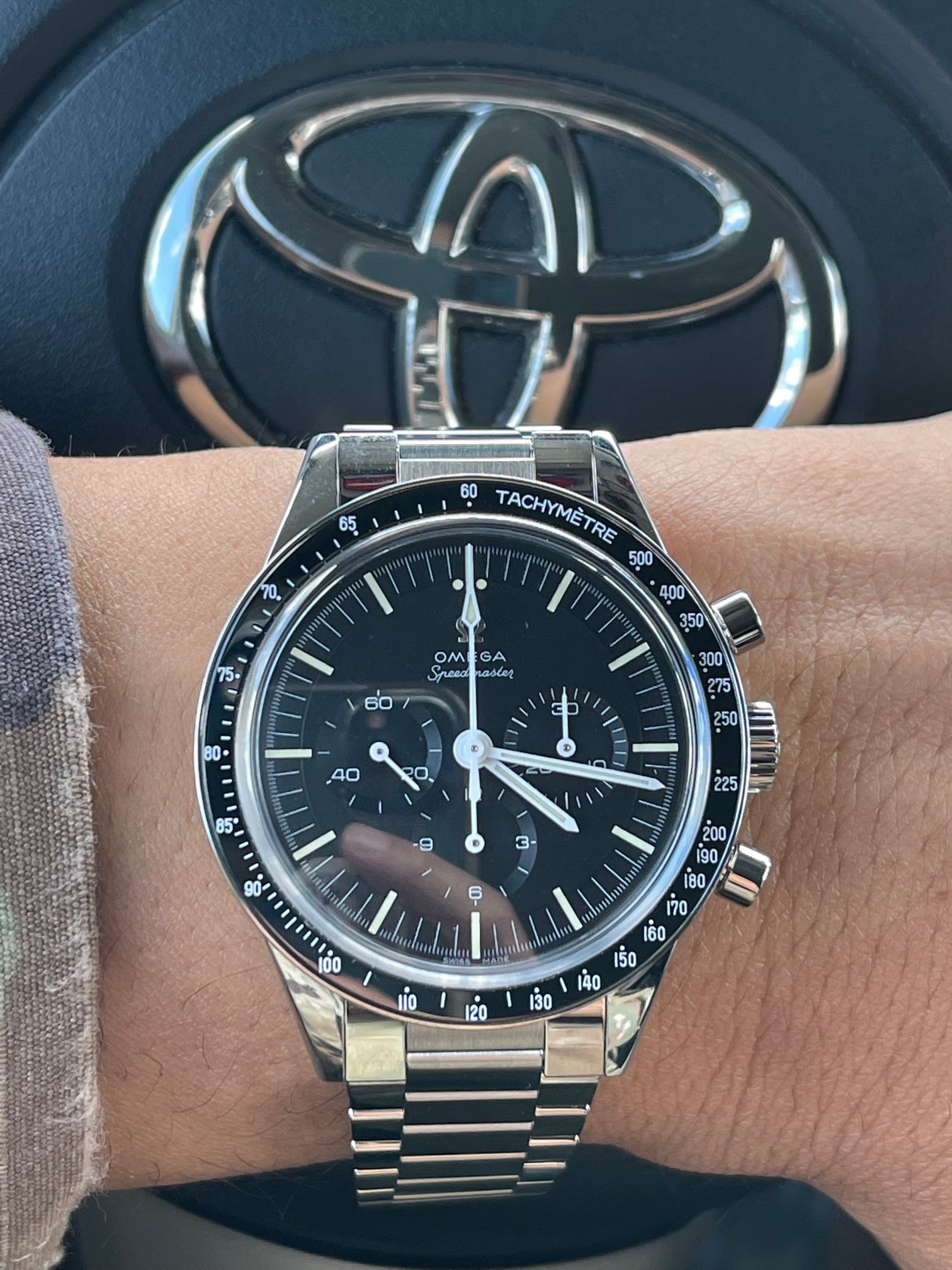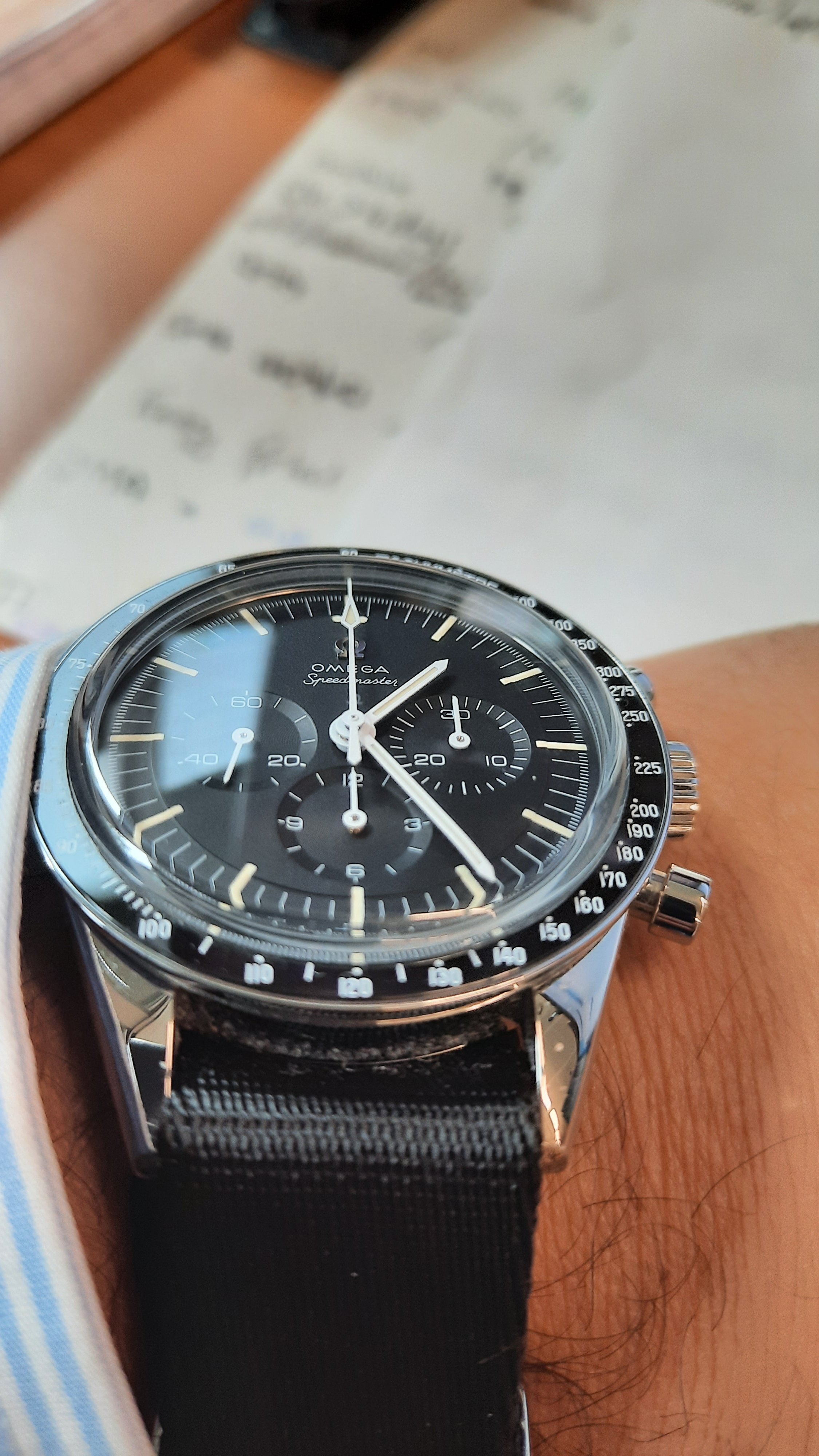 On Monday, I got a phone call from the OB & said watch came in. I just so happend to be wearing my 3861 hesalite & got to compare side-by-side. When I saw it in person...it was a MUST BUY! Pictures do not do this watch justice (& I apologize for the blurry movement photo). Say hello to my new 321 "Ed White"!