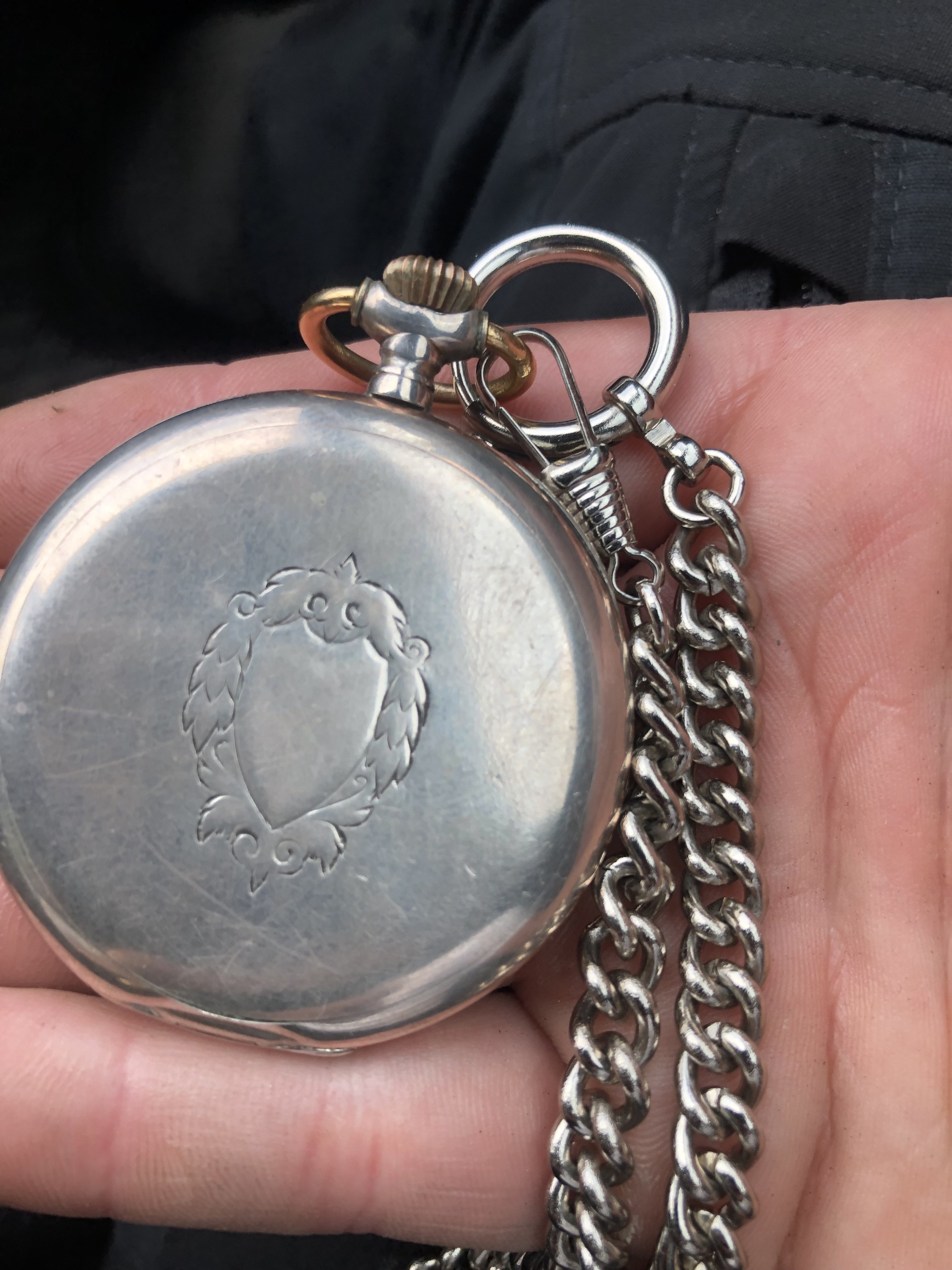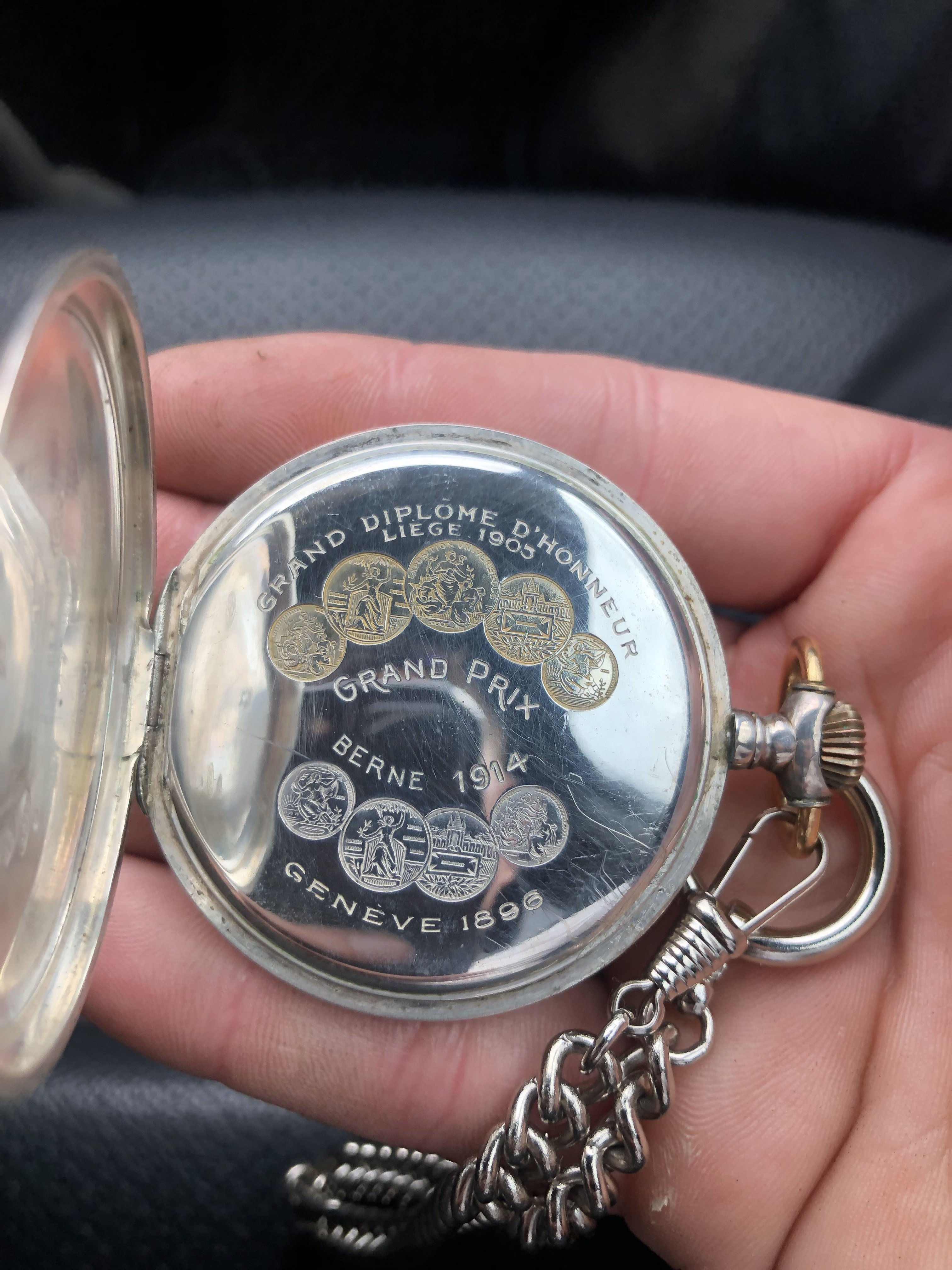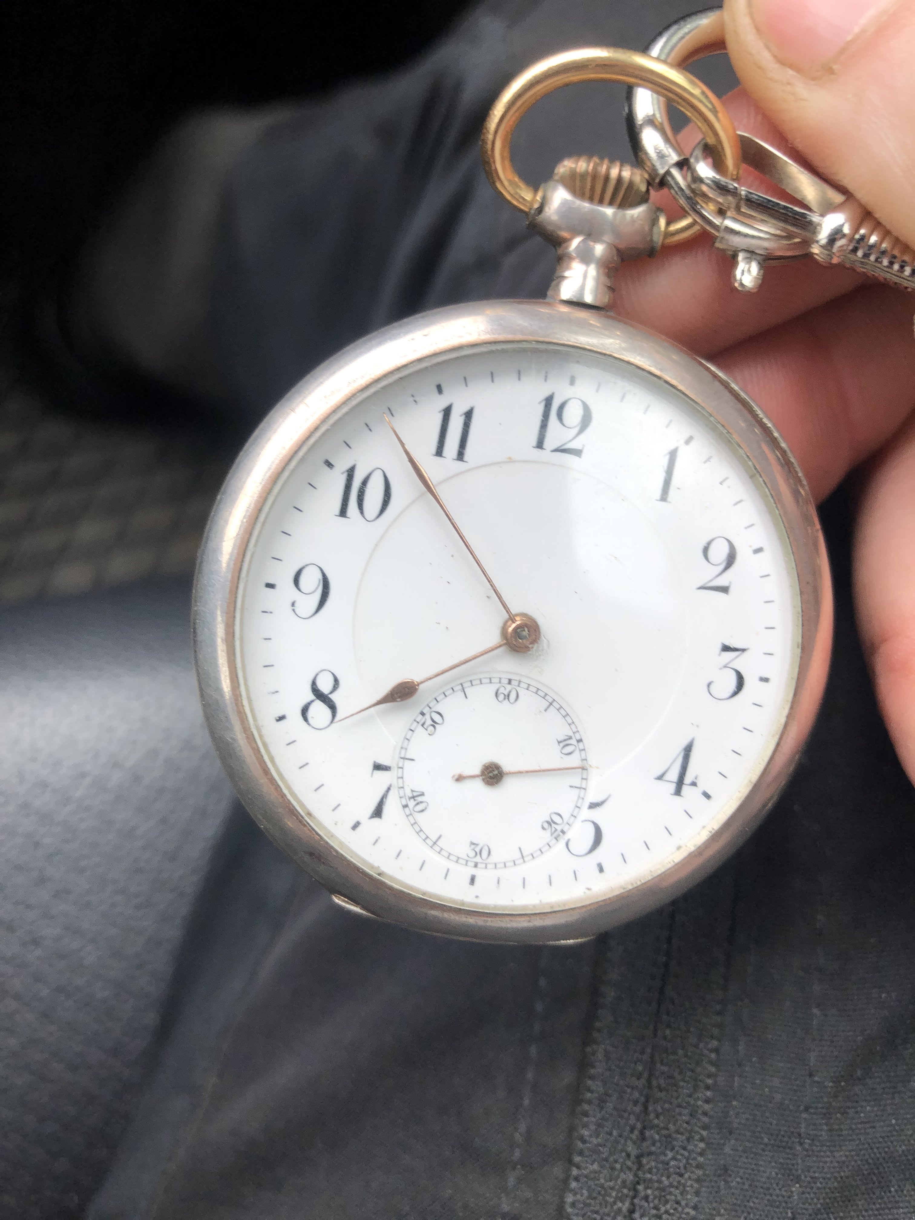 It appears to be a generic pocket watch in an 80% solid silver case as indicated by the Swiss hallmarks (the Grouse and the "800").