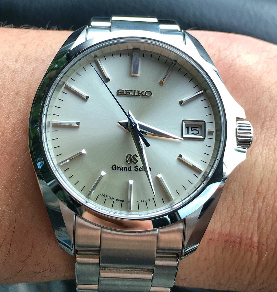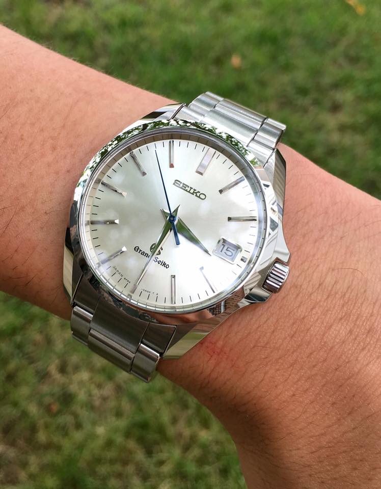 ·I picked up a new watch last week and it's the first non-Omega I've purchased in a while. I've been wanting a Grand Seiko for a while and saw one that really caught my eye at my local AD. It's the limited edition SBGV019, of which only 600 were made. It's powered by the 9F82 high accuracy quartz movement. I've been a mechanical watch guy since I started getting into watches a few years back, but this is the only quartz movement I feel is worthy of being in my collection. It's accurate to within 5 seconds a YEAR. It won't need a servicing for 50 years. The second hand ticks perfectly with absolutely no wobble. It's also finished as well, if not better, than most mechanical movements in the price range. The fit and finish of the case, dial, and bracelet are immaculate. I have never seen such perfection in a watch before. It makes my Aqua Terra blush. The indices and hands are brushed on top and polished at several angles on the sides, causing them to sparkle like diamonds. The dial itself is a gorgeous sunburst champagne color. The bracelet feels silky smooth inside and the watch wears very comfortably. It has a 38mm case, but wears slightly larger than my 38.5mm AT due to the wide lugs and crown guard. This is my favorite watch that I've owned so far, and that's saying a lot for a quartz powered time piece. I think it's cool that Seiko was proud enough to display their 9F quartz movement with a sapphire case back, which is normally reserved for mechanical watches. All in all, this is a damn cool watch that is perfect for any occasion.