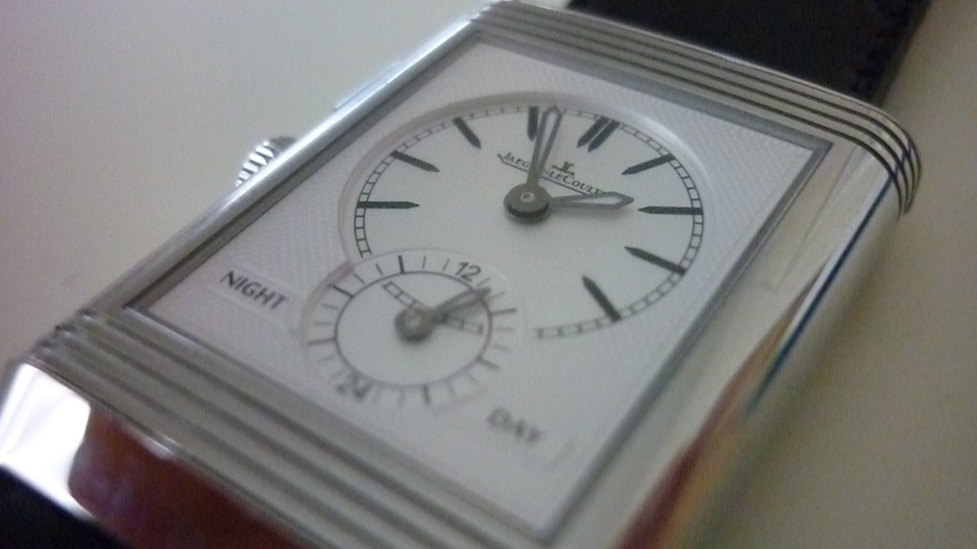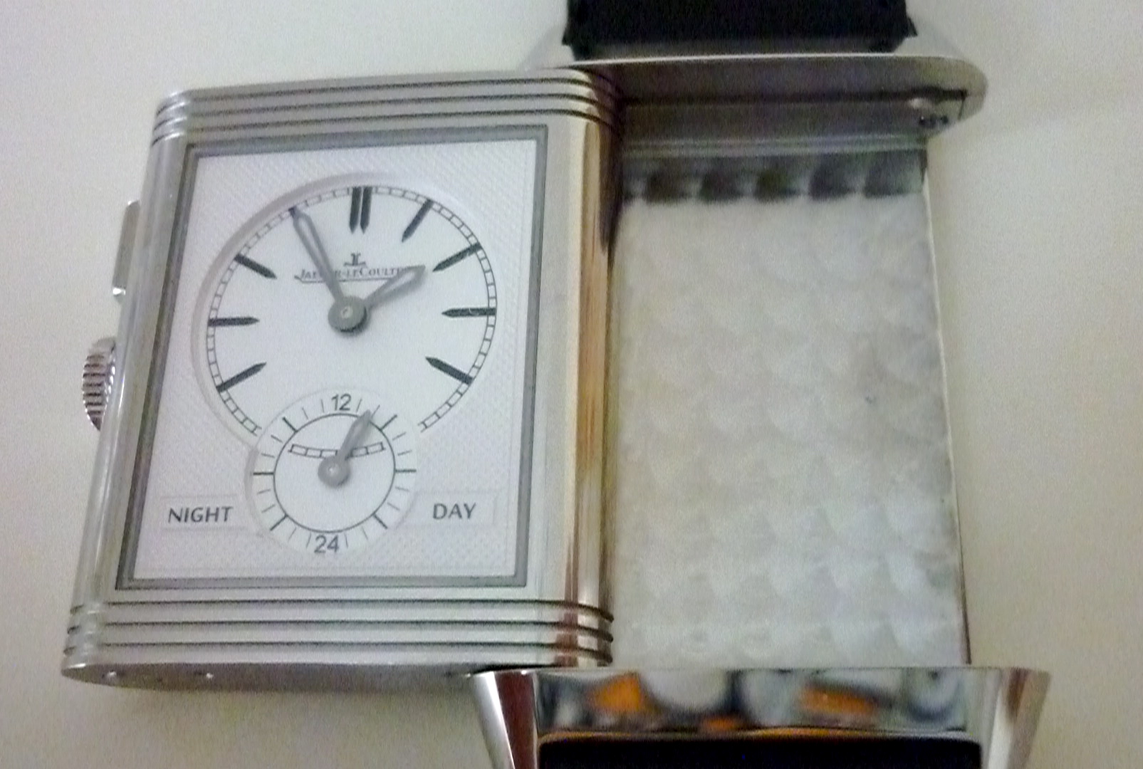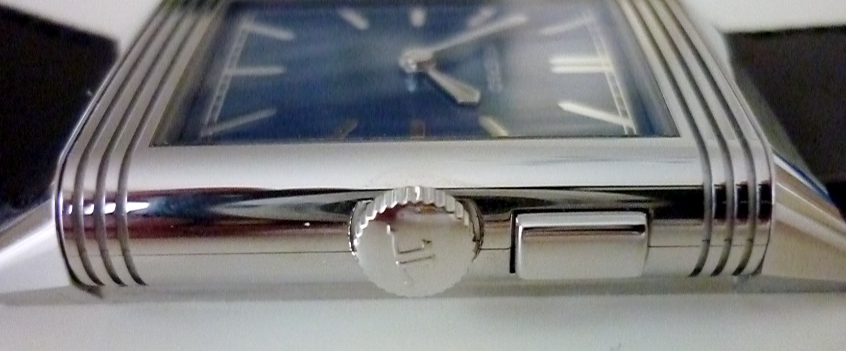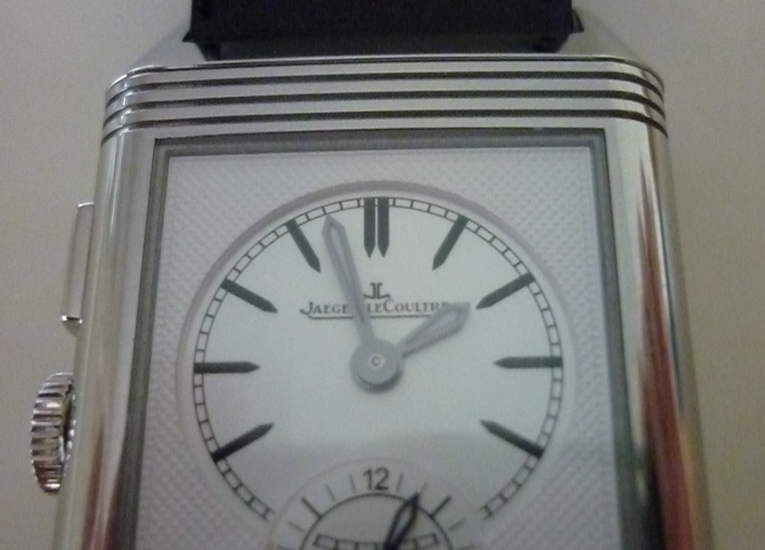 The cal 854 shows the time on both sides of the movement, with the hour hand on the reverse side being independently moveable by an adjuster that sits just above the crown - thereby allowing it to track either the same time as the front or a second time zone. For this range JLC have moved away from this being a recessed button, in favour of an easier to operate push button. I found that it is very easy to adjust the time, in fact so easy I inadvertently was pressing it every time I "reverso'd" it. So now, I ensure my fingers only press on the lower half of the case when flipping over to the second face.