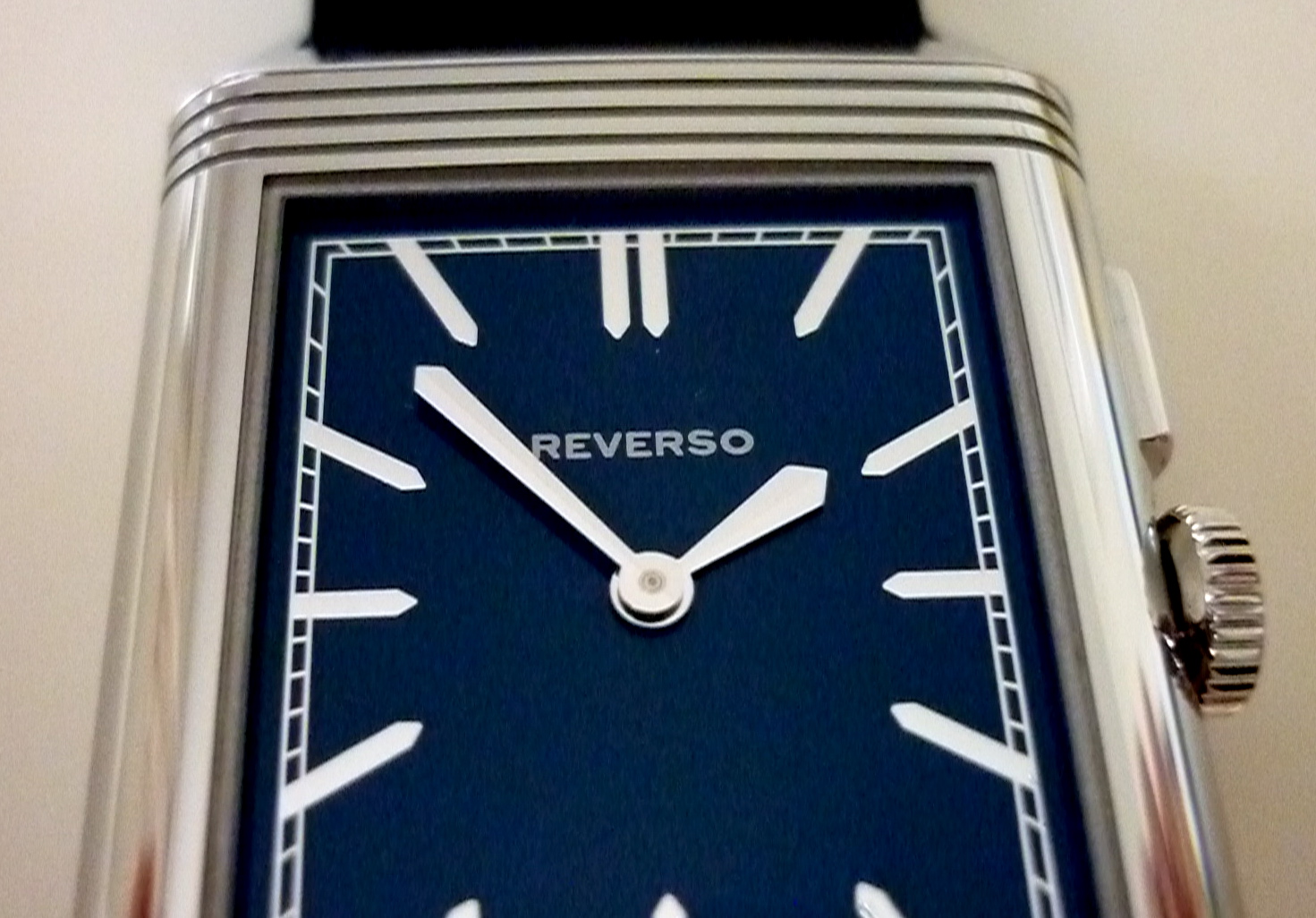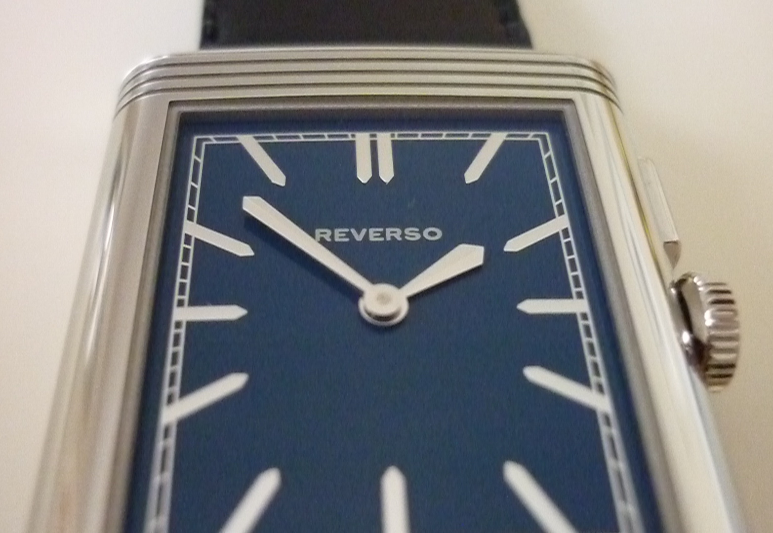 But of course this watch is all about the limited production blue dial. To my eyes it is truly classic and a tasteful and well executed modern homage to the original Reverso dials. I have seen some internet comments criticising the fact that dial isn't flashier or doesn't "pop". As far as I'm concerned that misses the point of this dial - it is a deliberately understated design, directly derived from the original, and as such it needs to echo the more straightforward hues of the 30's. To put a shimmering modern blue dial on this piece would make it less of a tasteful tribute and more towards being a modern blingy "look at me" watch. I really don't think that was what JLC were going for here.